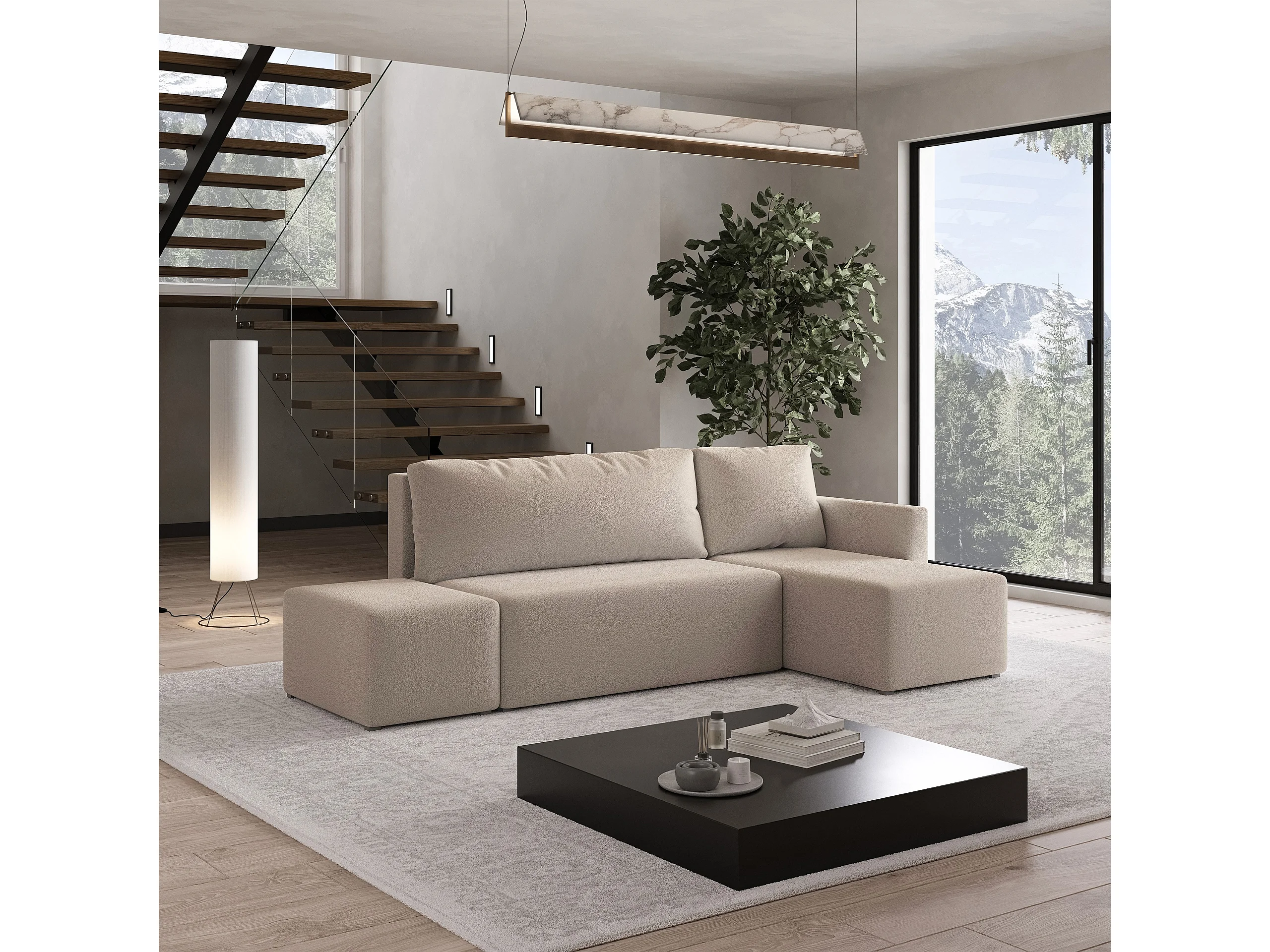 Hoekbank VELOTTI van fluweel met slaapfunctie Beige