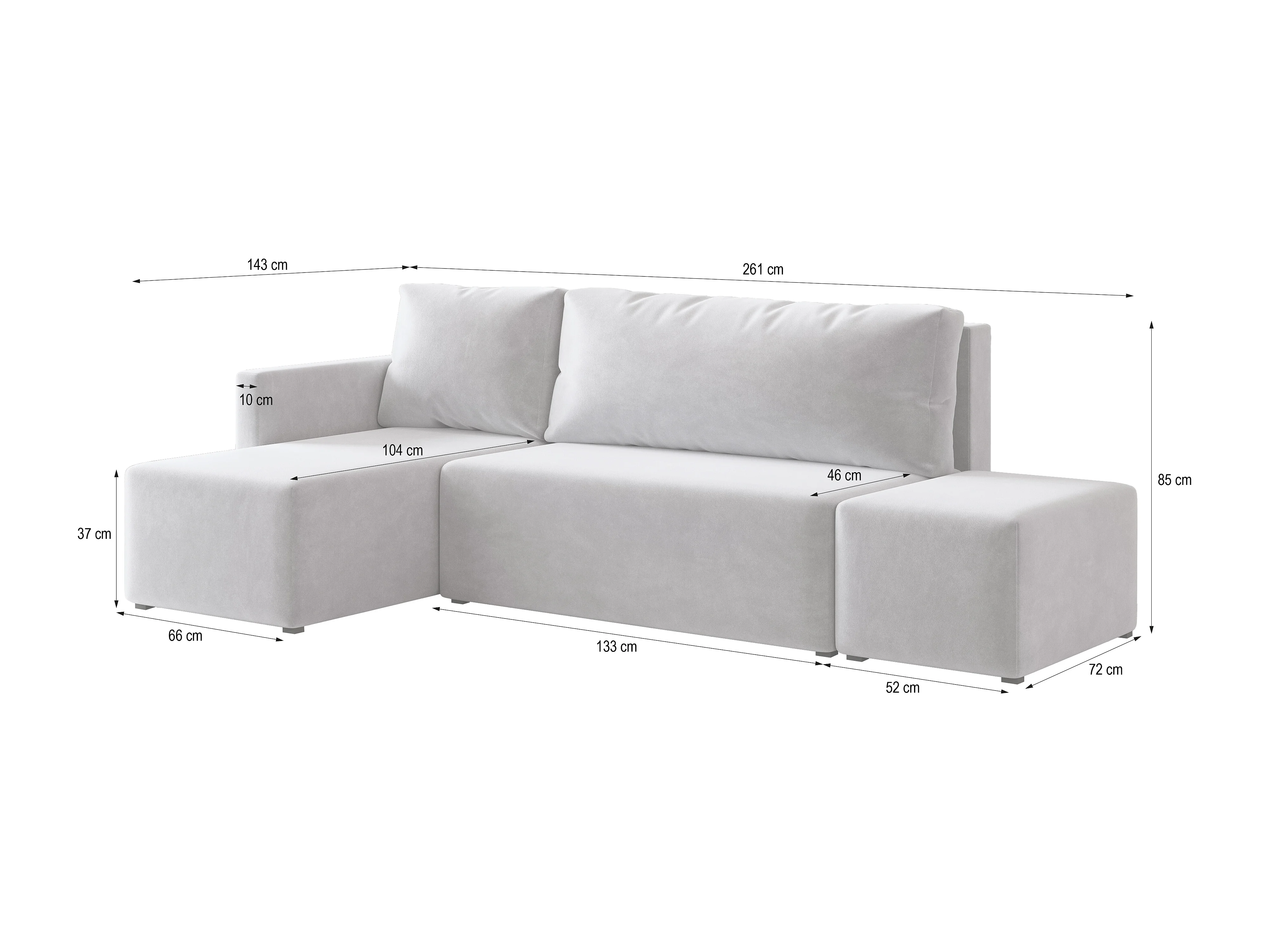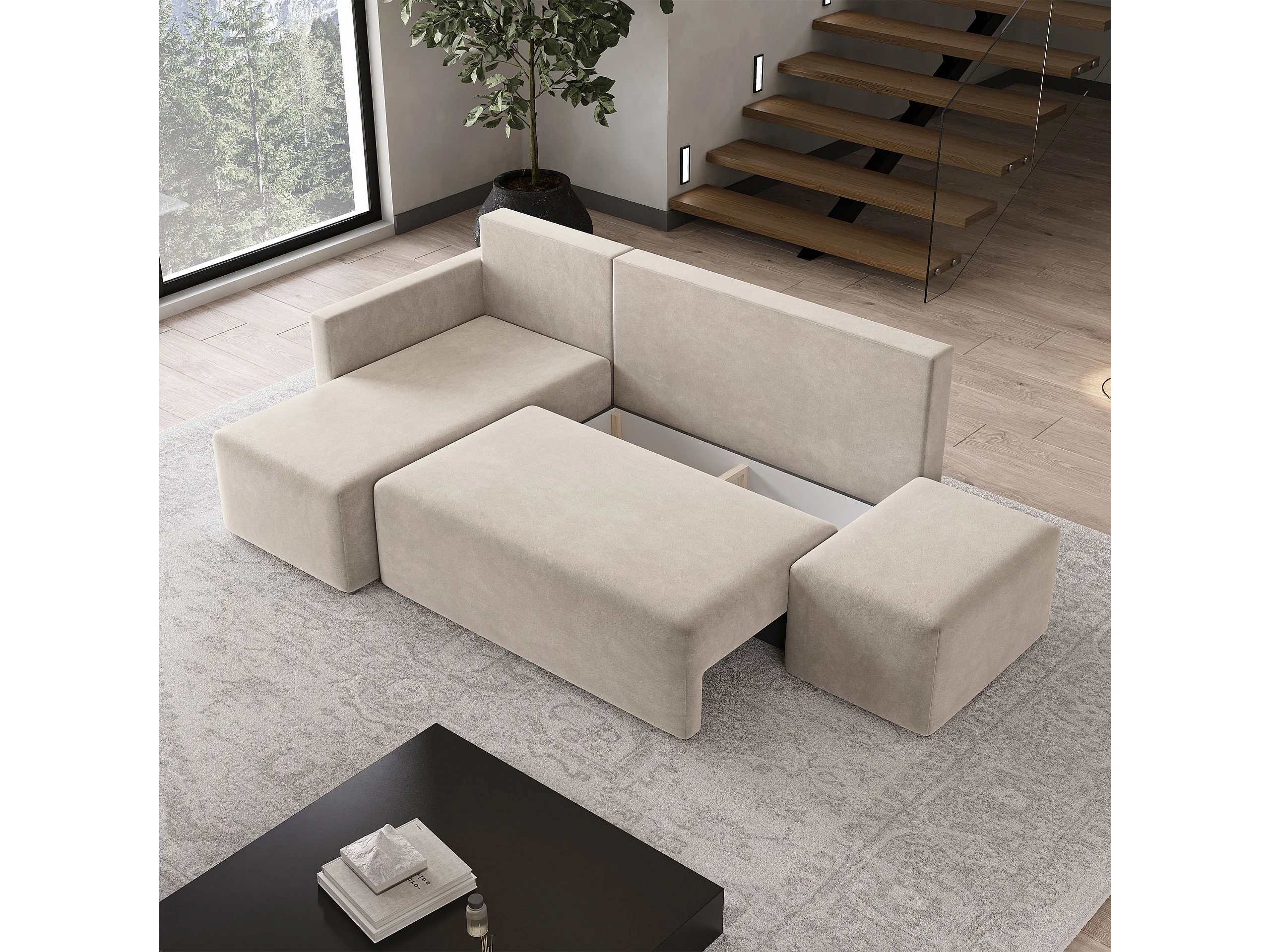 Hoekbank VELOTTI van fluweel met slaapfunctie Beige