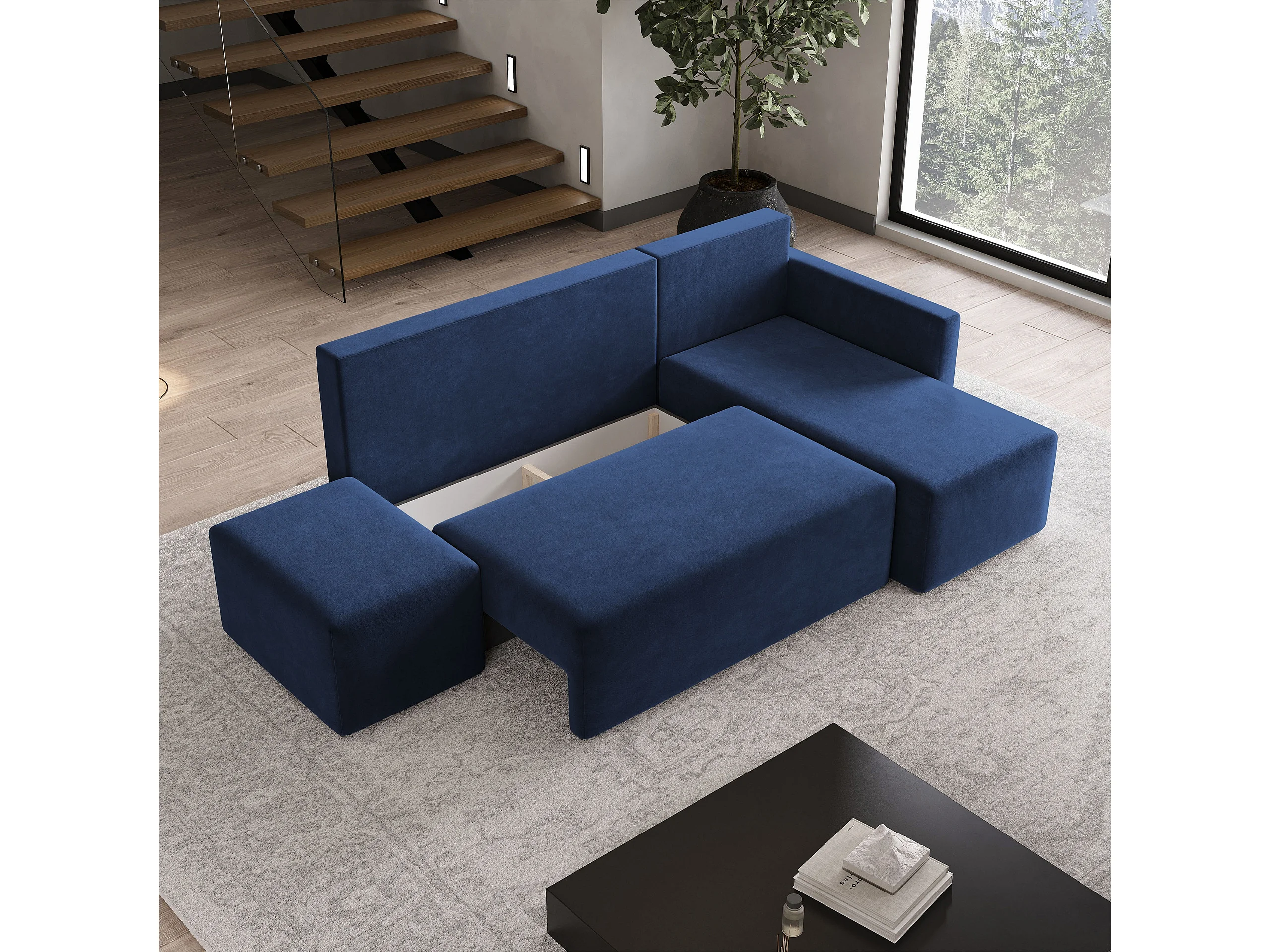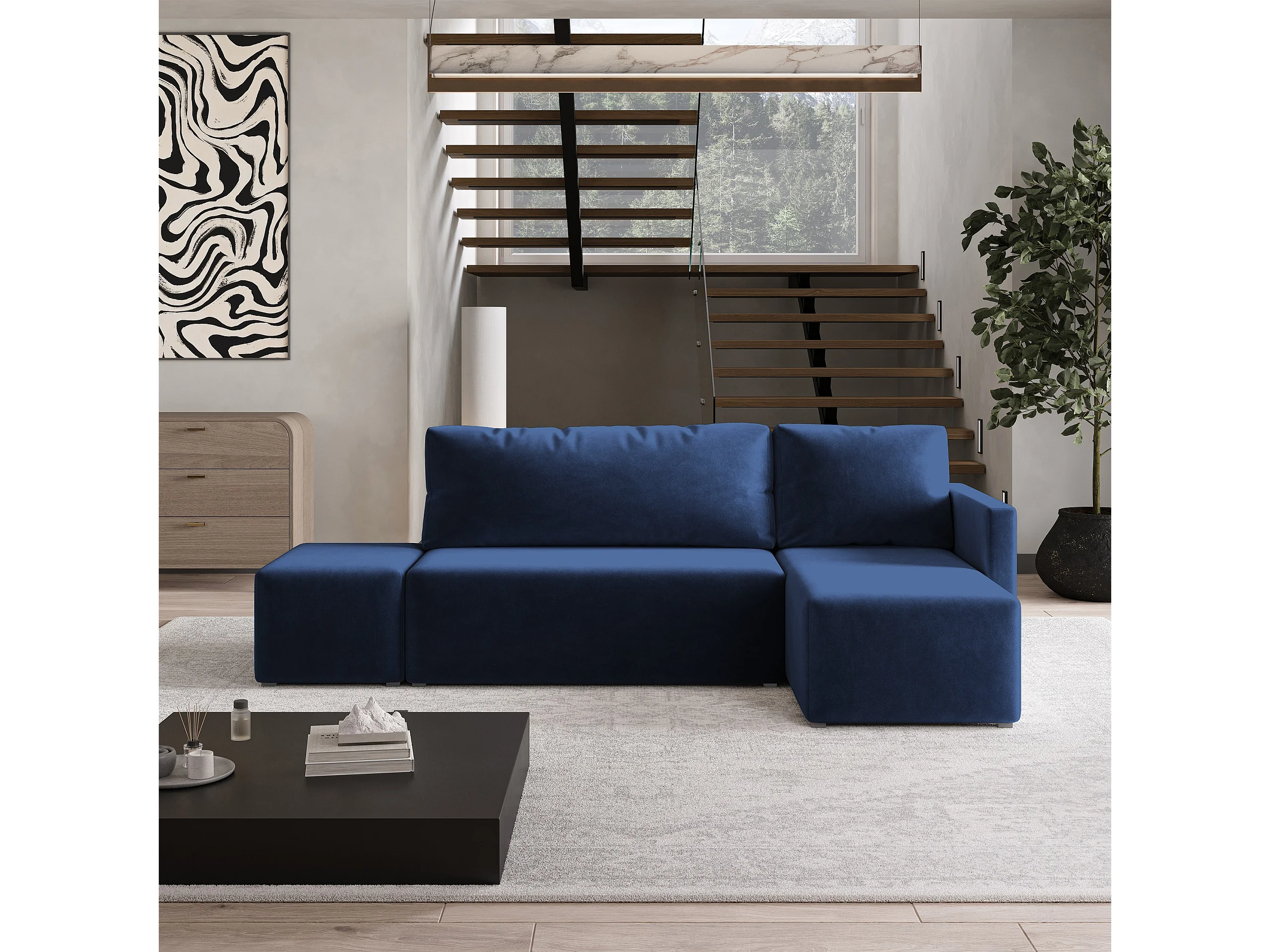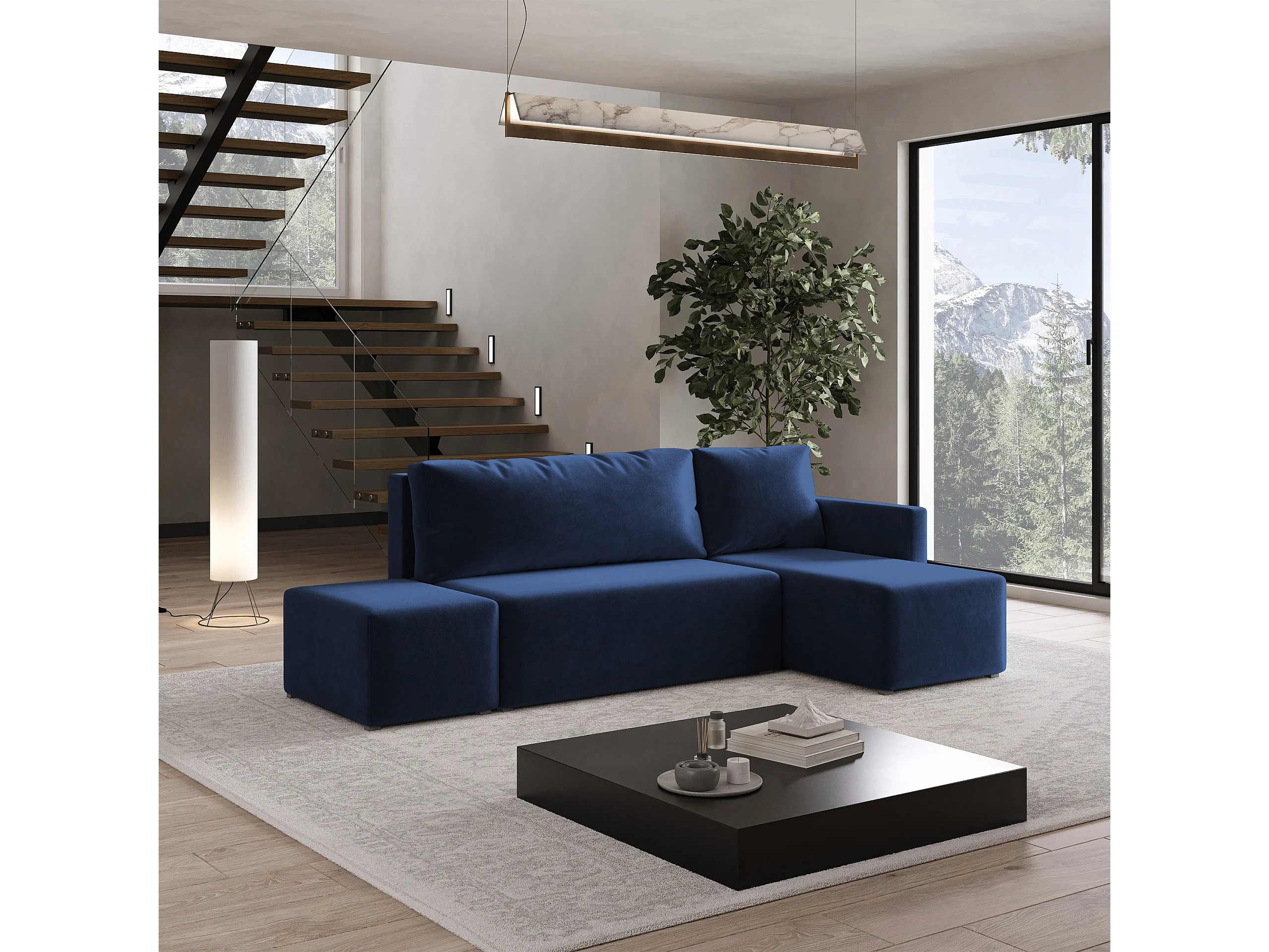 Hoekbank VELOTTI van fluweel met slaapfunctie Blau