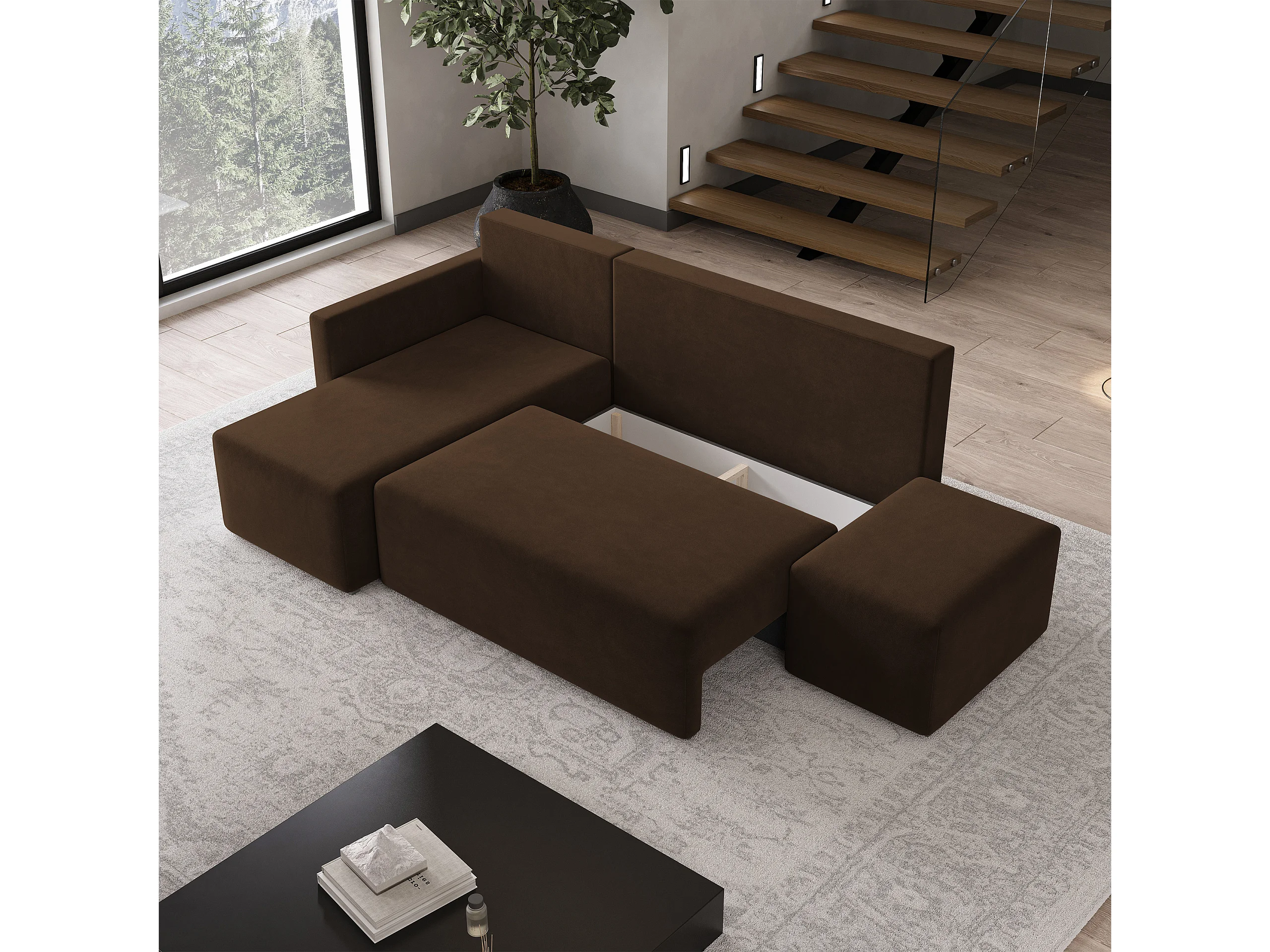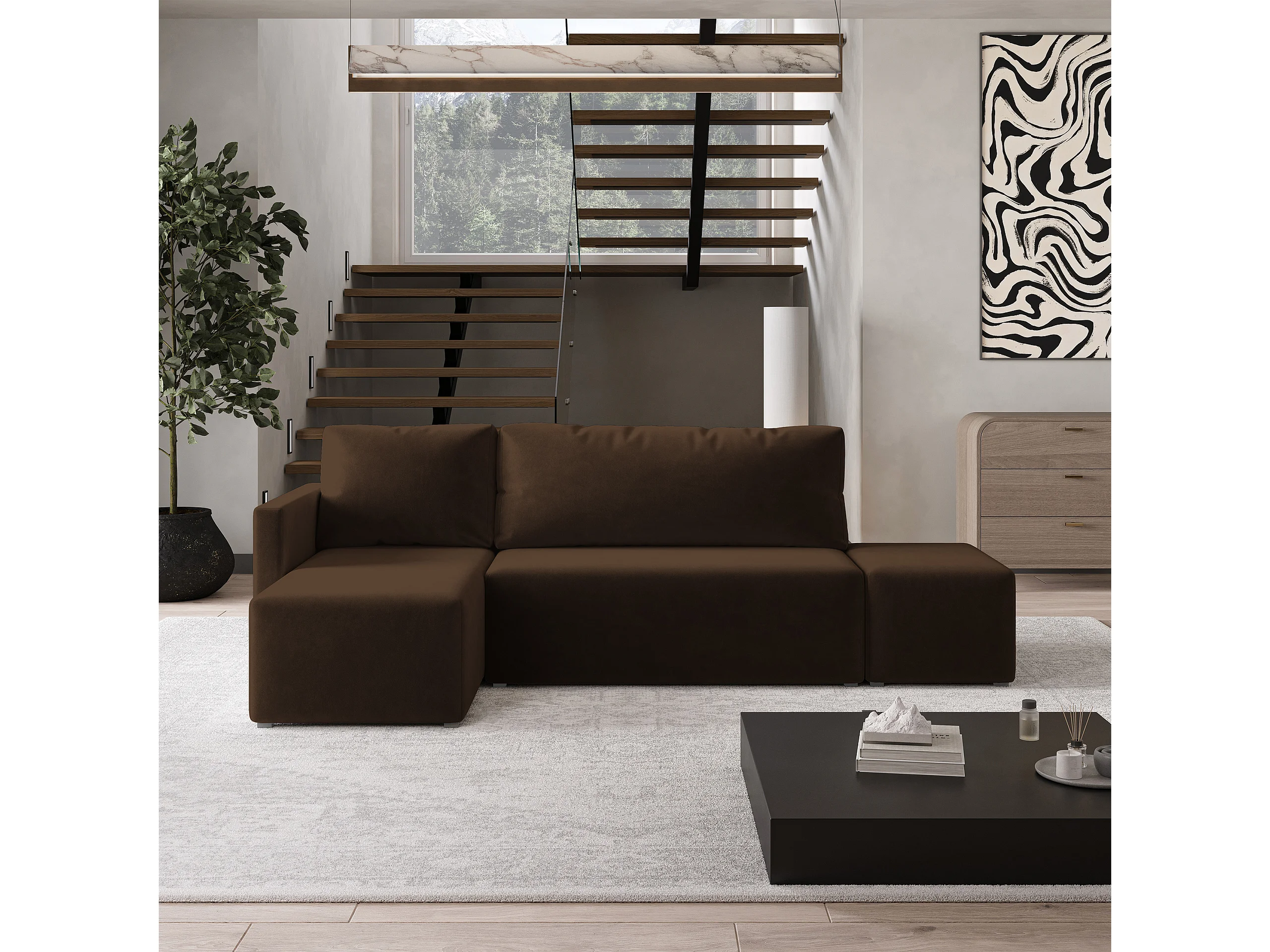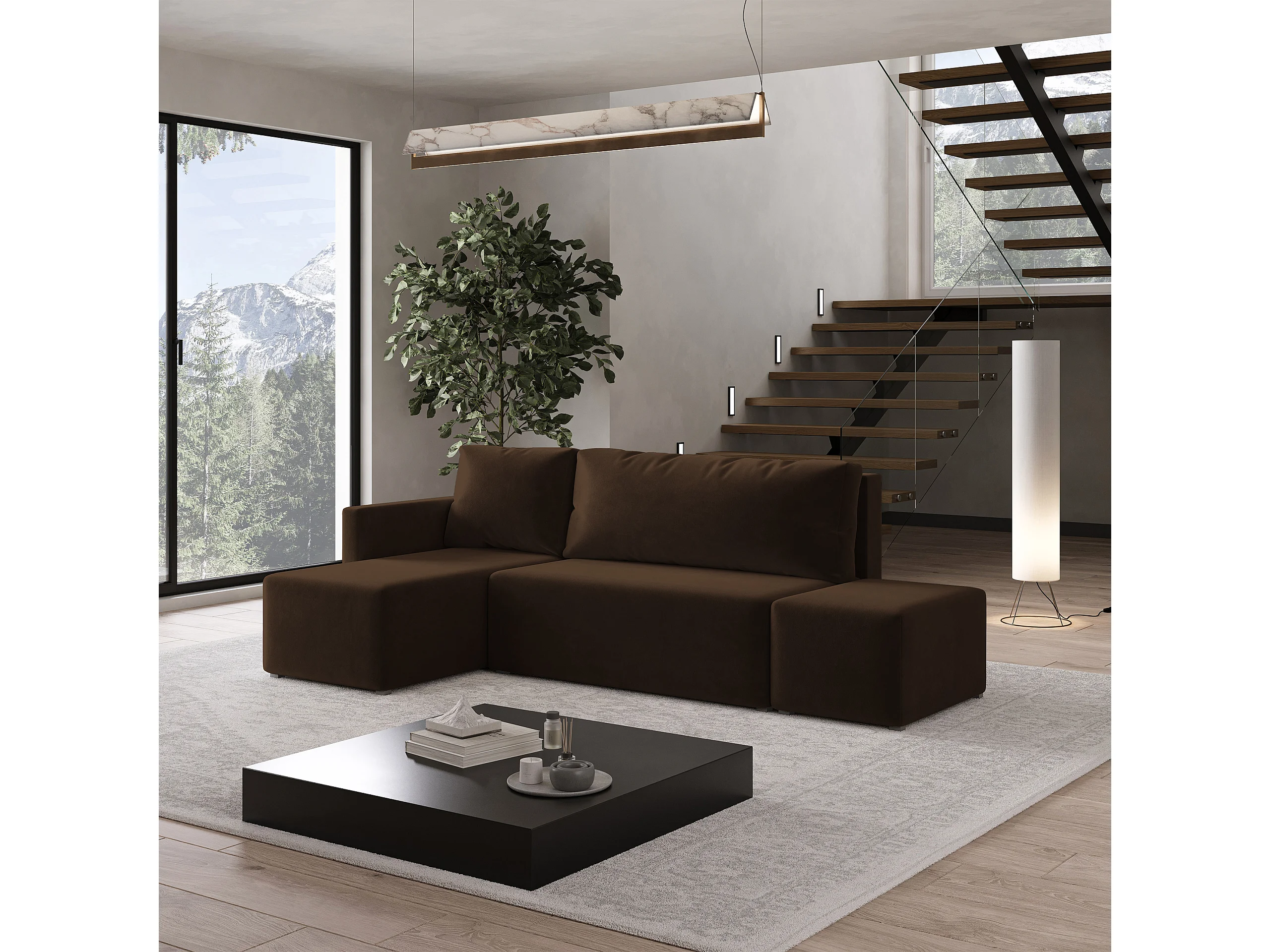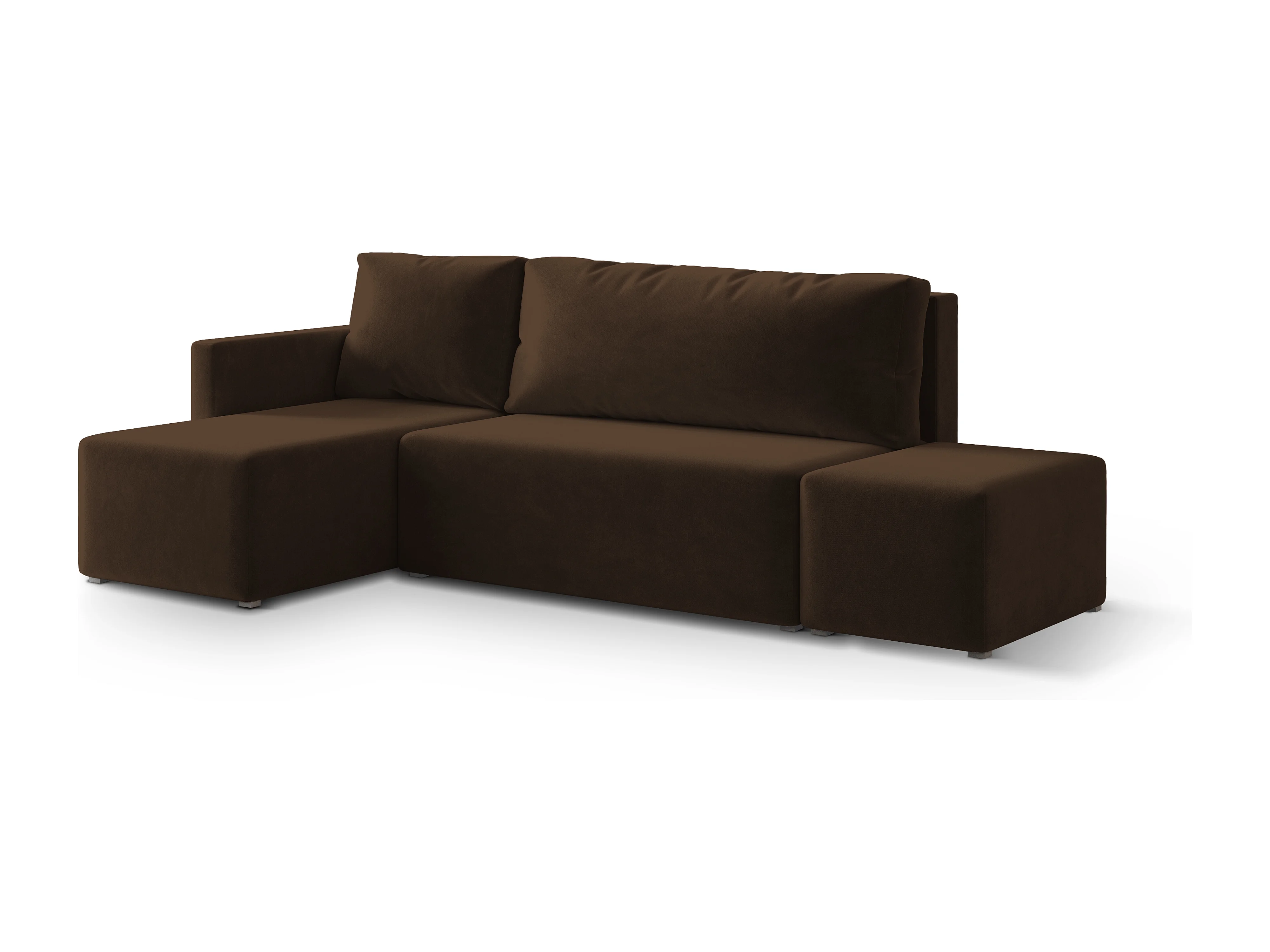 Hoekbank VELOTTI van fluweel met slaapfunctie Braun