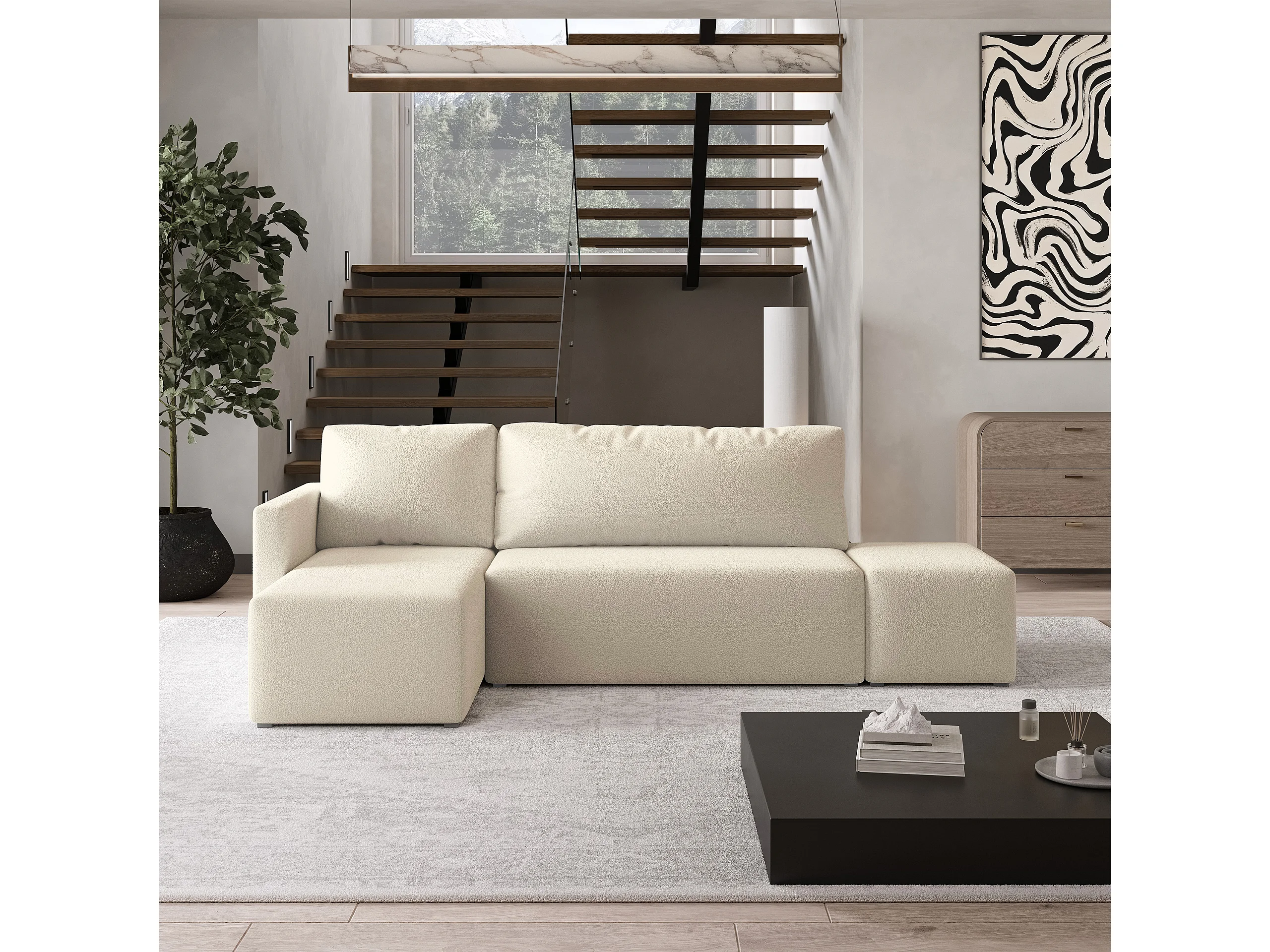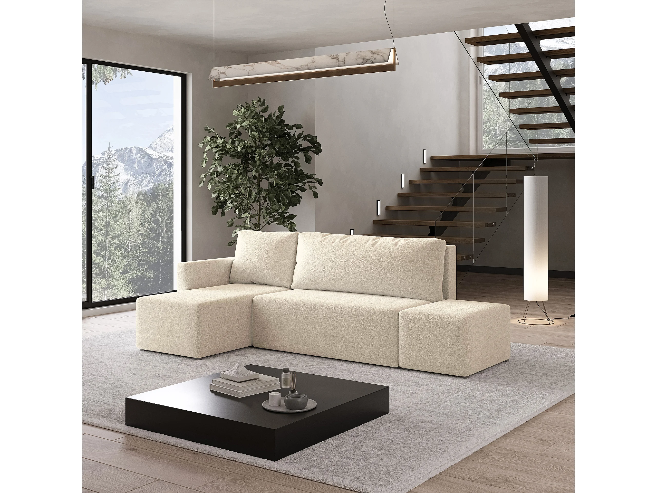 Hoekbank VELOTTI van fluweel met slaapfunctie Creme