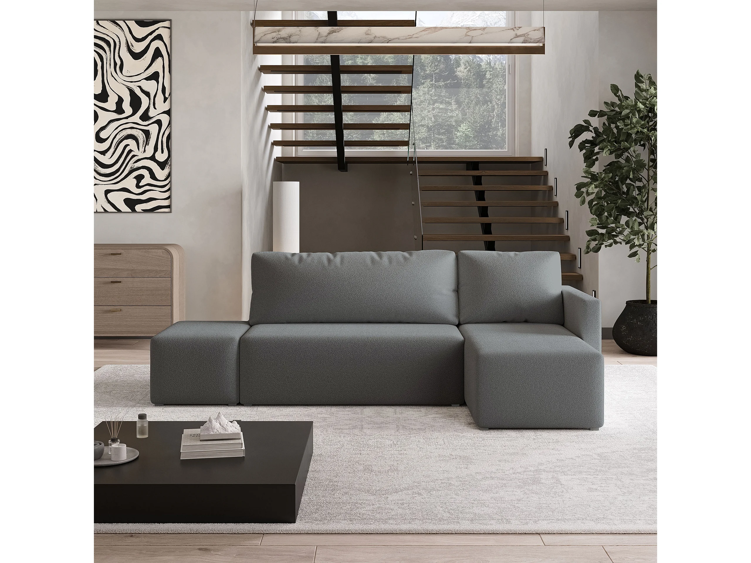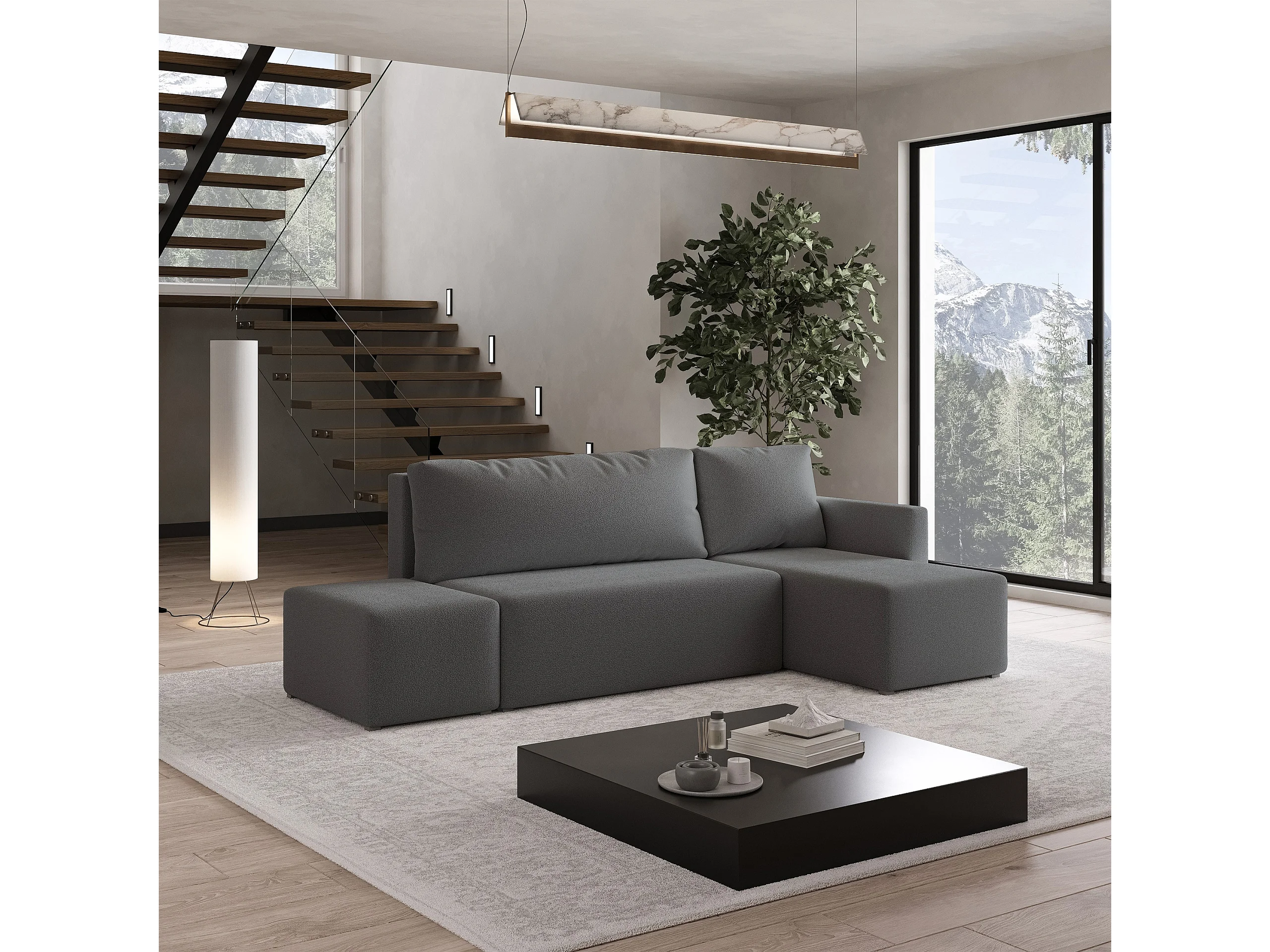 Hoekbank VELOTTI van fluweel met slaapfunctie Grau