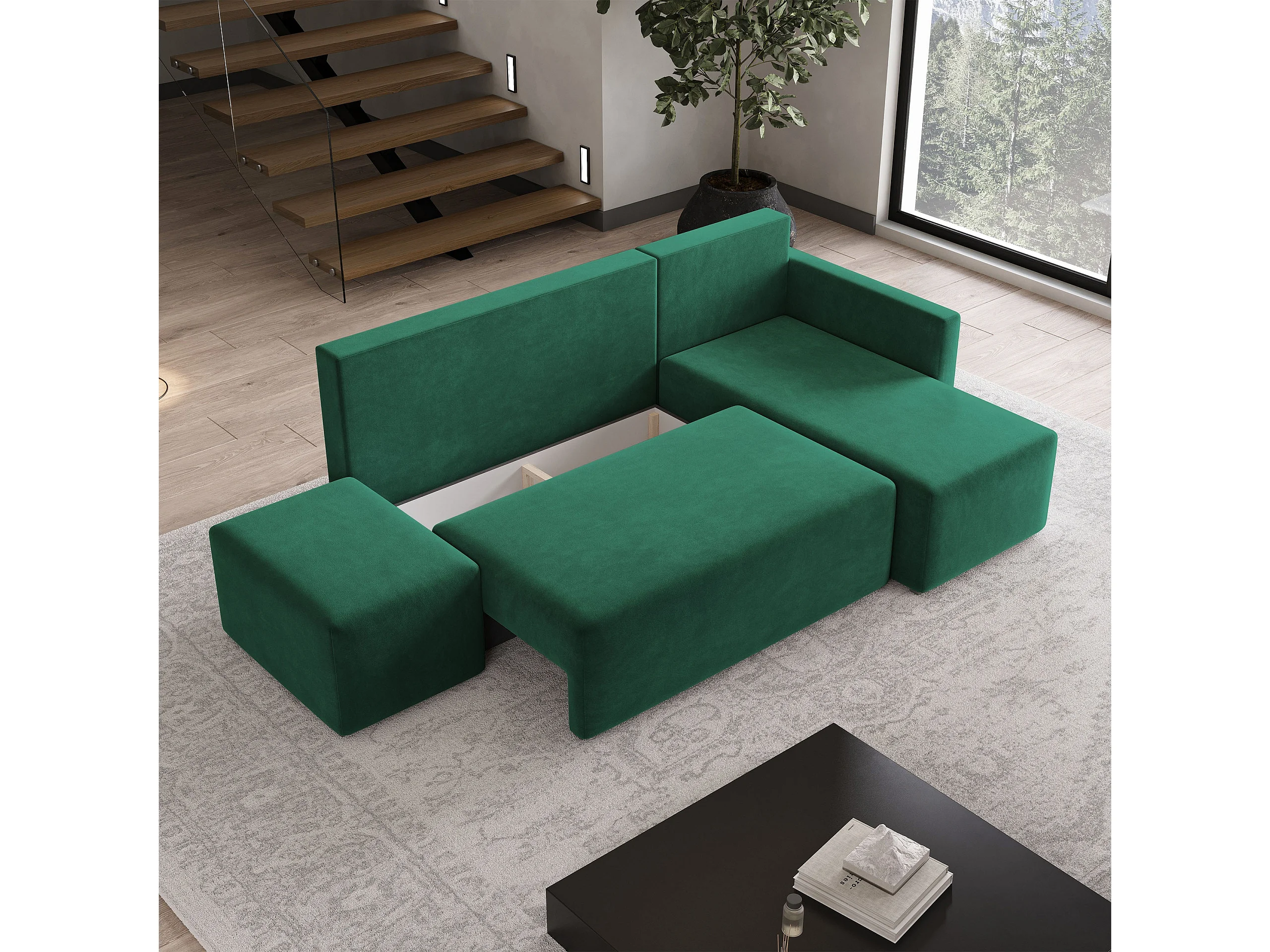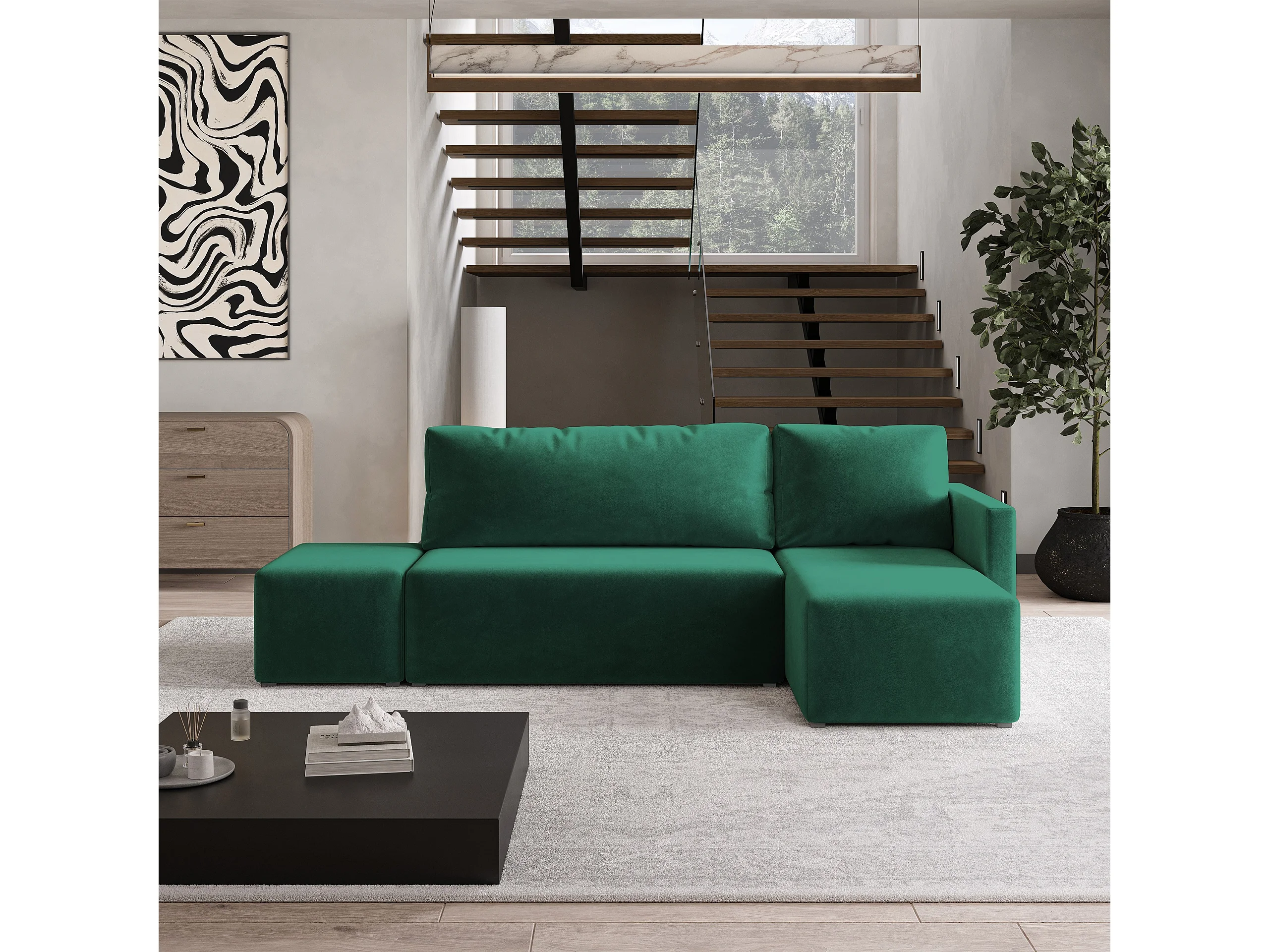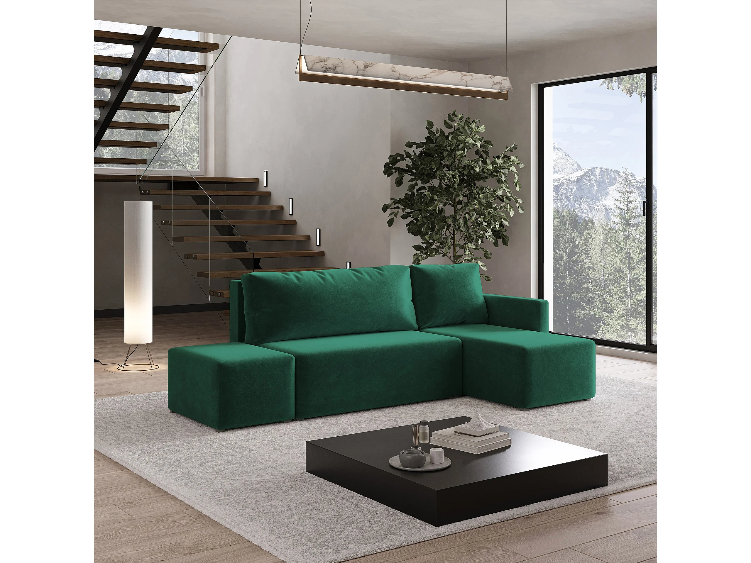Hoekbank VELOTTI van fluweel met slaapfunctie Grün