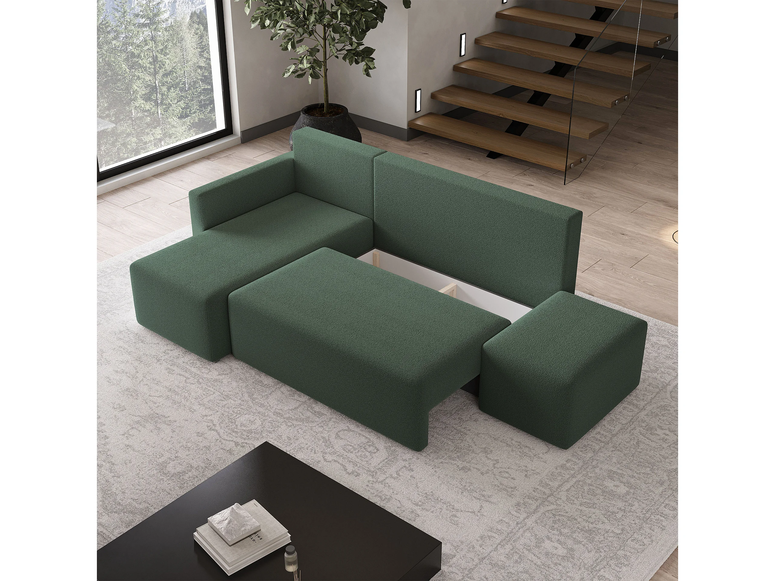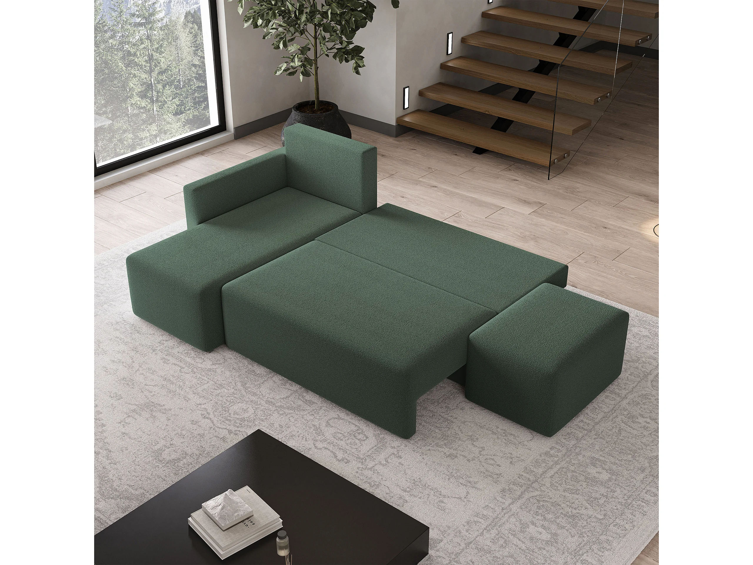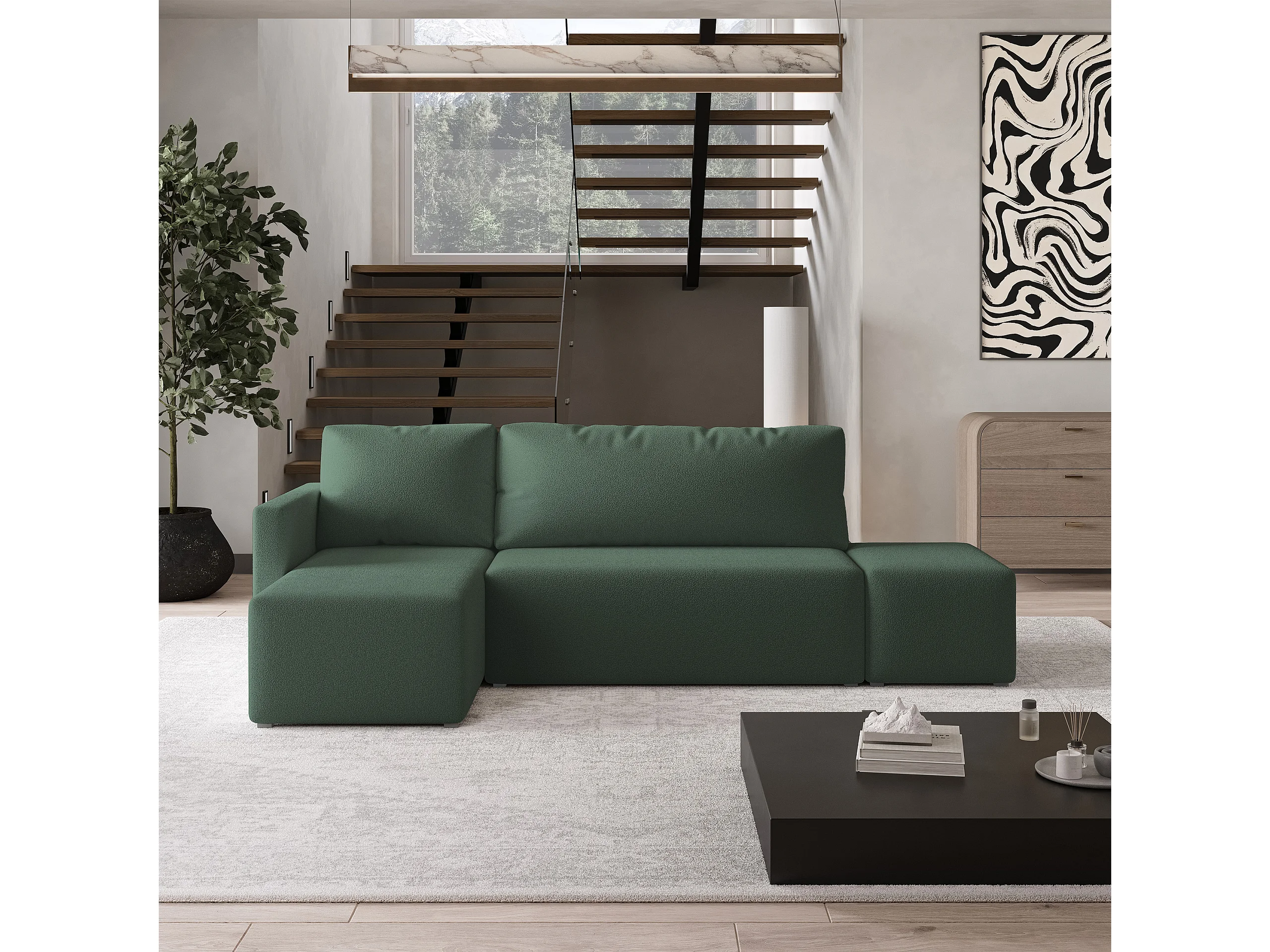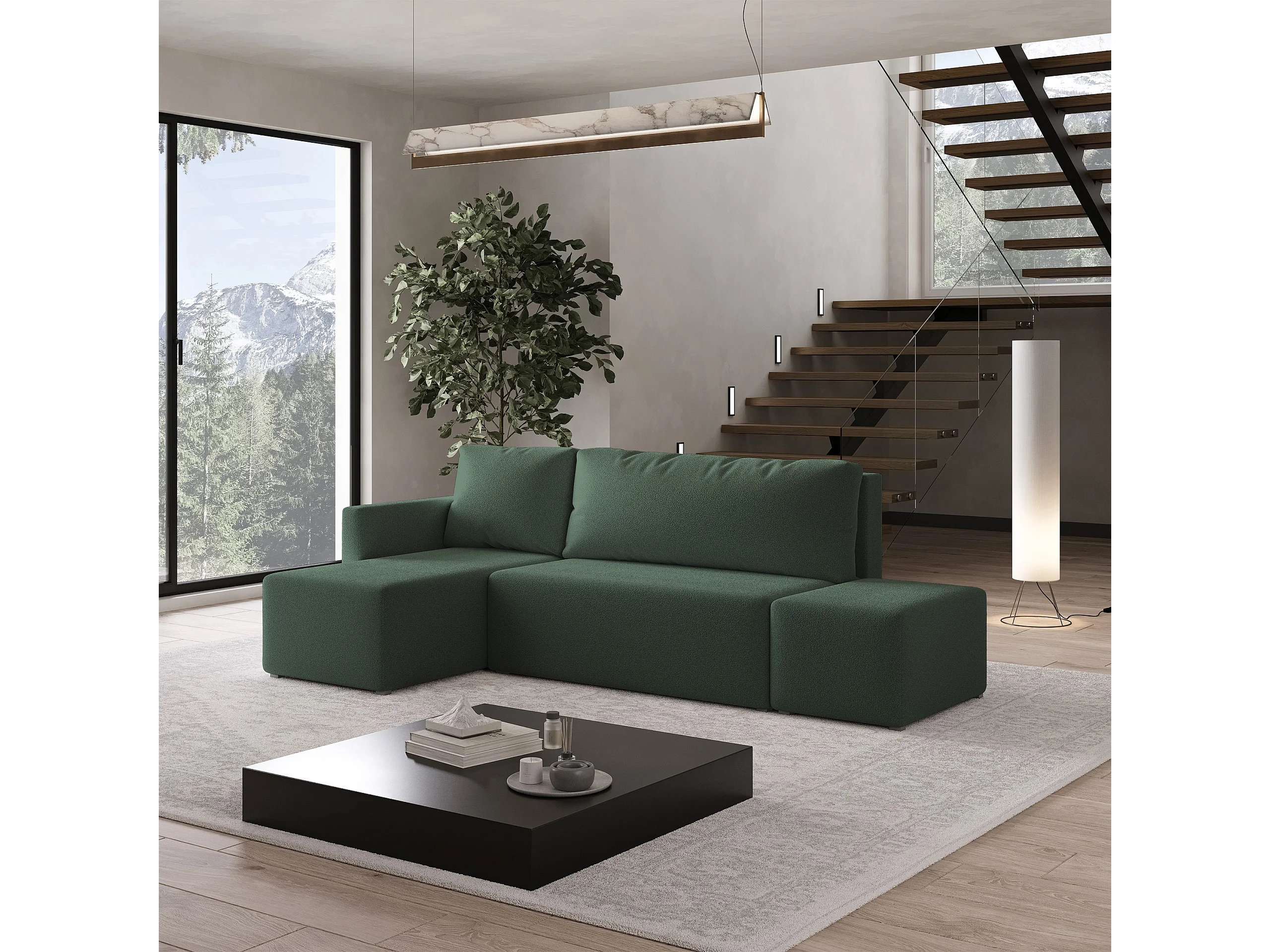 Hoekbank VELOTTI van fluweel met slaapfunctie Grün