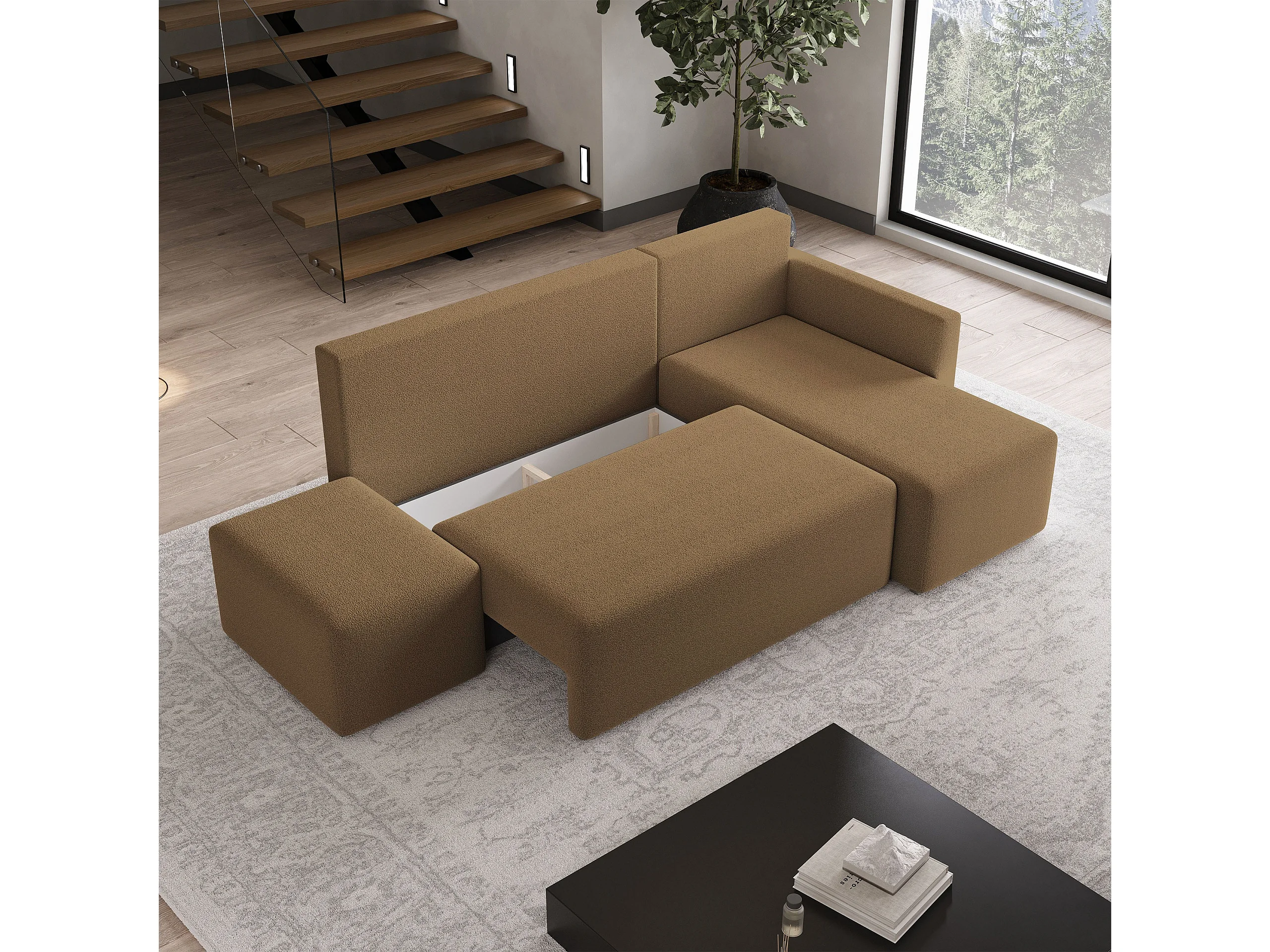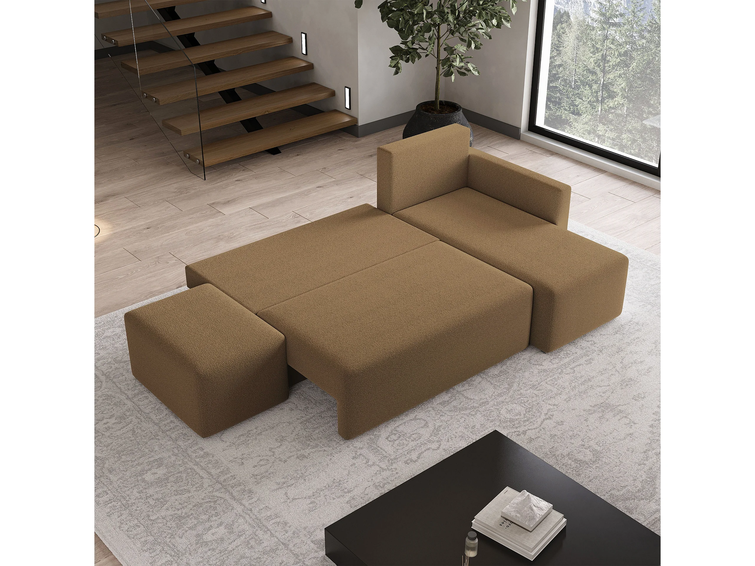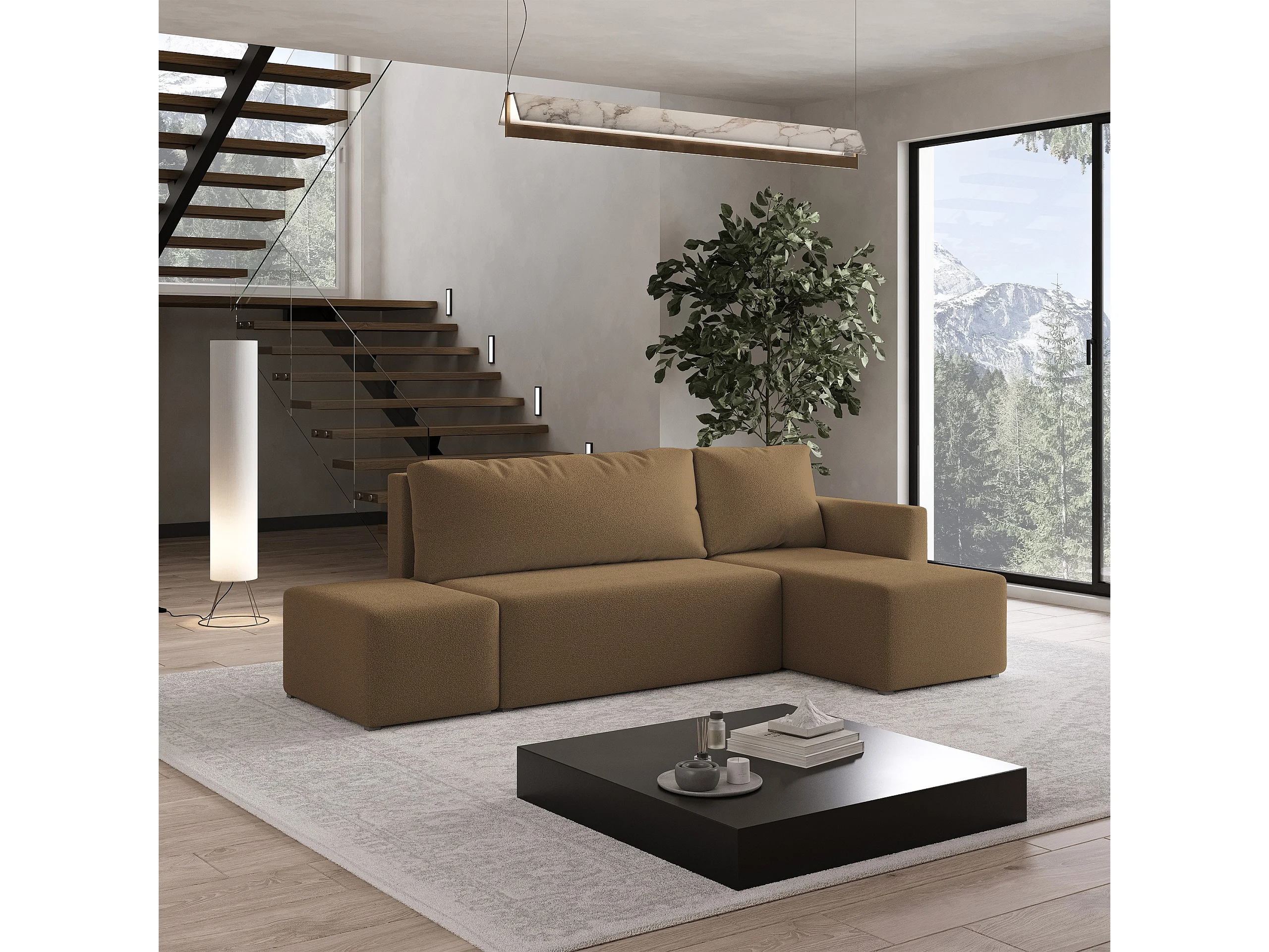 Hoekbank VELOTTI van fluweel met slaapfunctie Orange