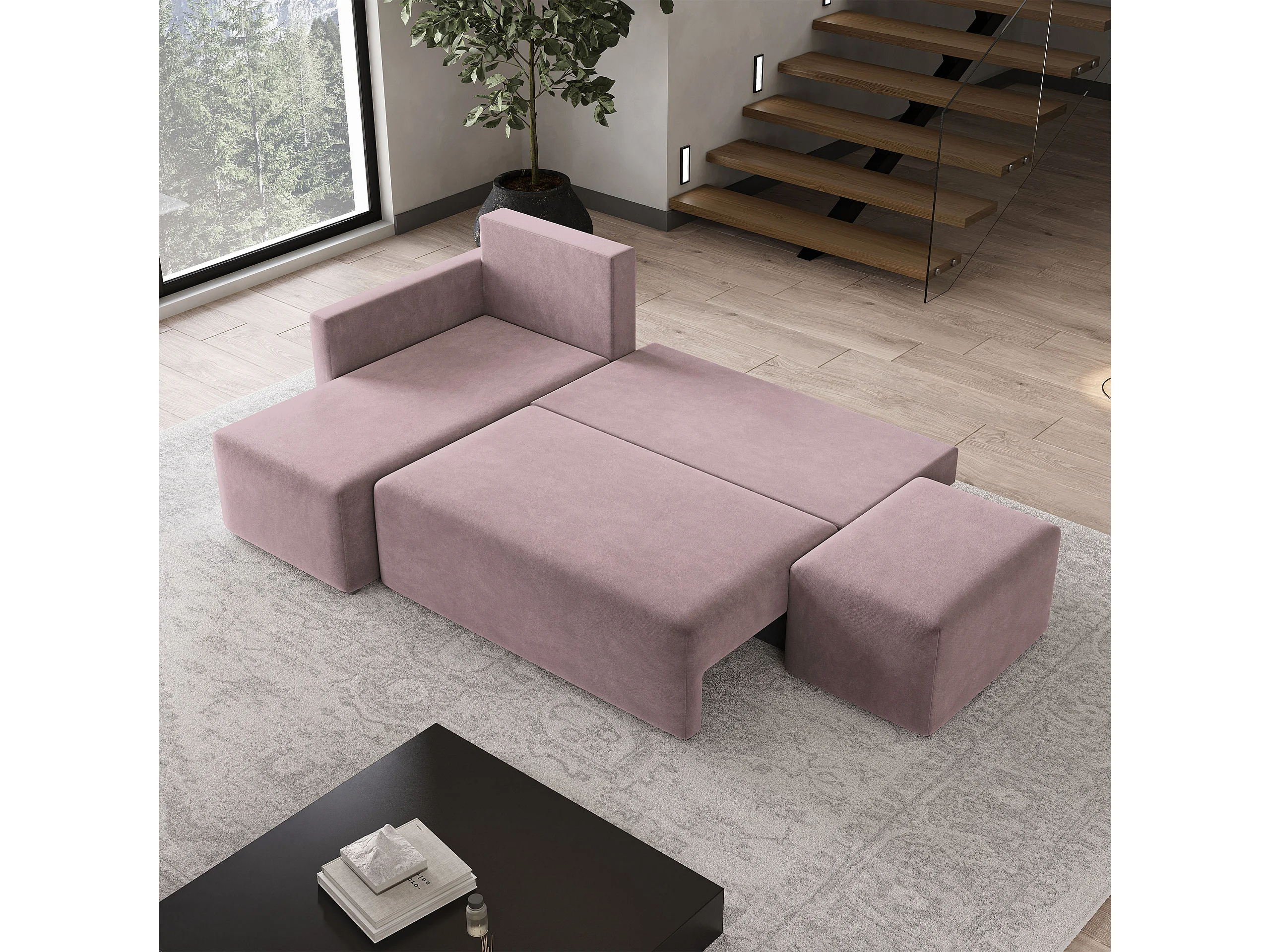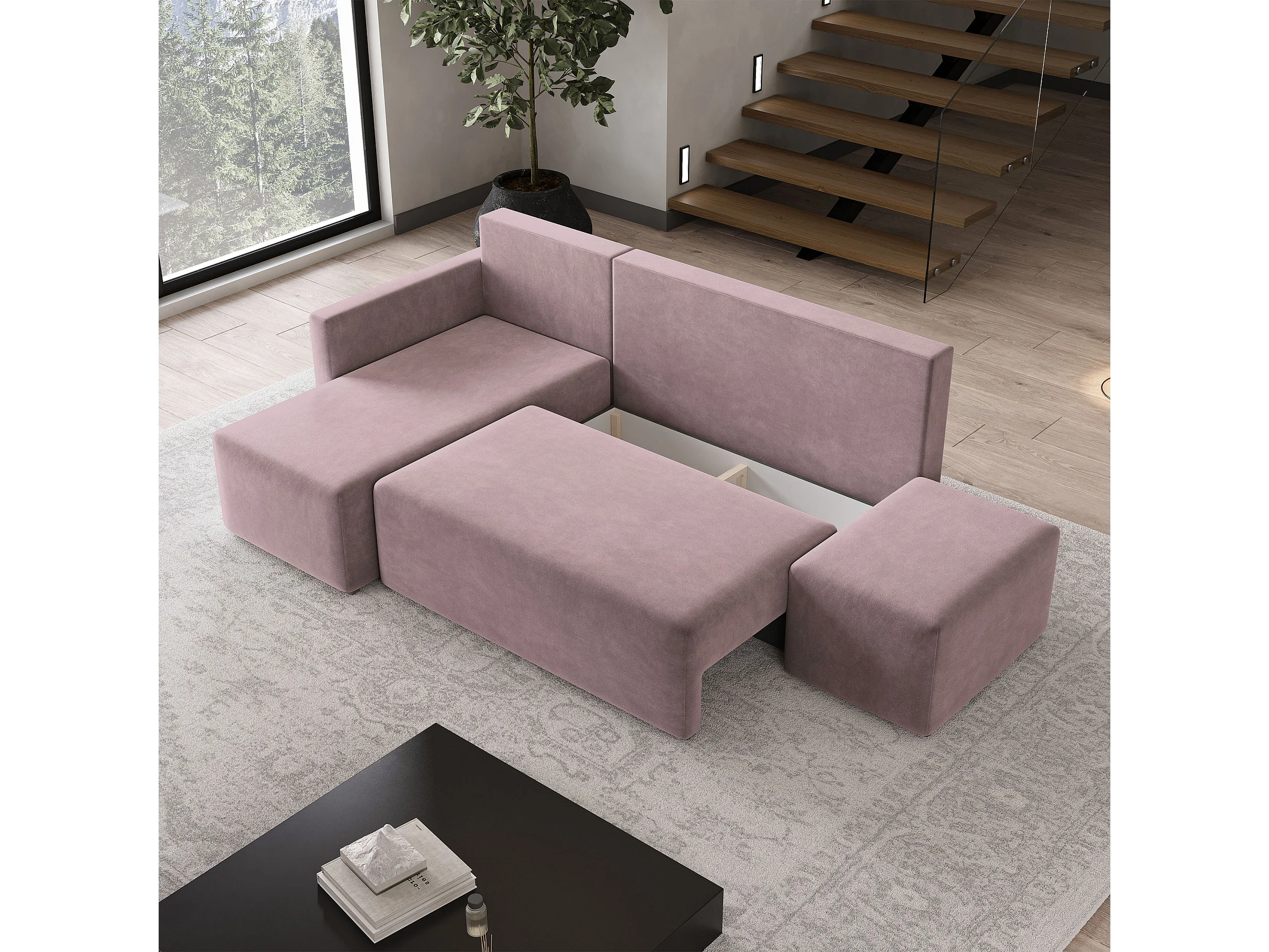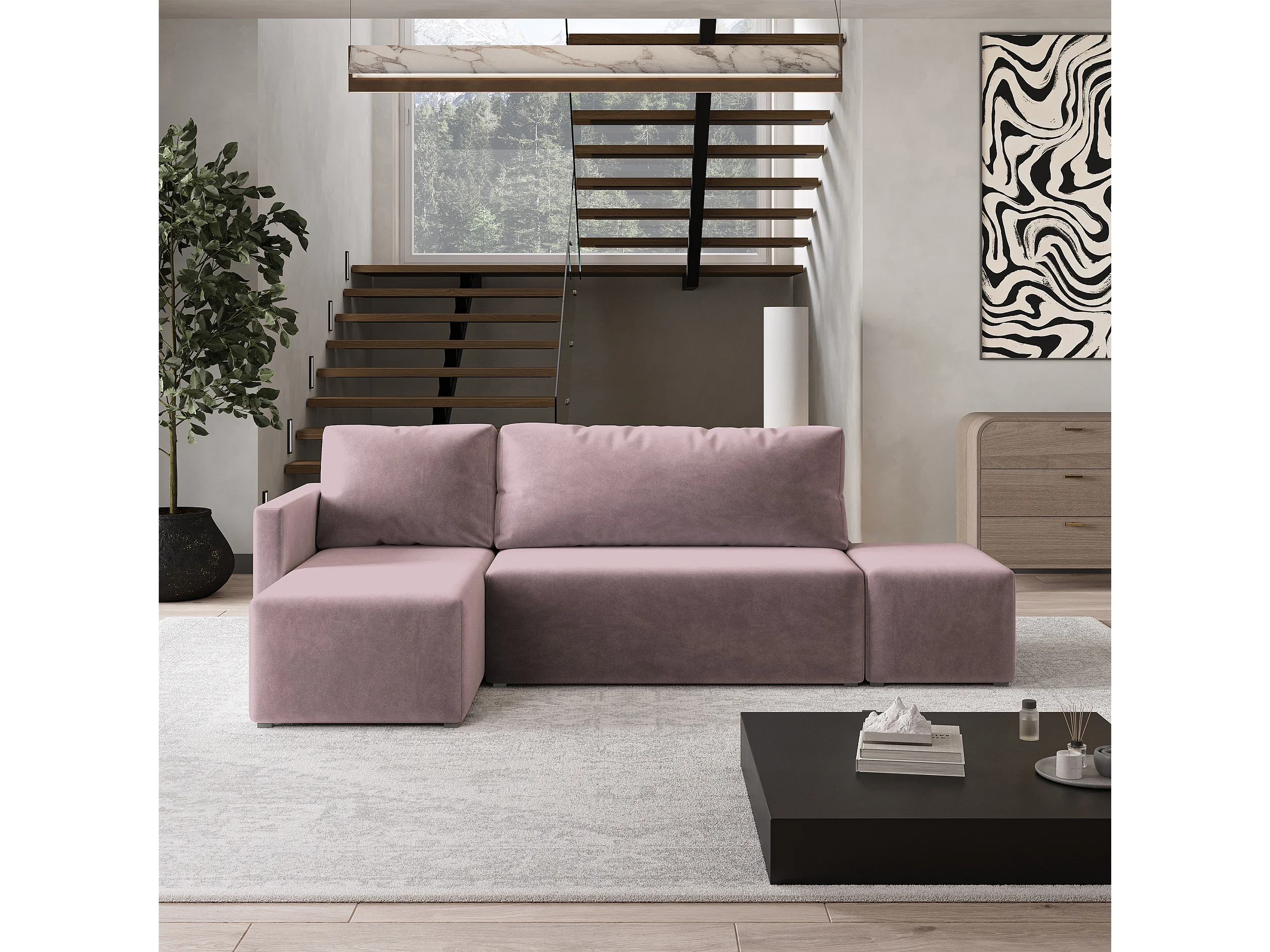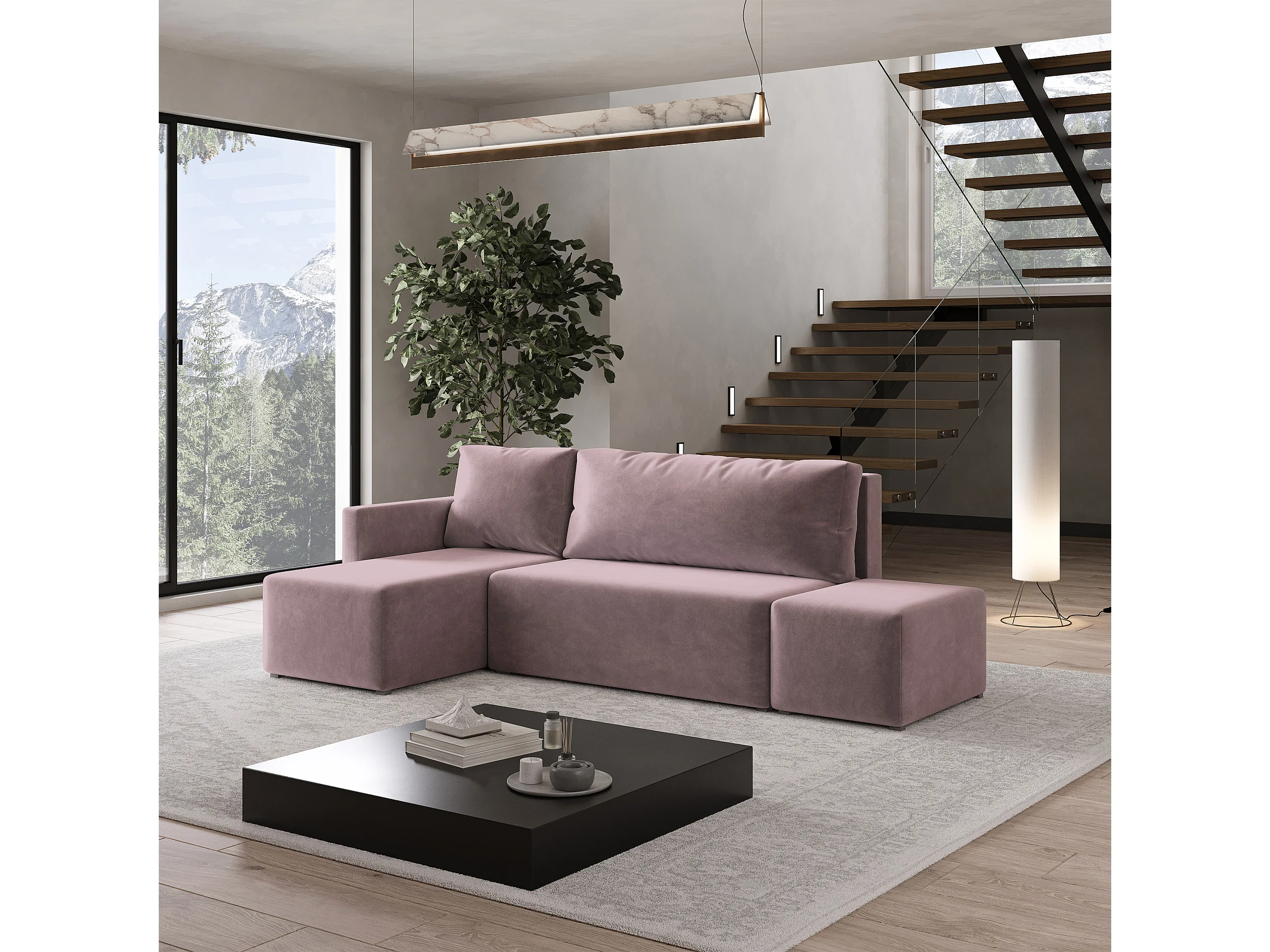 Hoekbank VELOTTI van fluweel met slaapfunctie Rosa