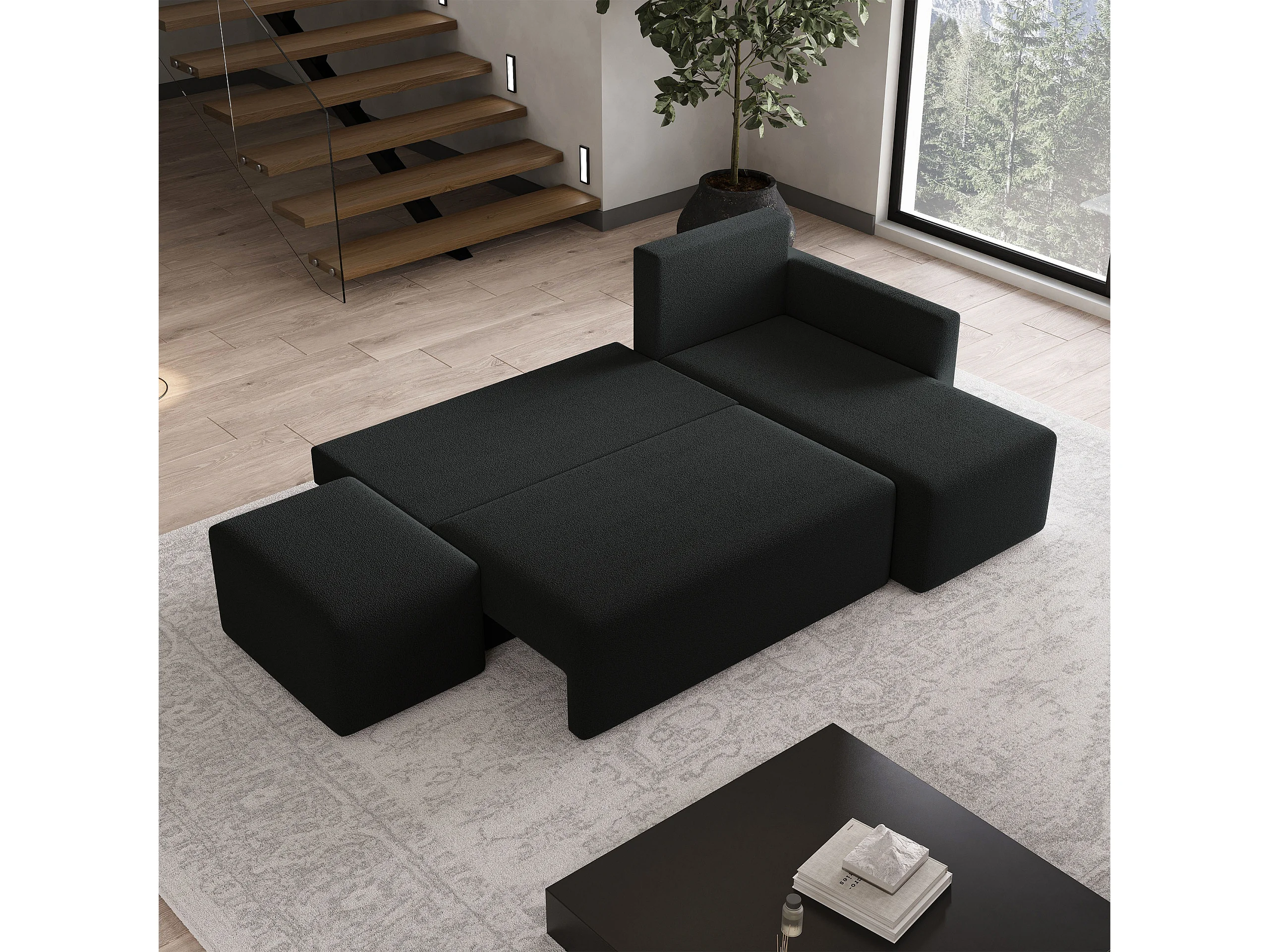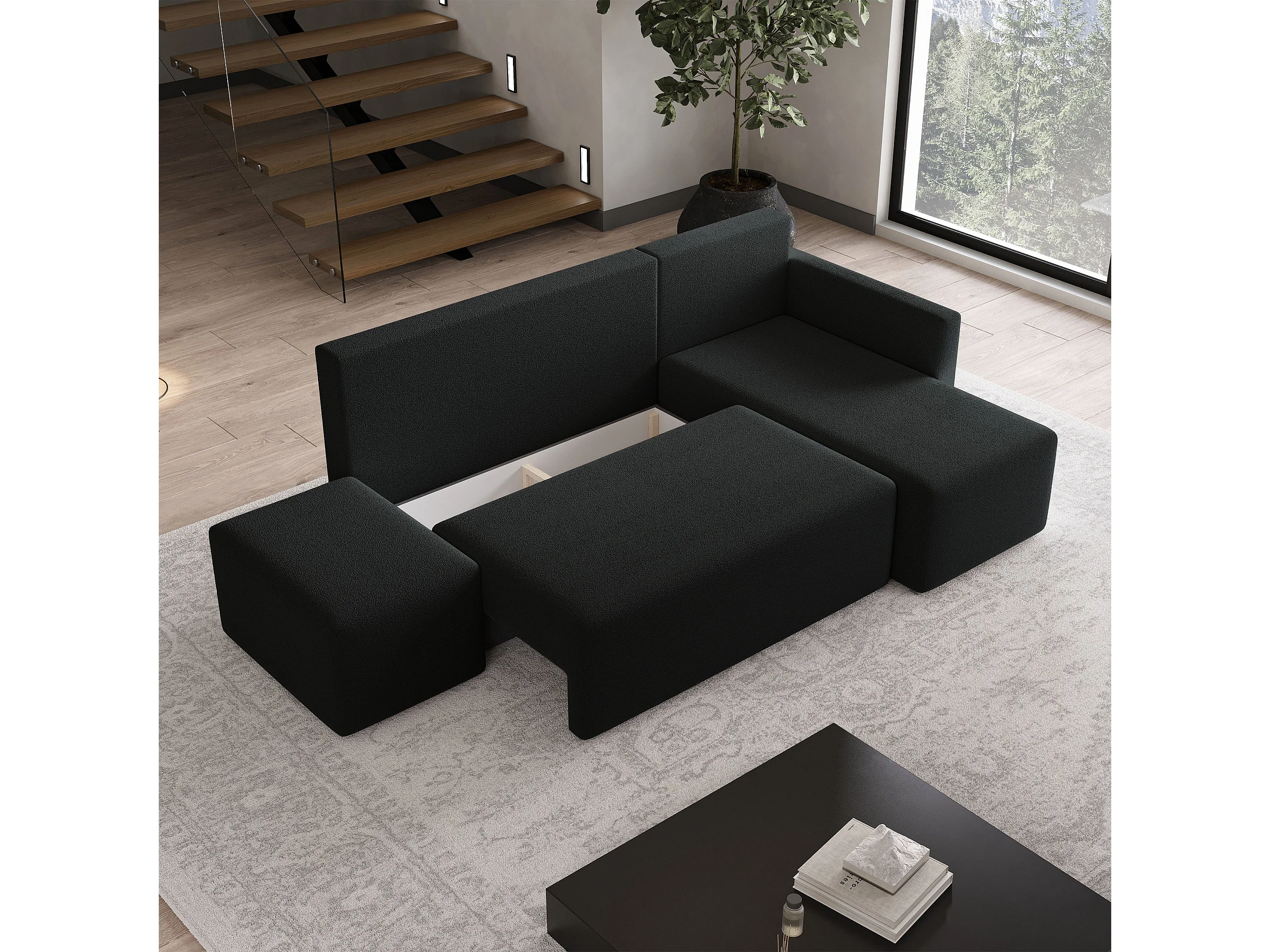 Hoekbank VELOTTI van fluweel met slaapfunctie Schwarz