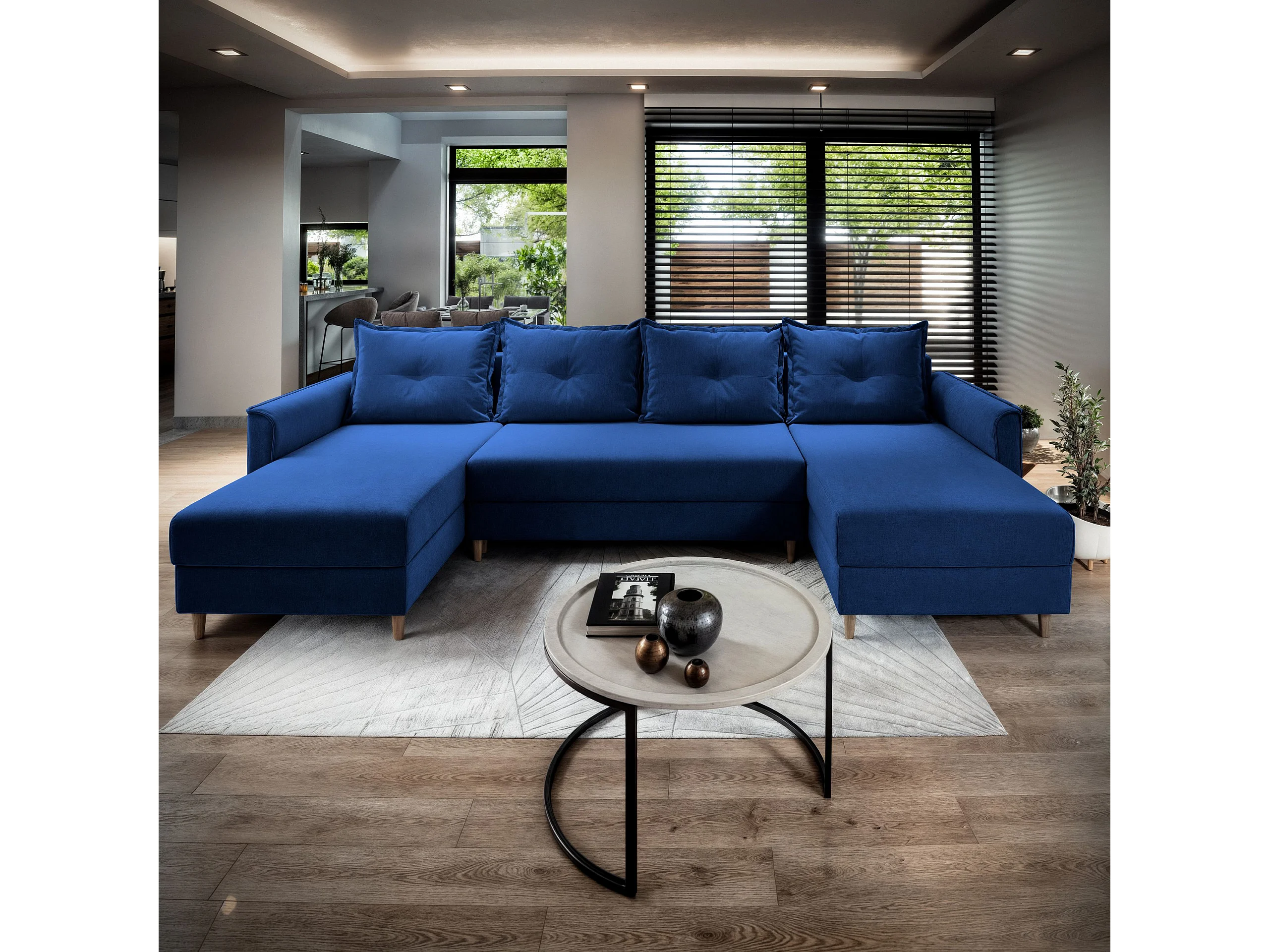 Hoekbank VERNI van fluweel met slaapfunctie Blau