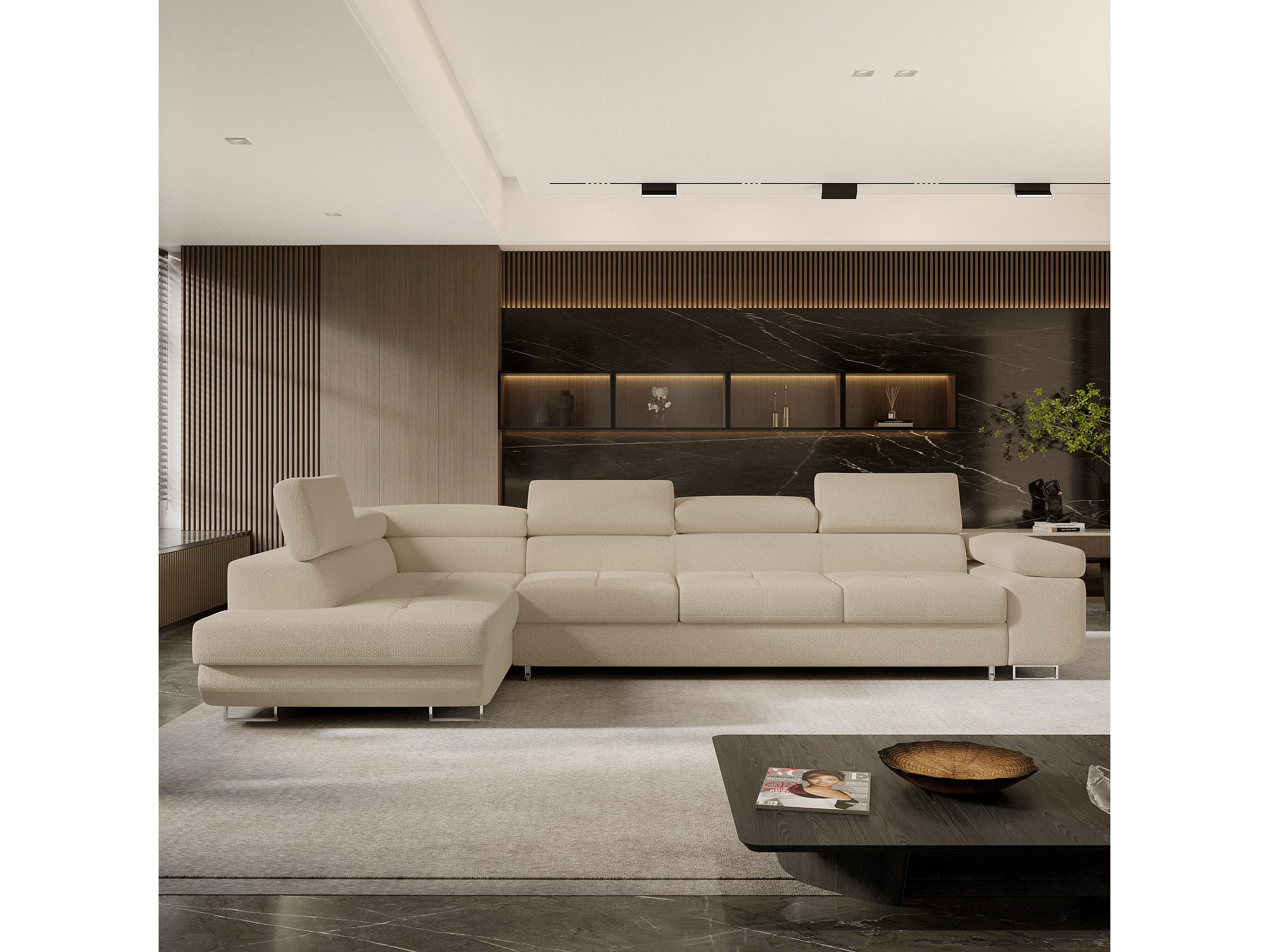 Hoekbank VICENTE van fluweel met slaapfunctie Beige