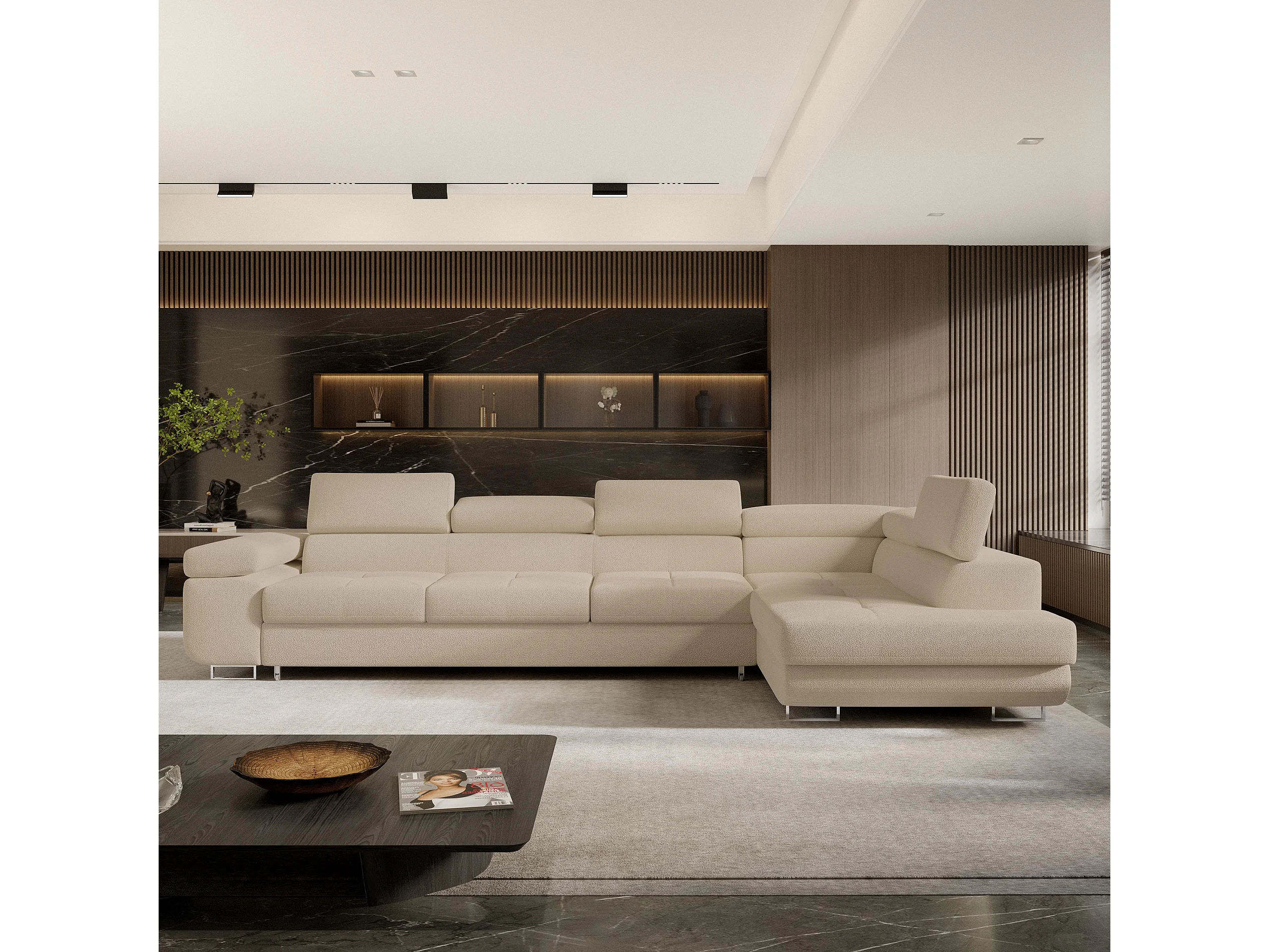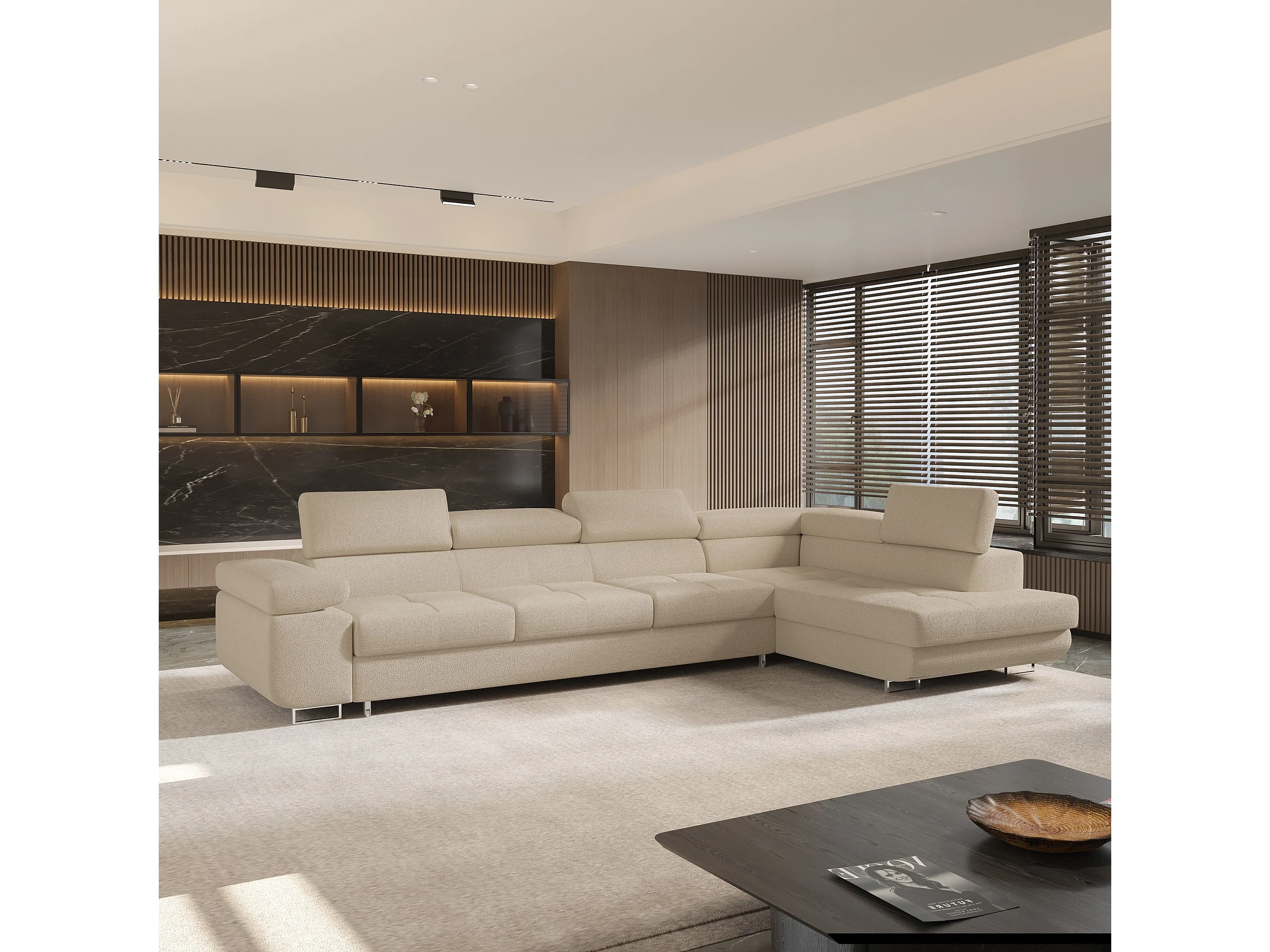 Hoekbank VICENTE van fluweel met slaapfunctie Beige