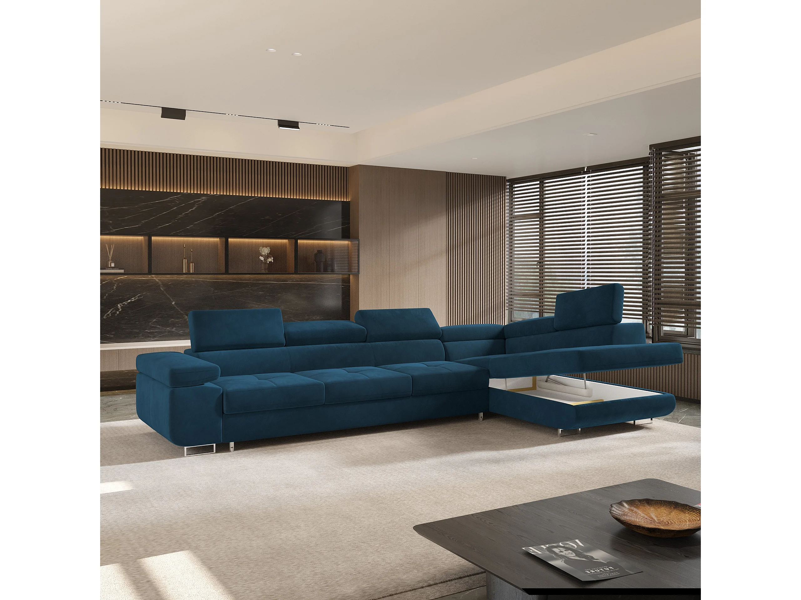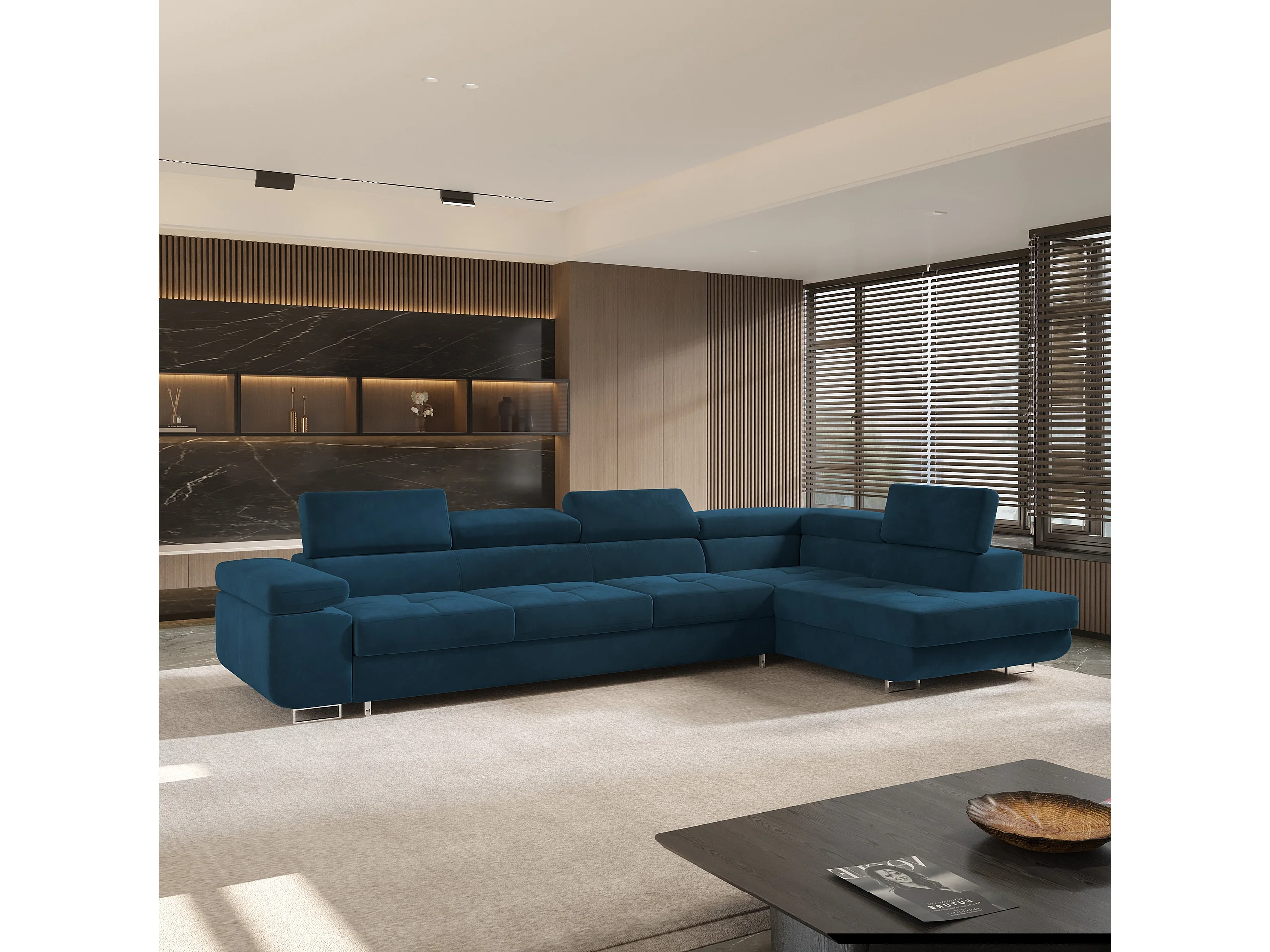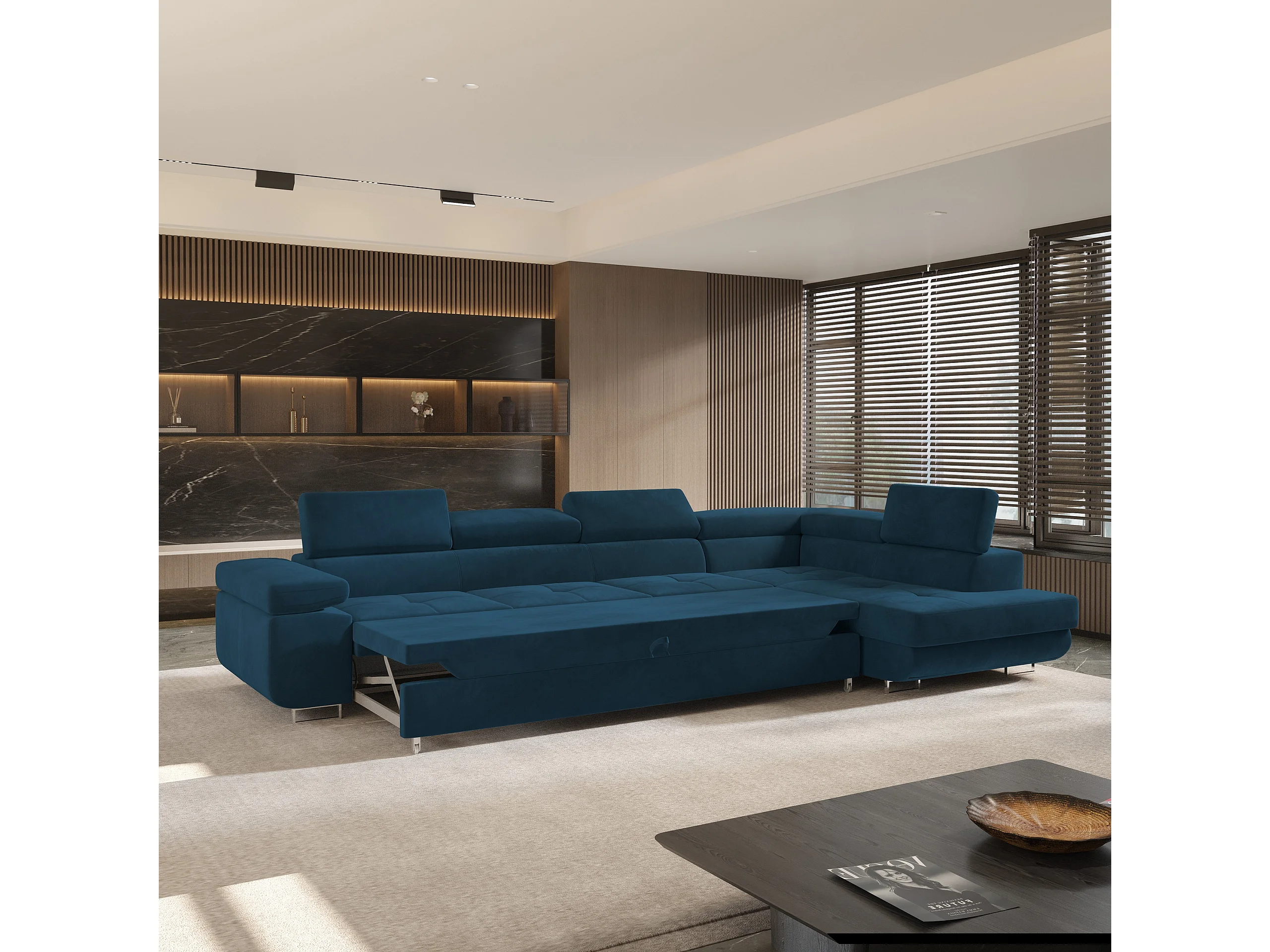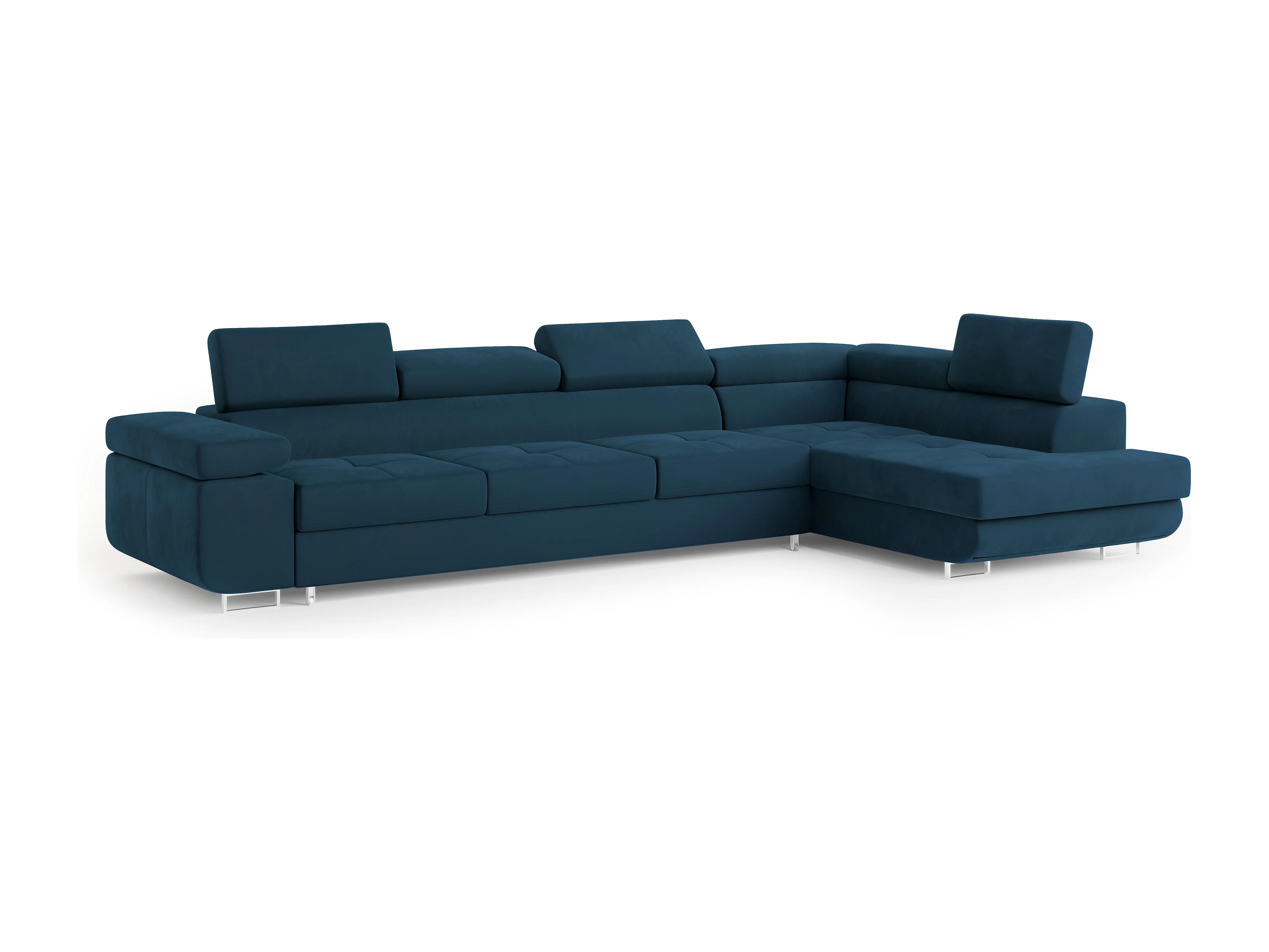 Hoekbank VICENTE van fluweel met slaapfunctie Blau