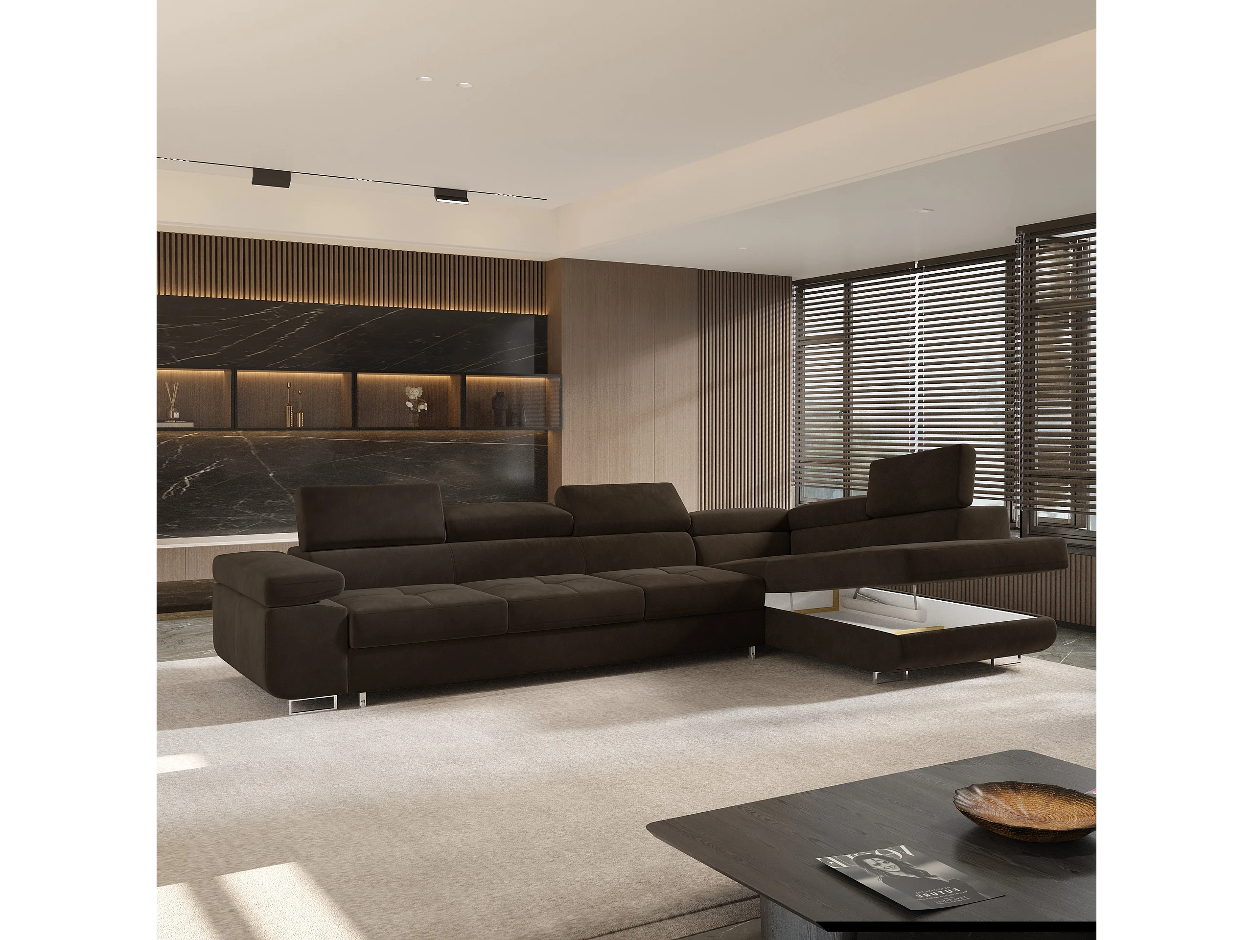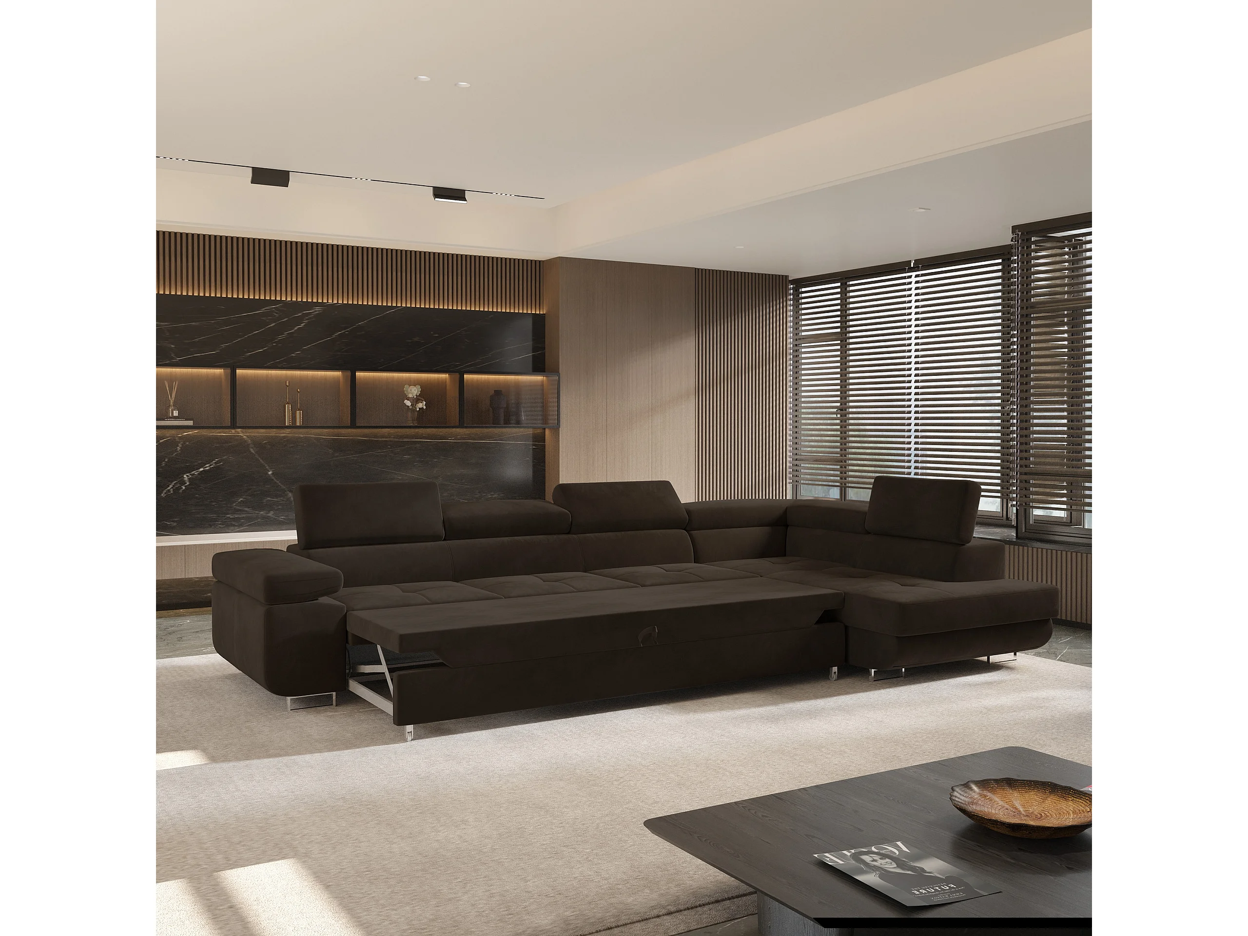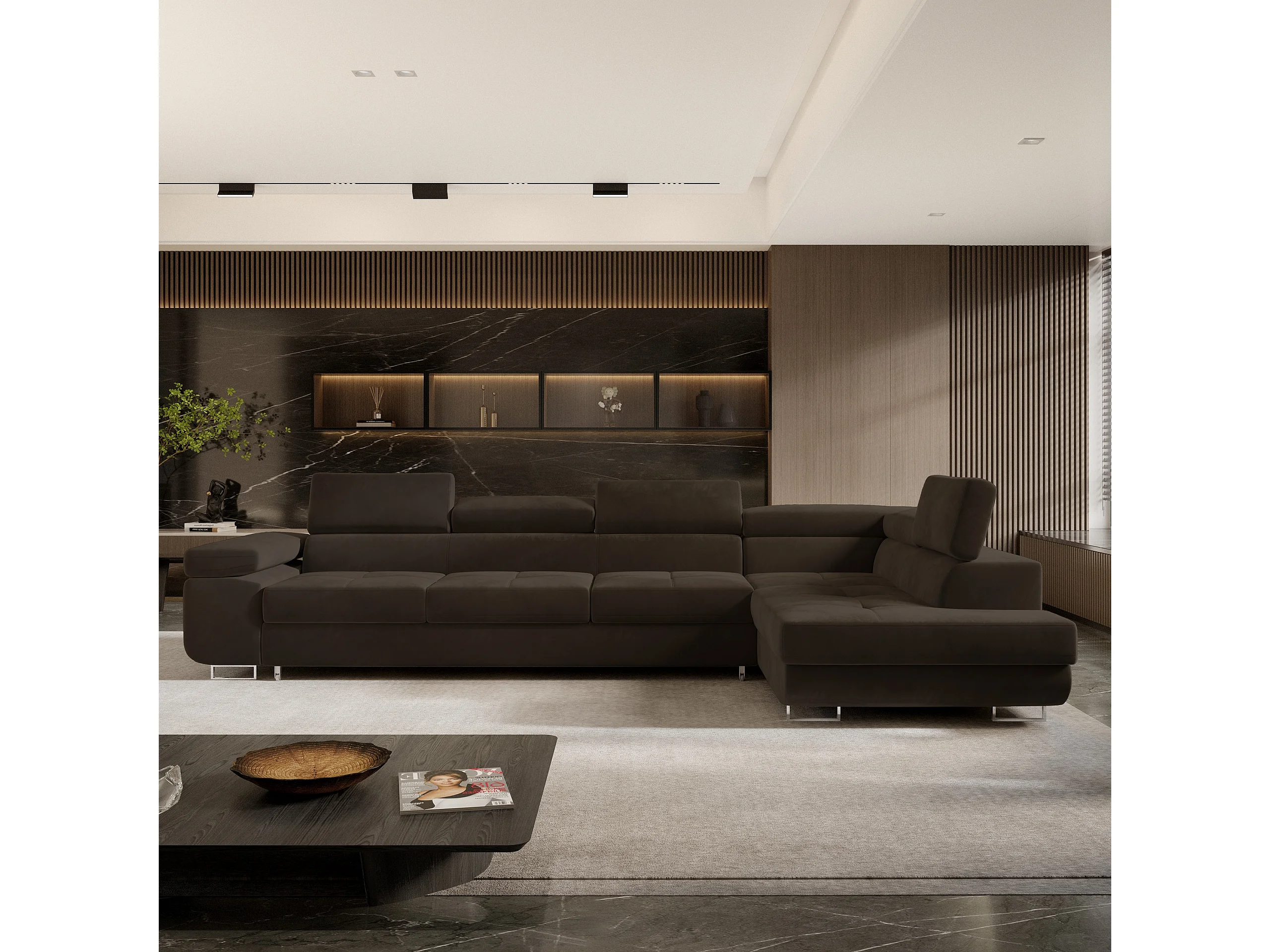 Hoekbank VICENTE van fluweel met slaapfunctie Braun