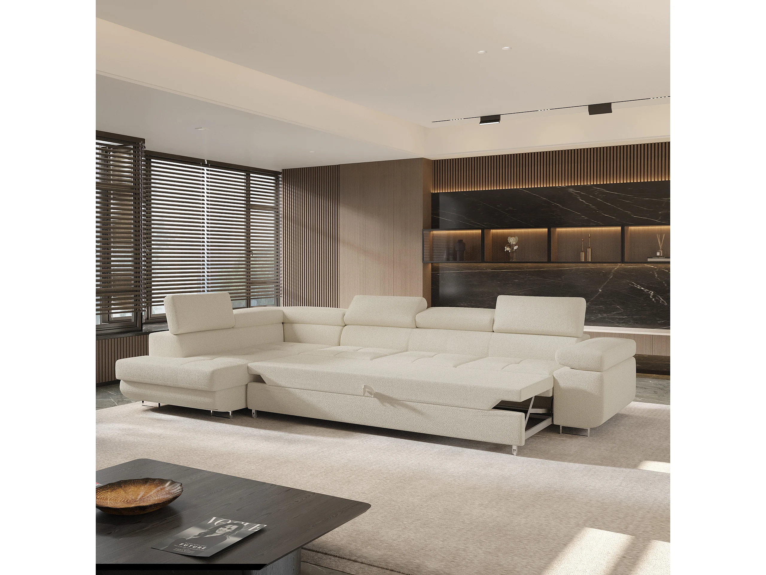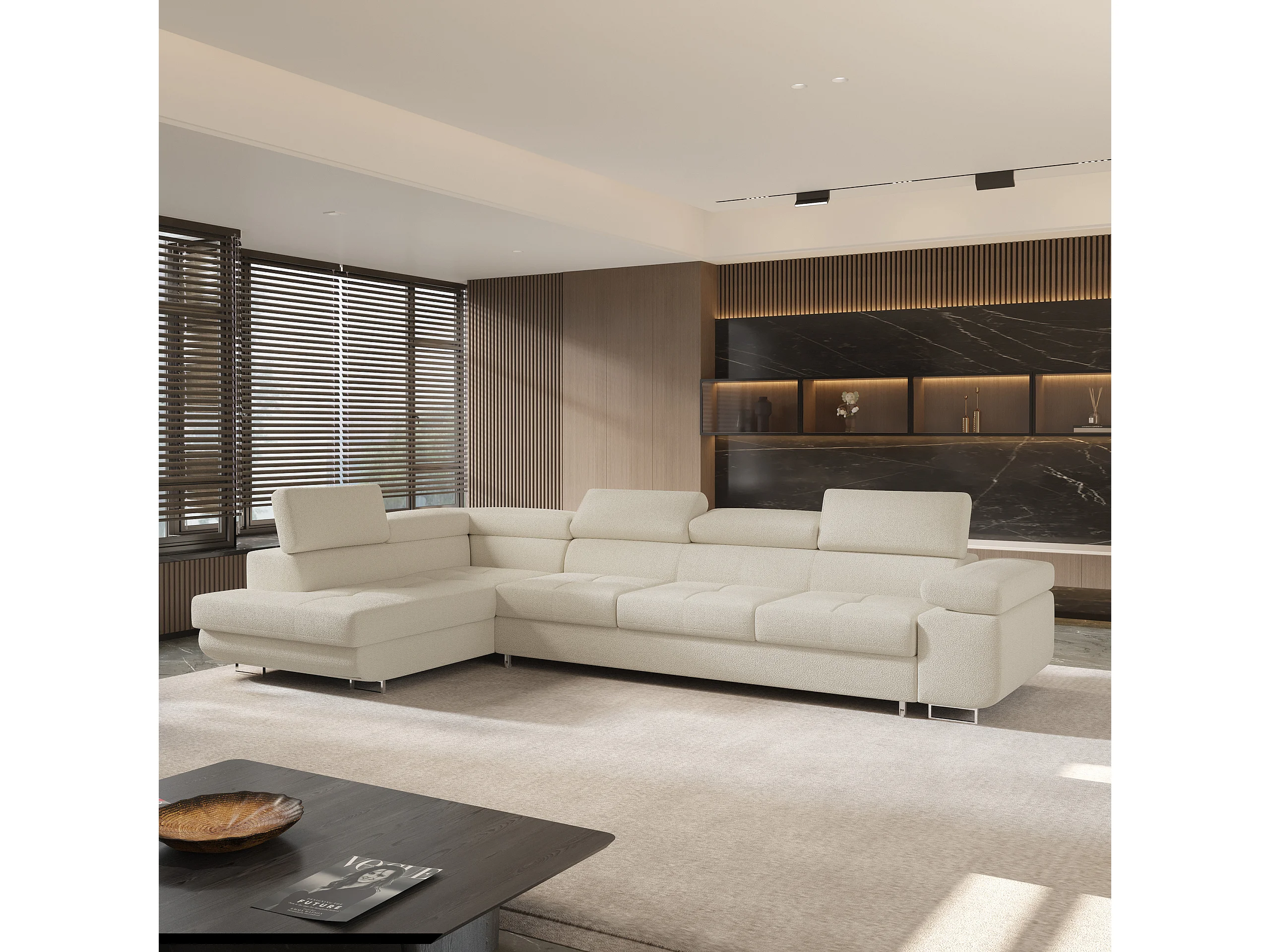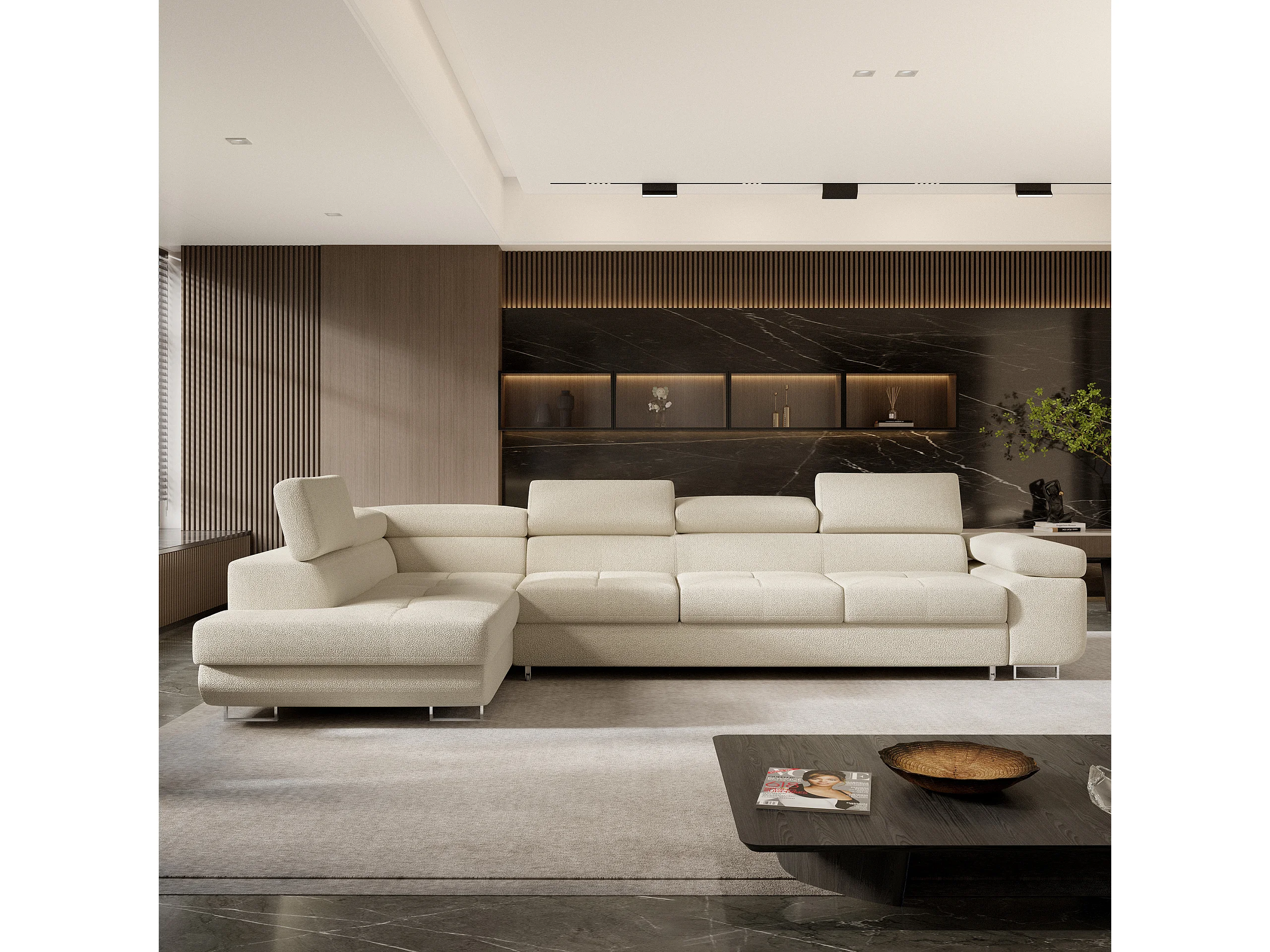 Hoekbank VICENTE van fluweel met slaapfunctie Creme