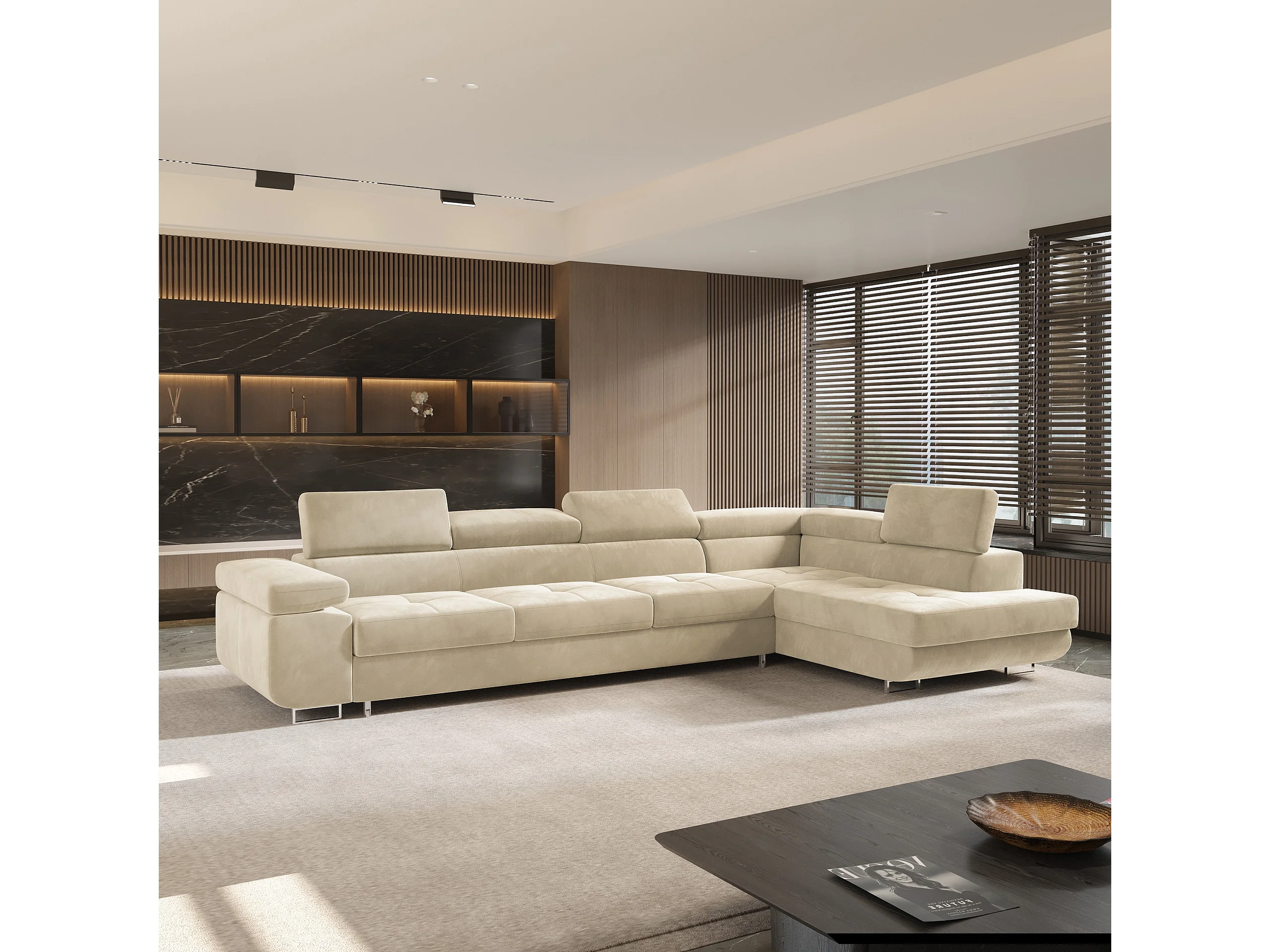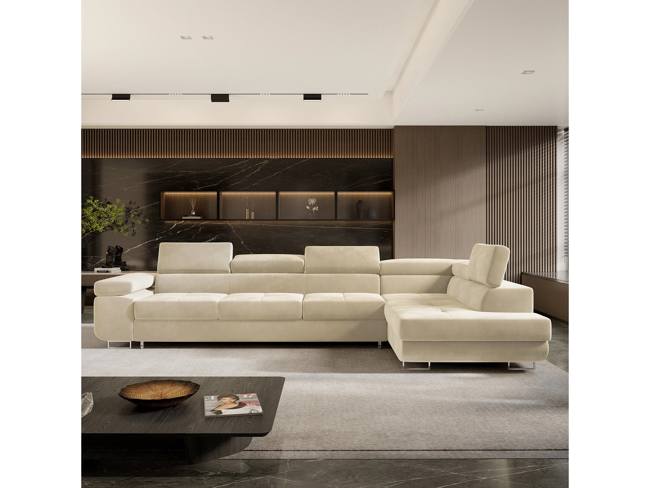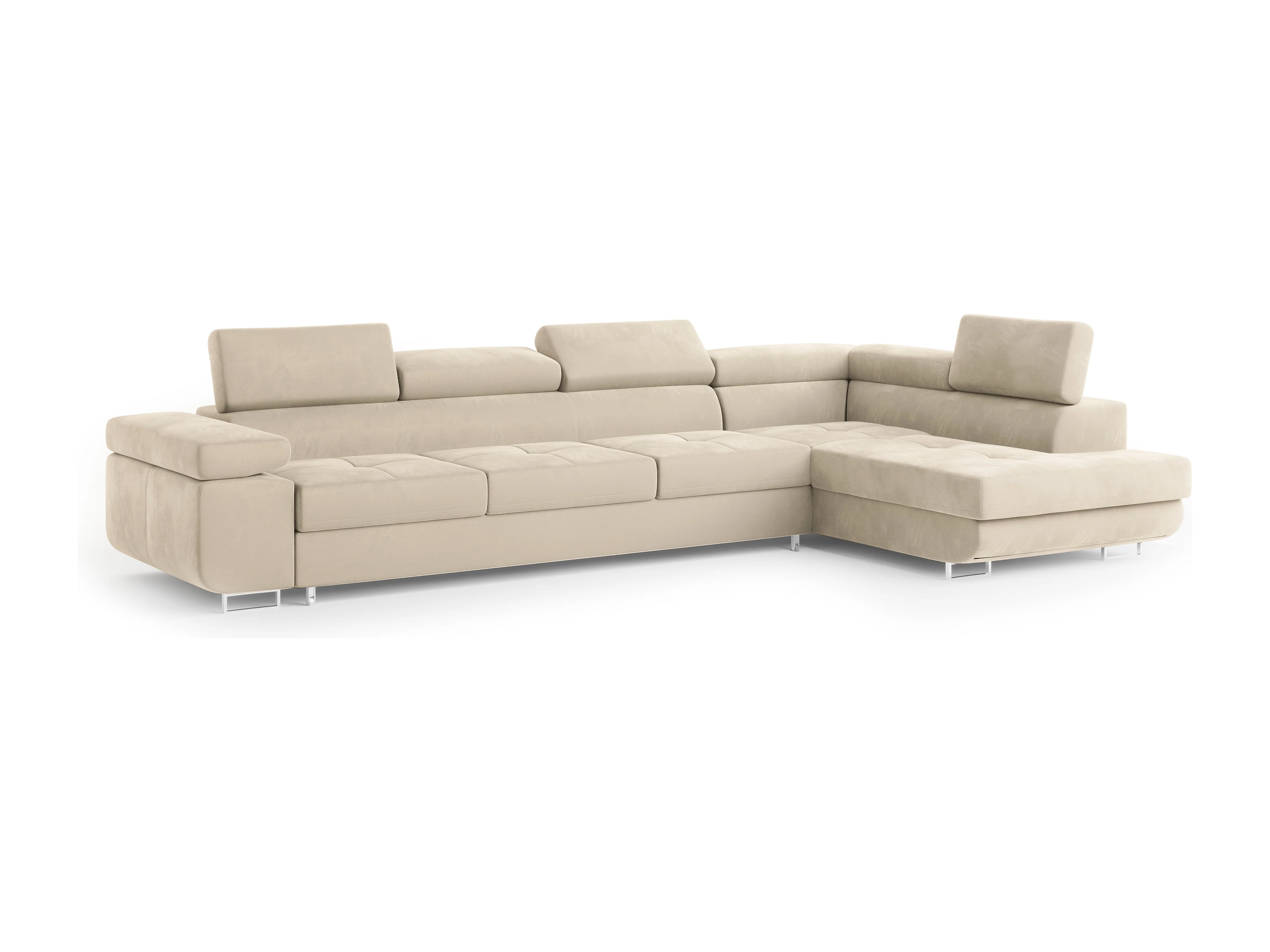 Hoekbank VICENTE van fluweel met slaapfunctie Creme