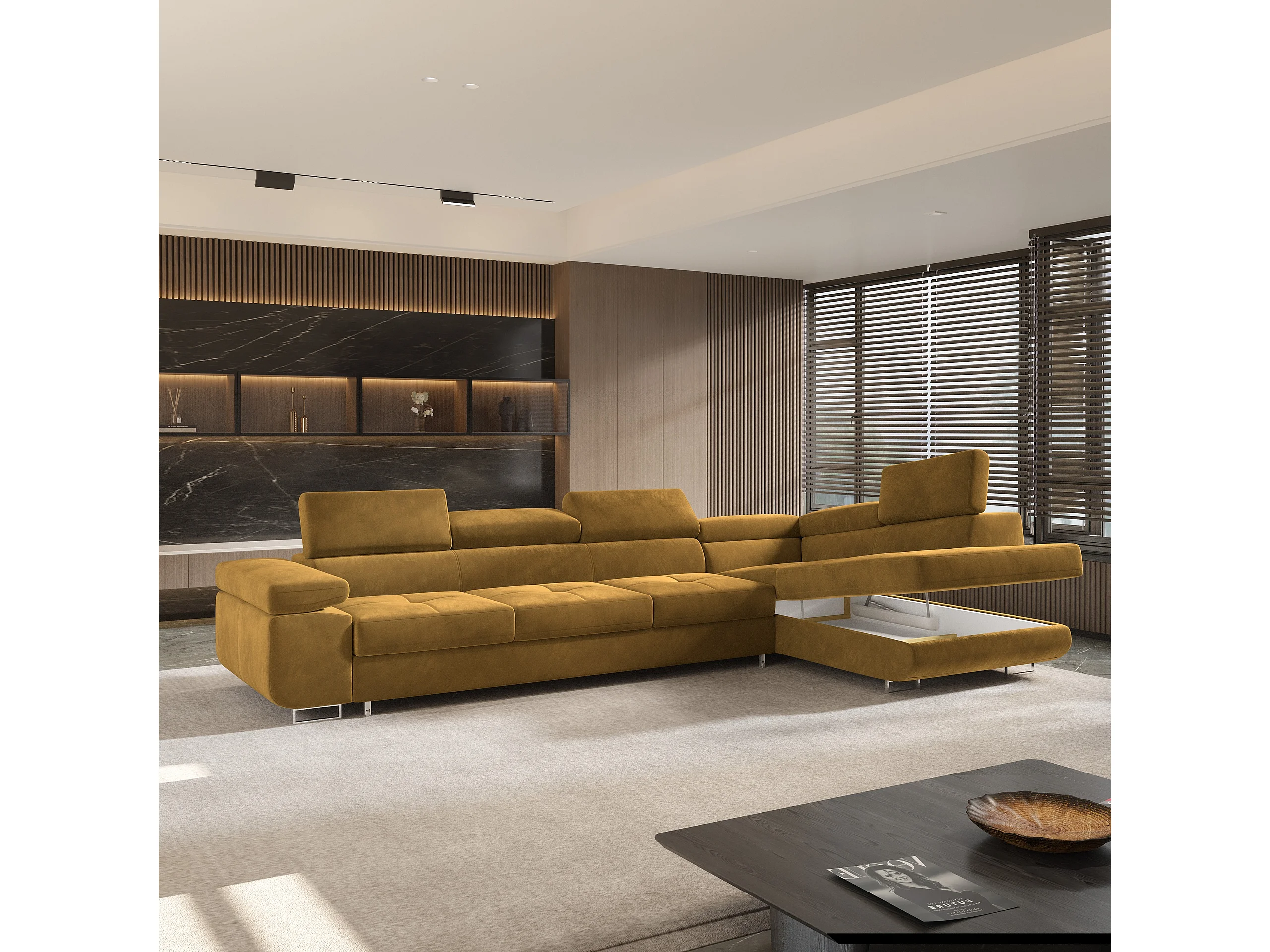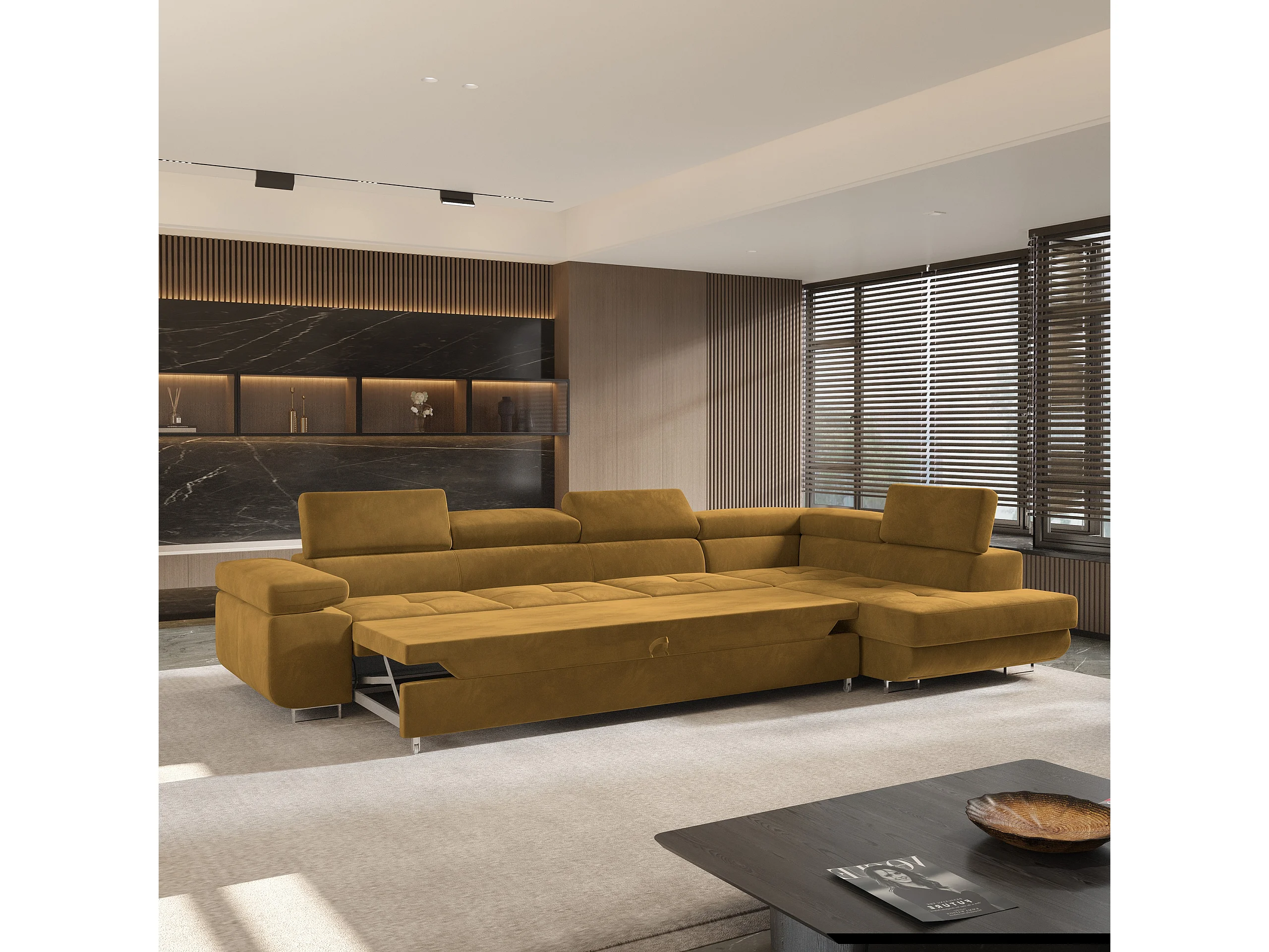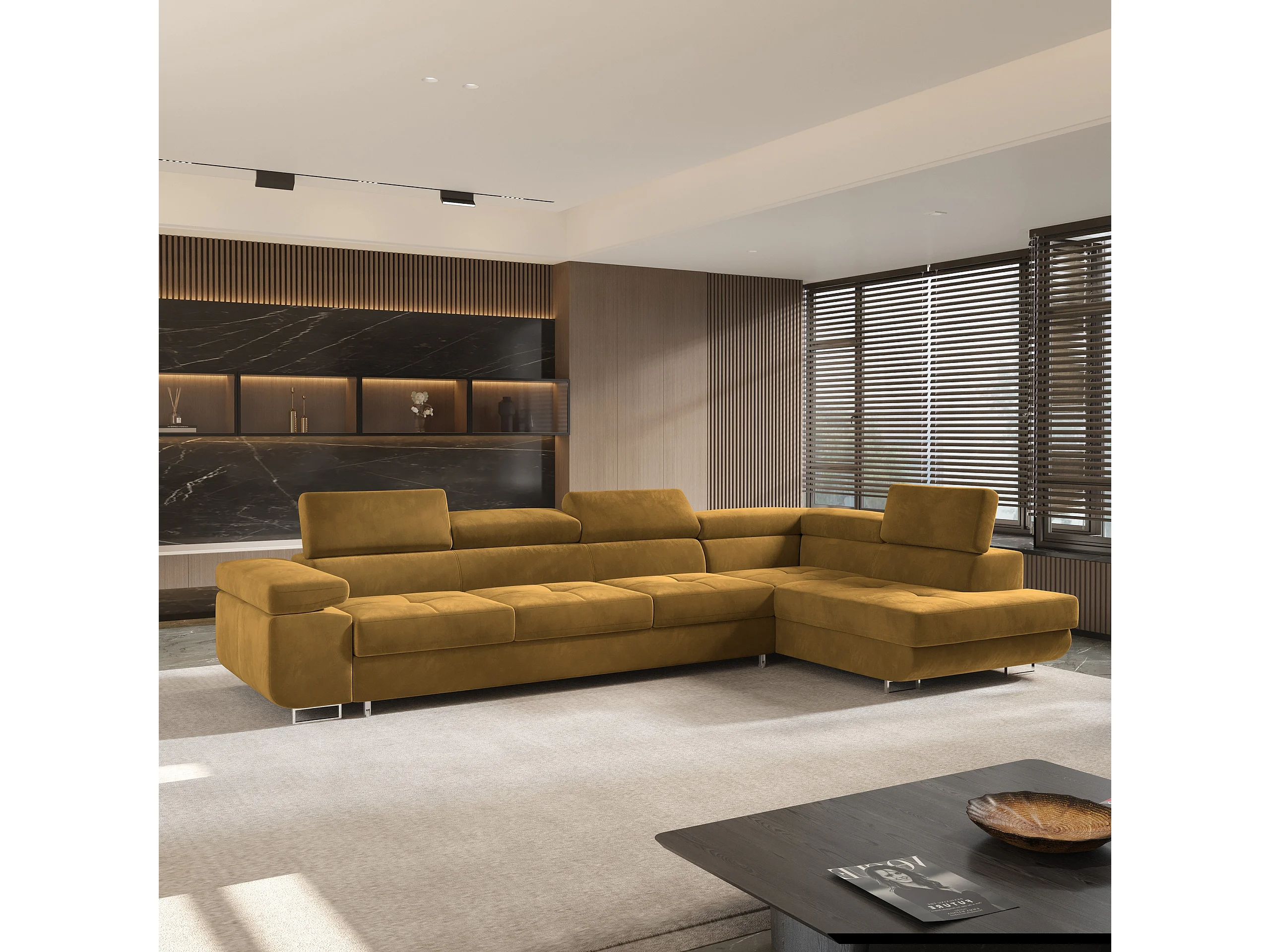 Hoekbank VICENTE van fluweel met slaapfunctie Gelb