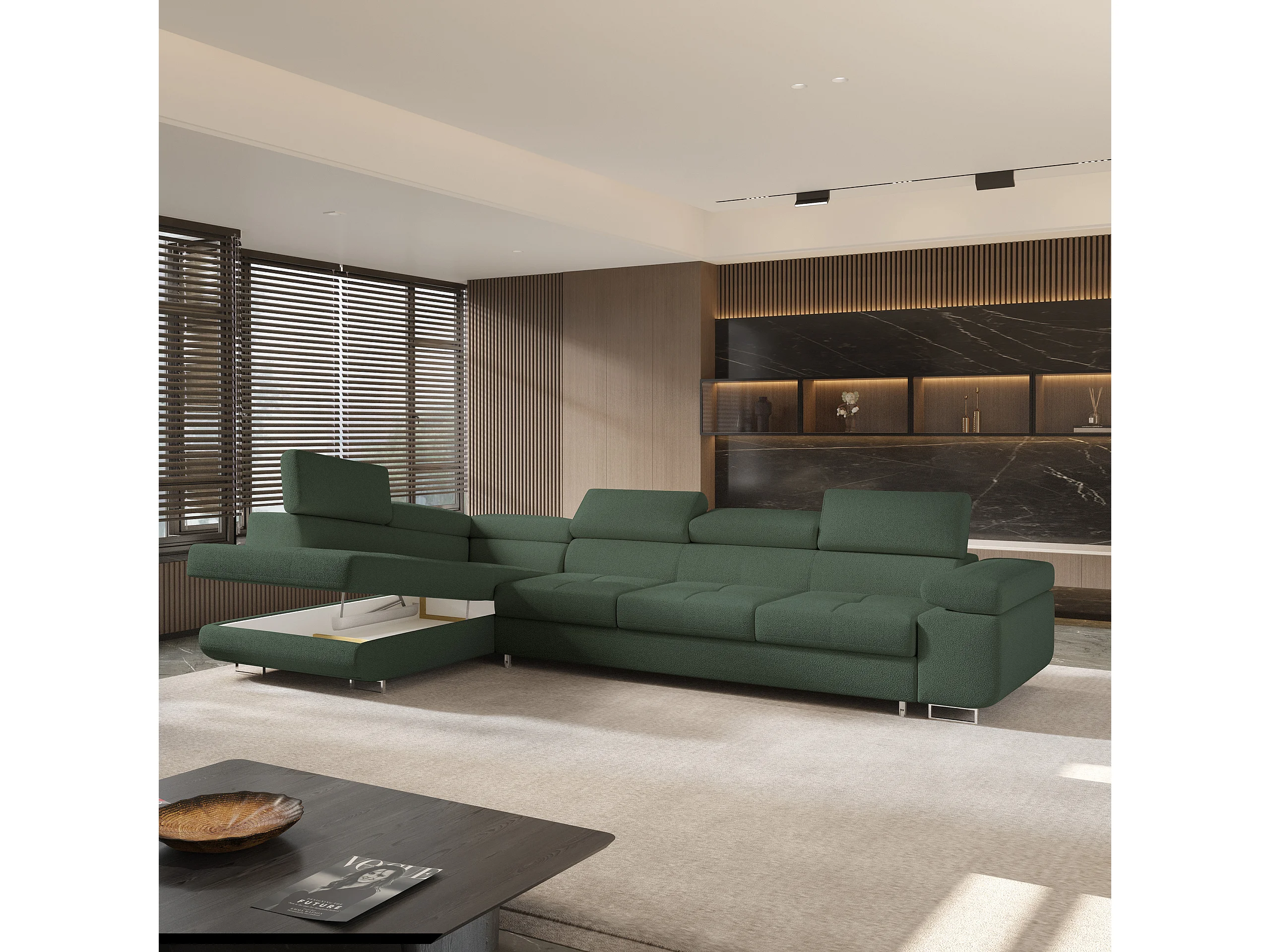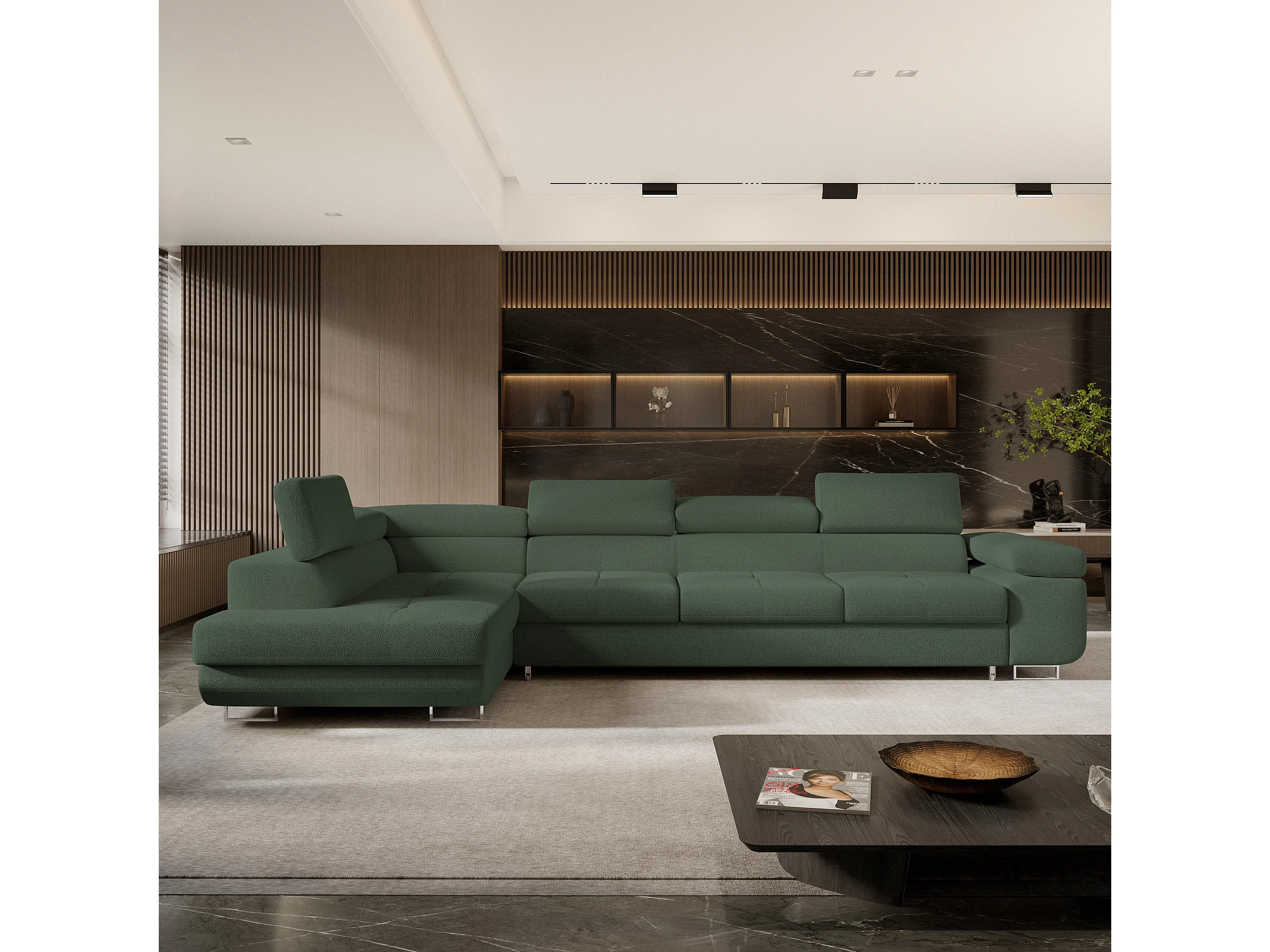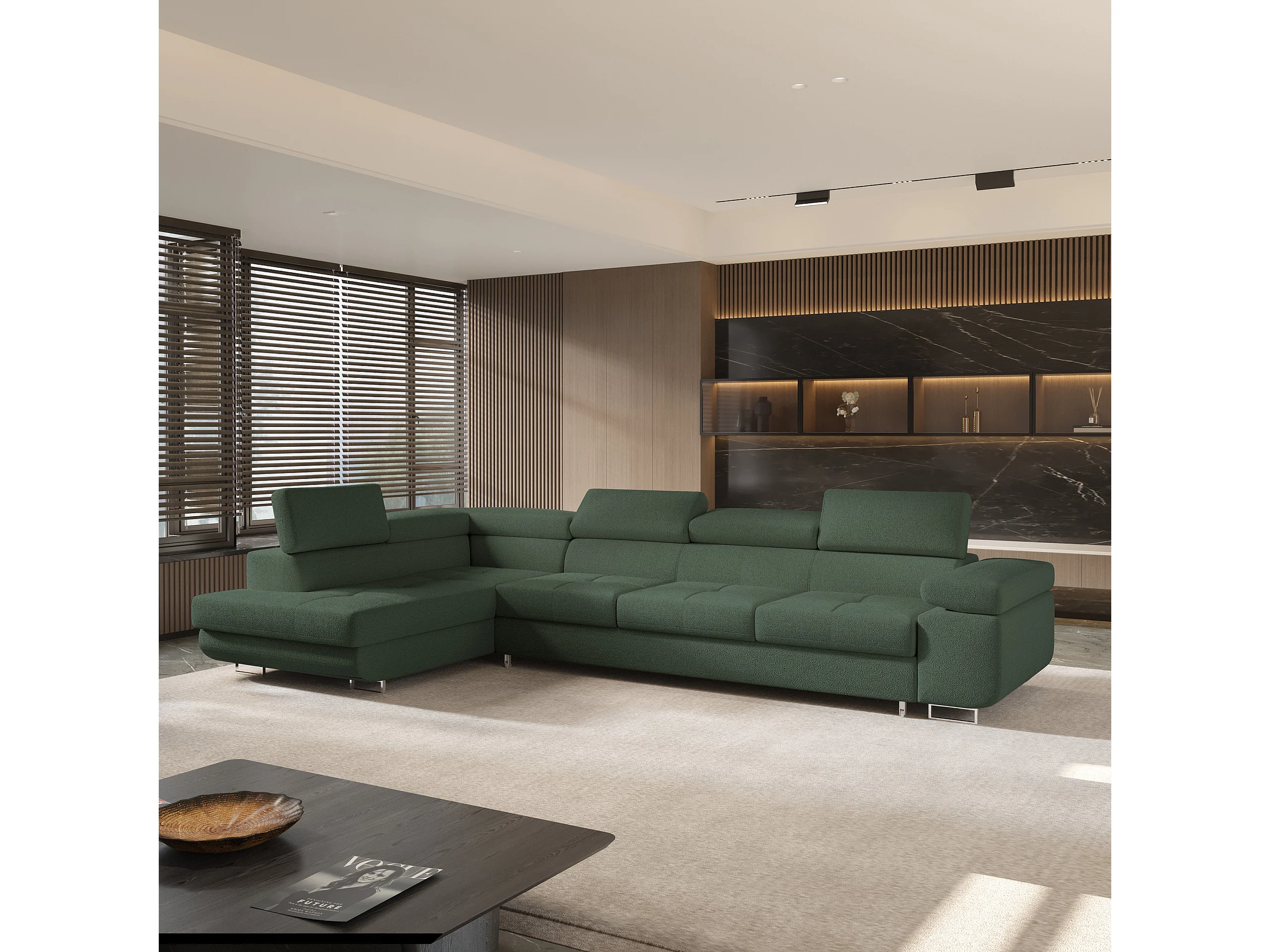 Hoekbank VICENTE van fluweel met slaapfunctie Grün