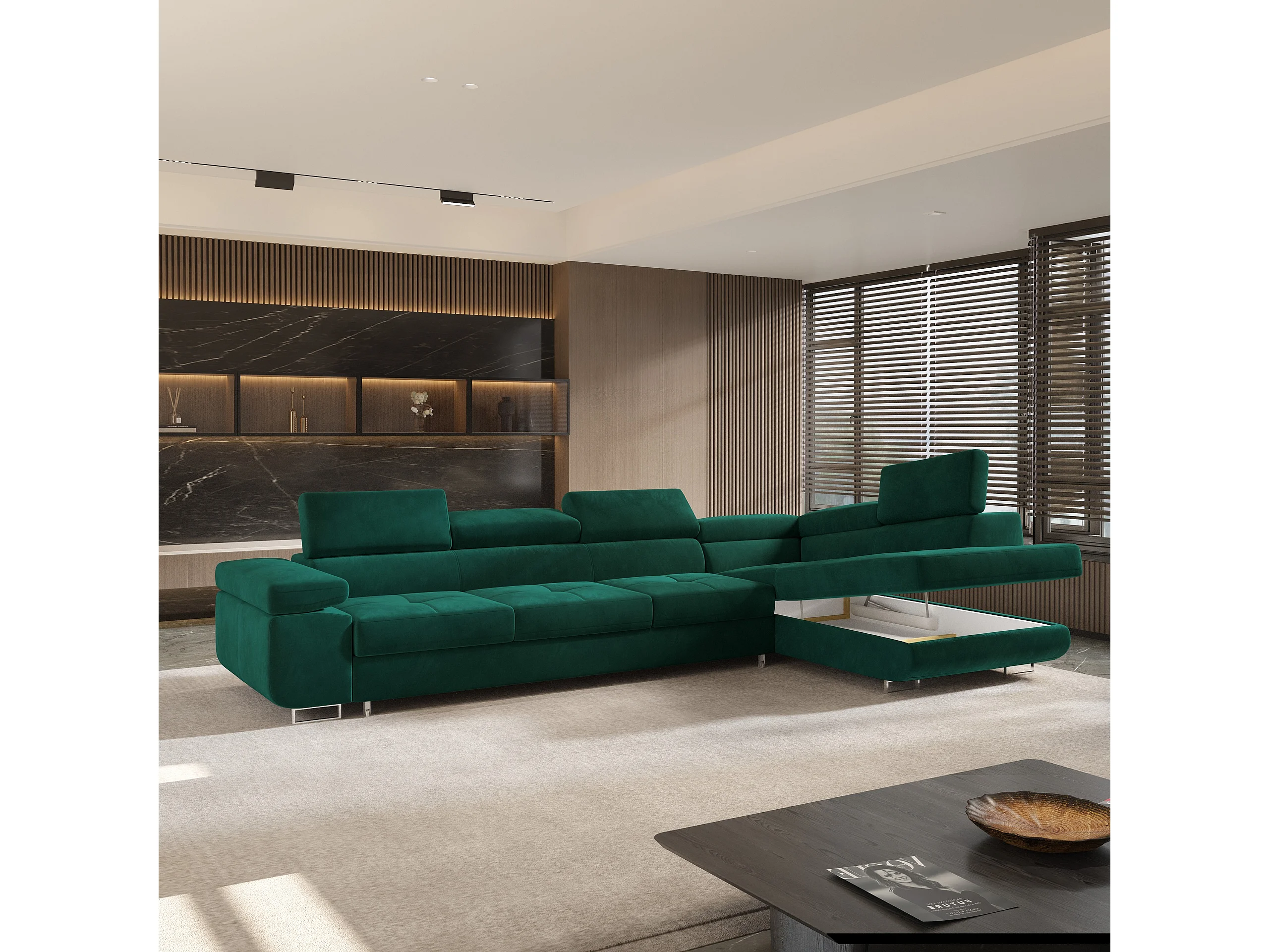 Hoekbank VICENTE van fluweel met slaapfunctie Grün