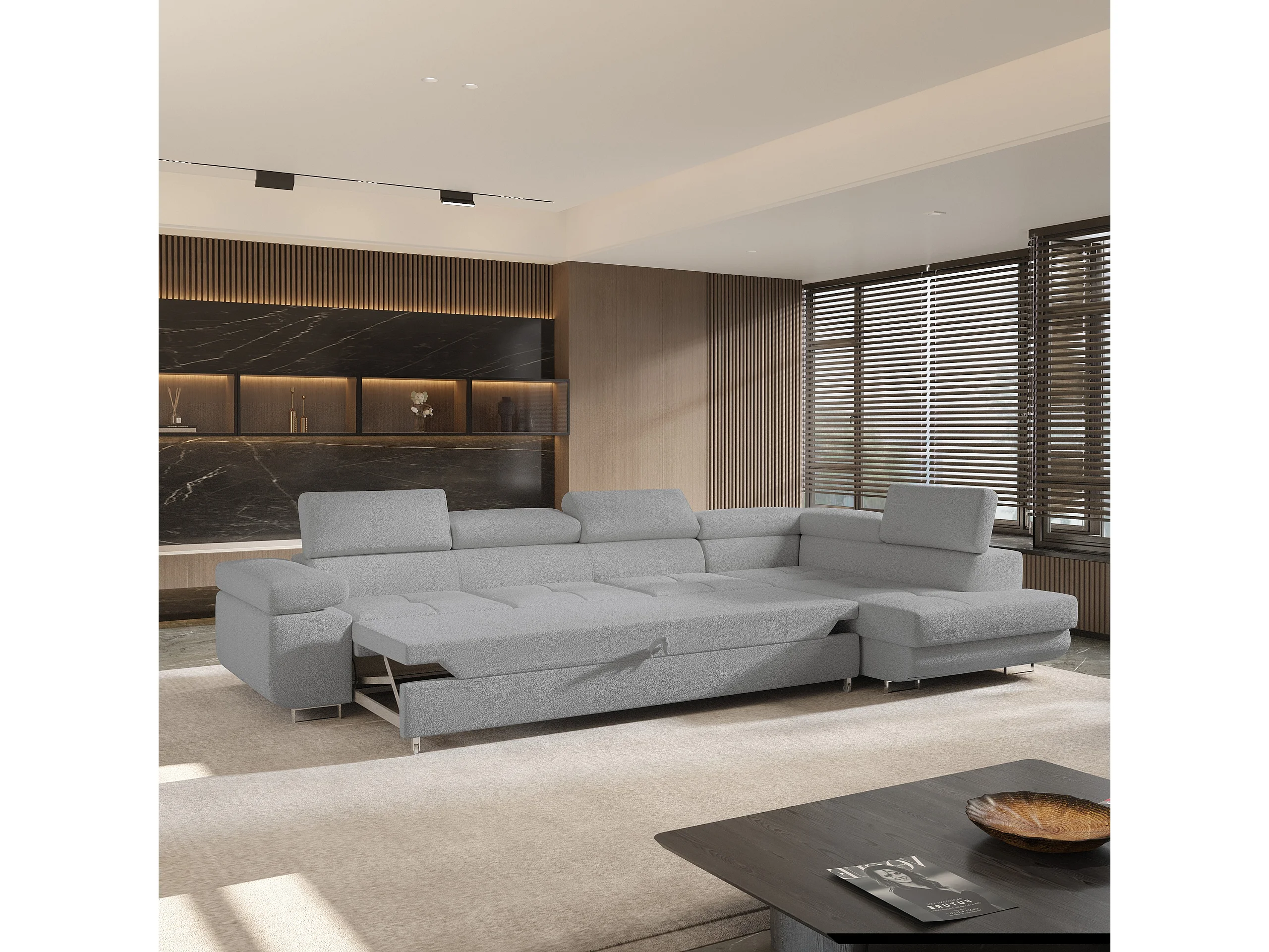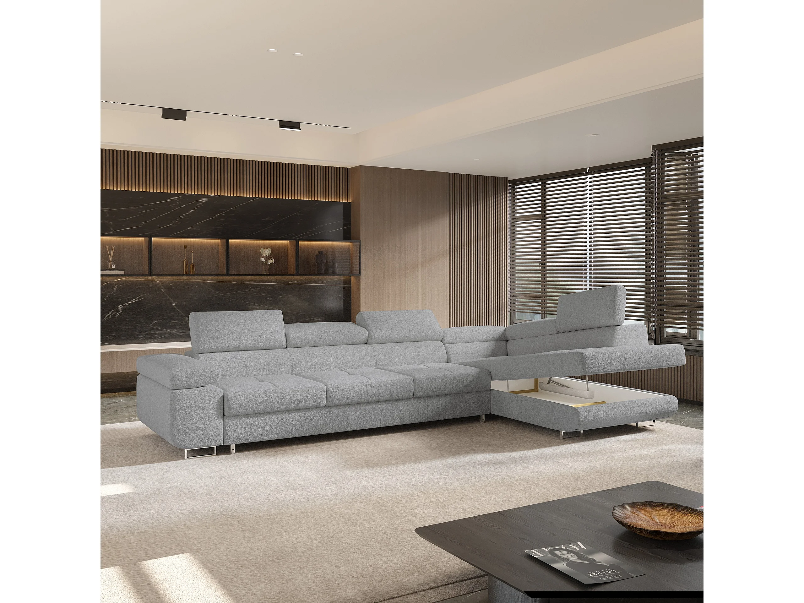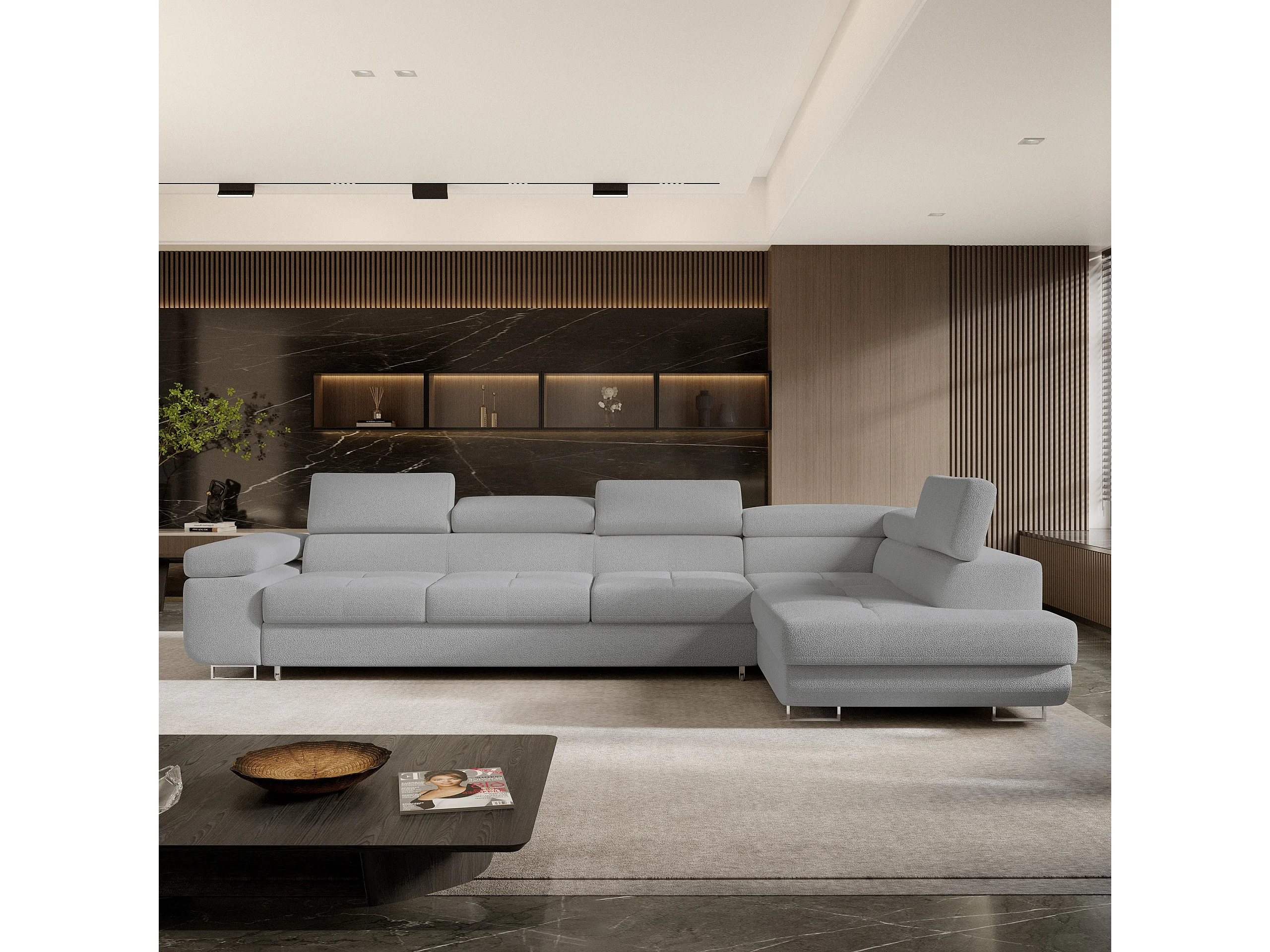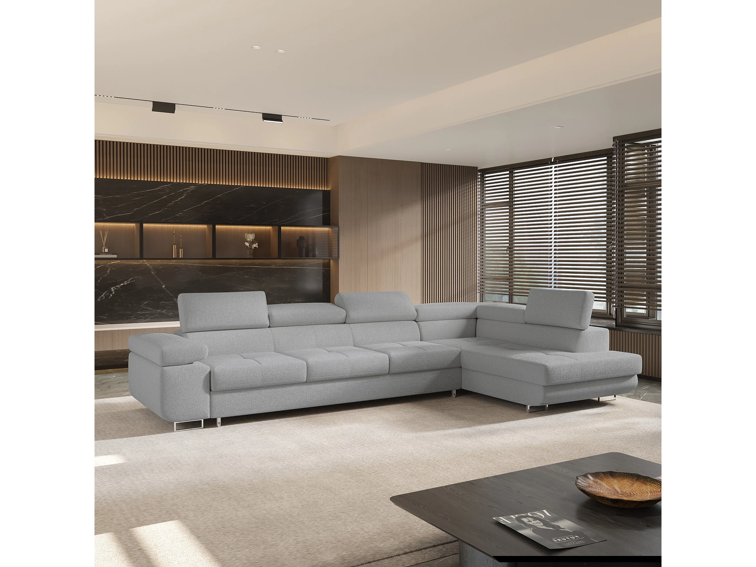 Hoekbank VICENTE van fluweel met slaapfunctie Hellgrau