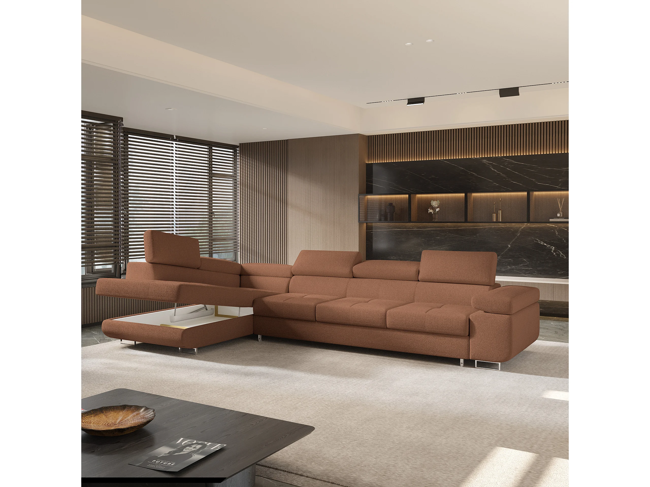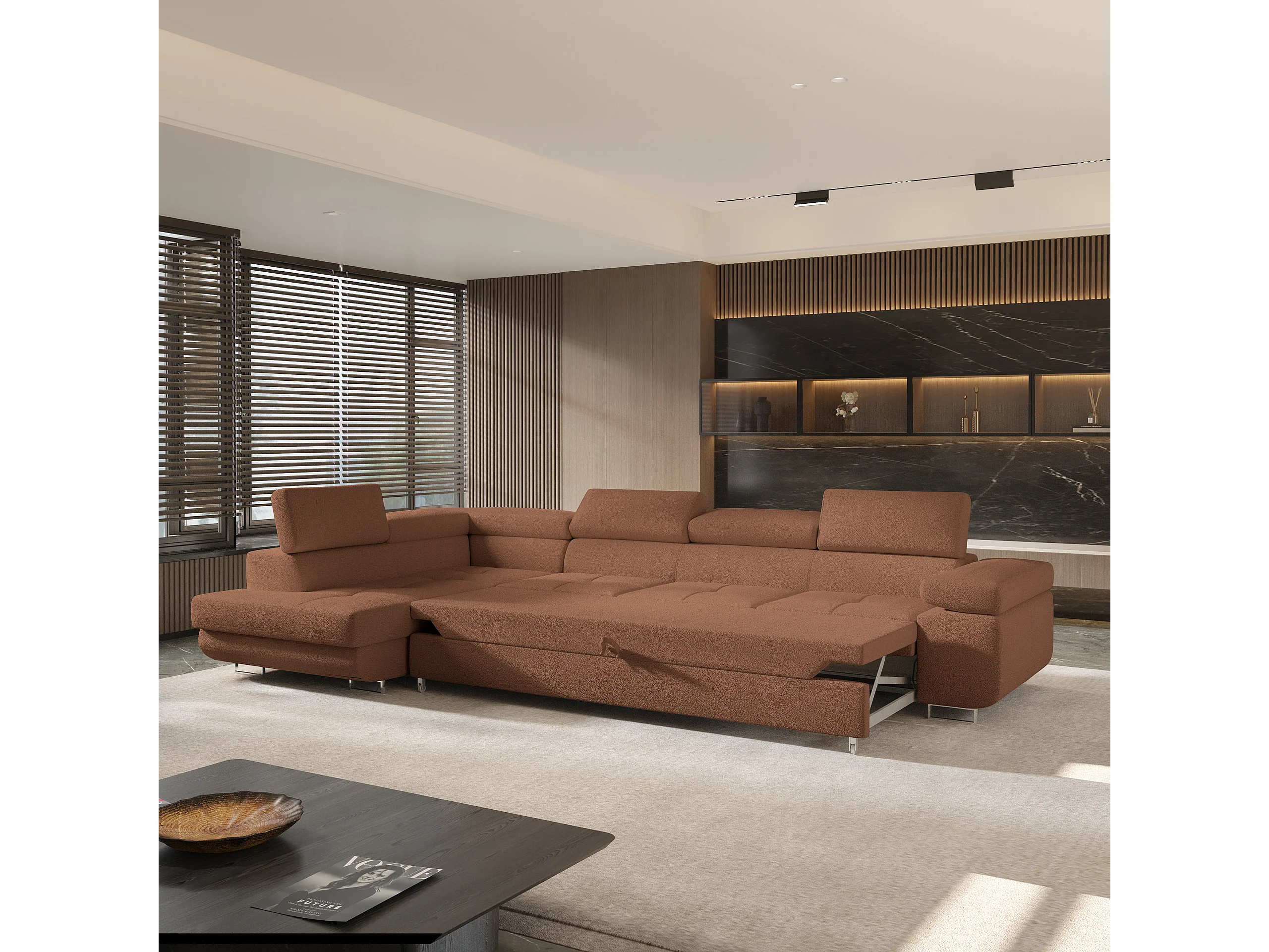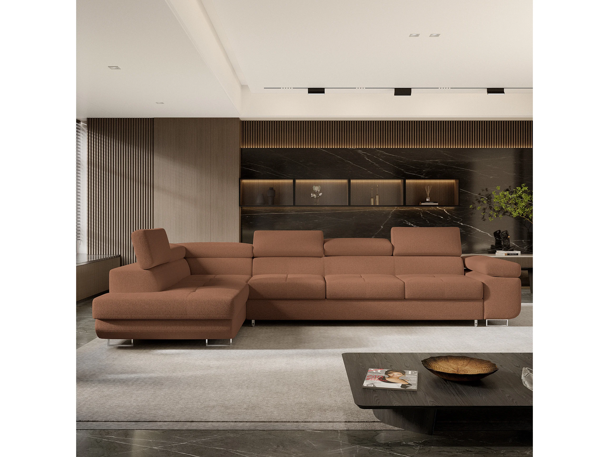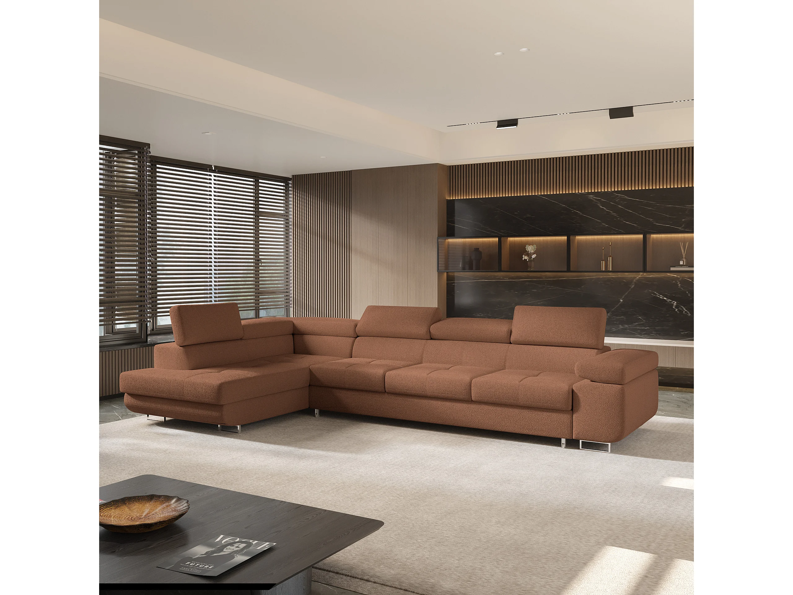 Hoekbank VICENTE van fluweel met slaapfunctie Orange