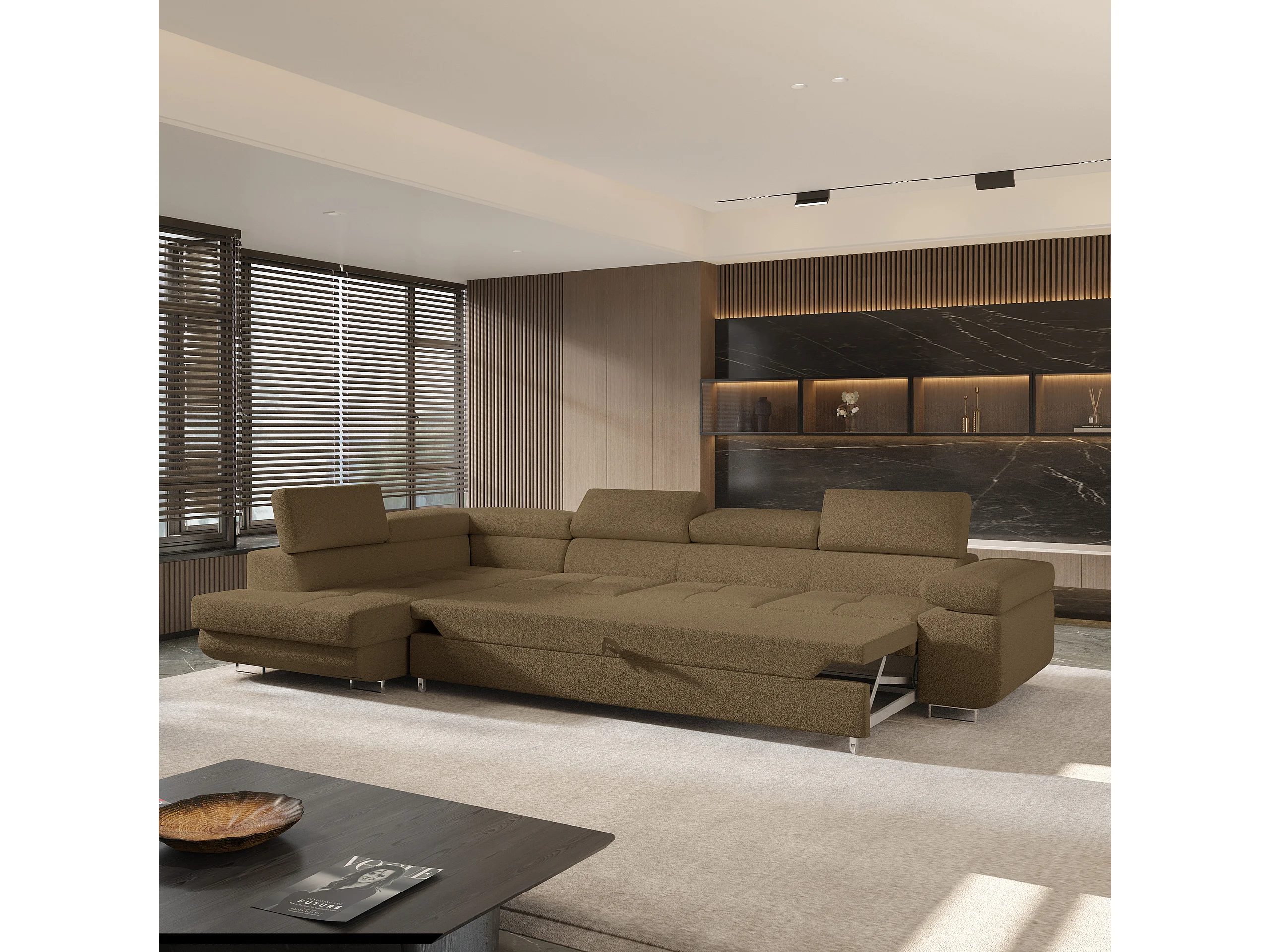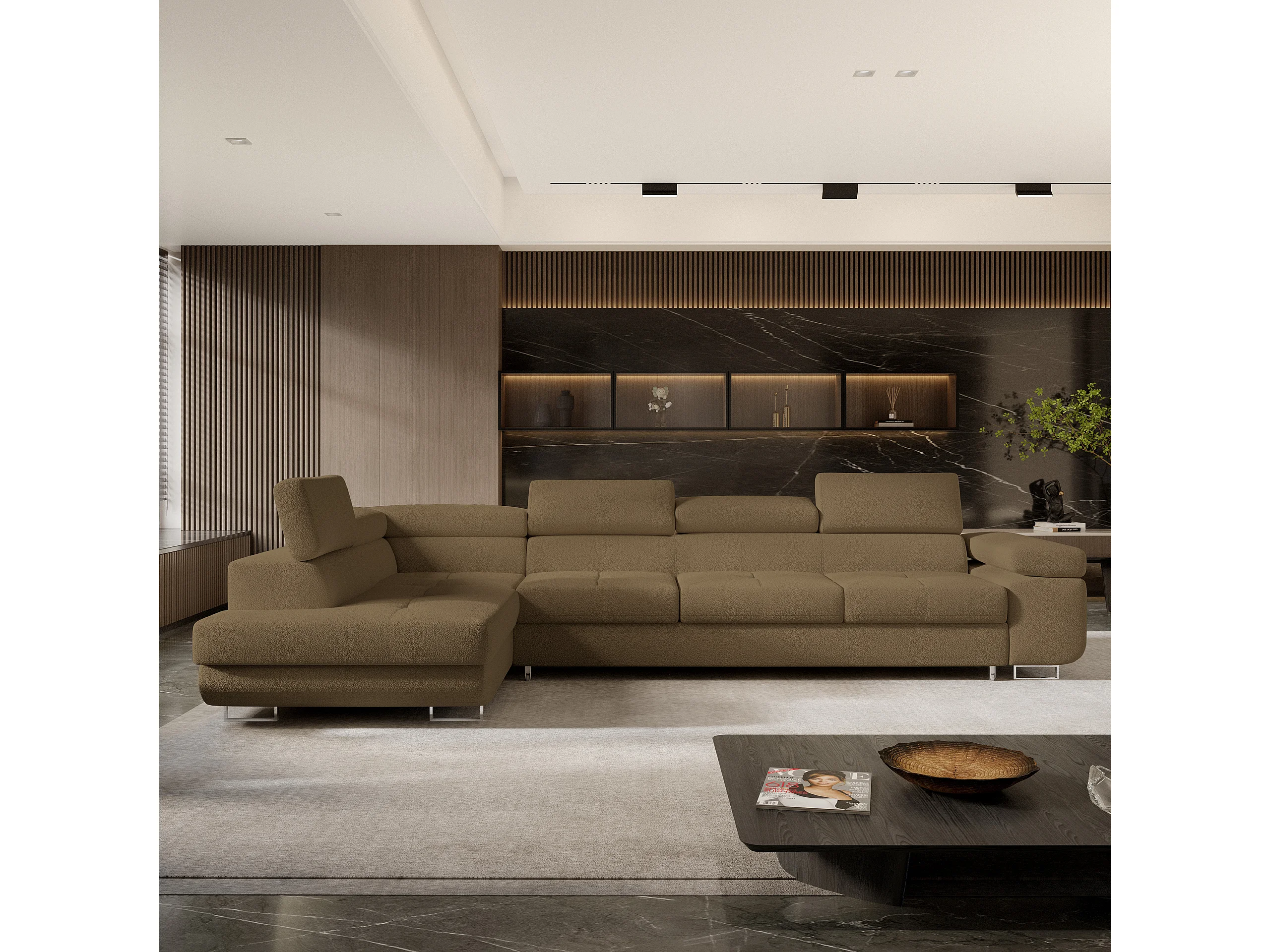 Hoekbank VICENTE van fluweel met slaapfunctie Orange