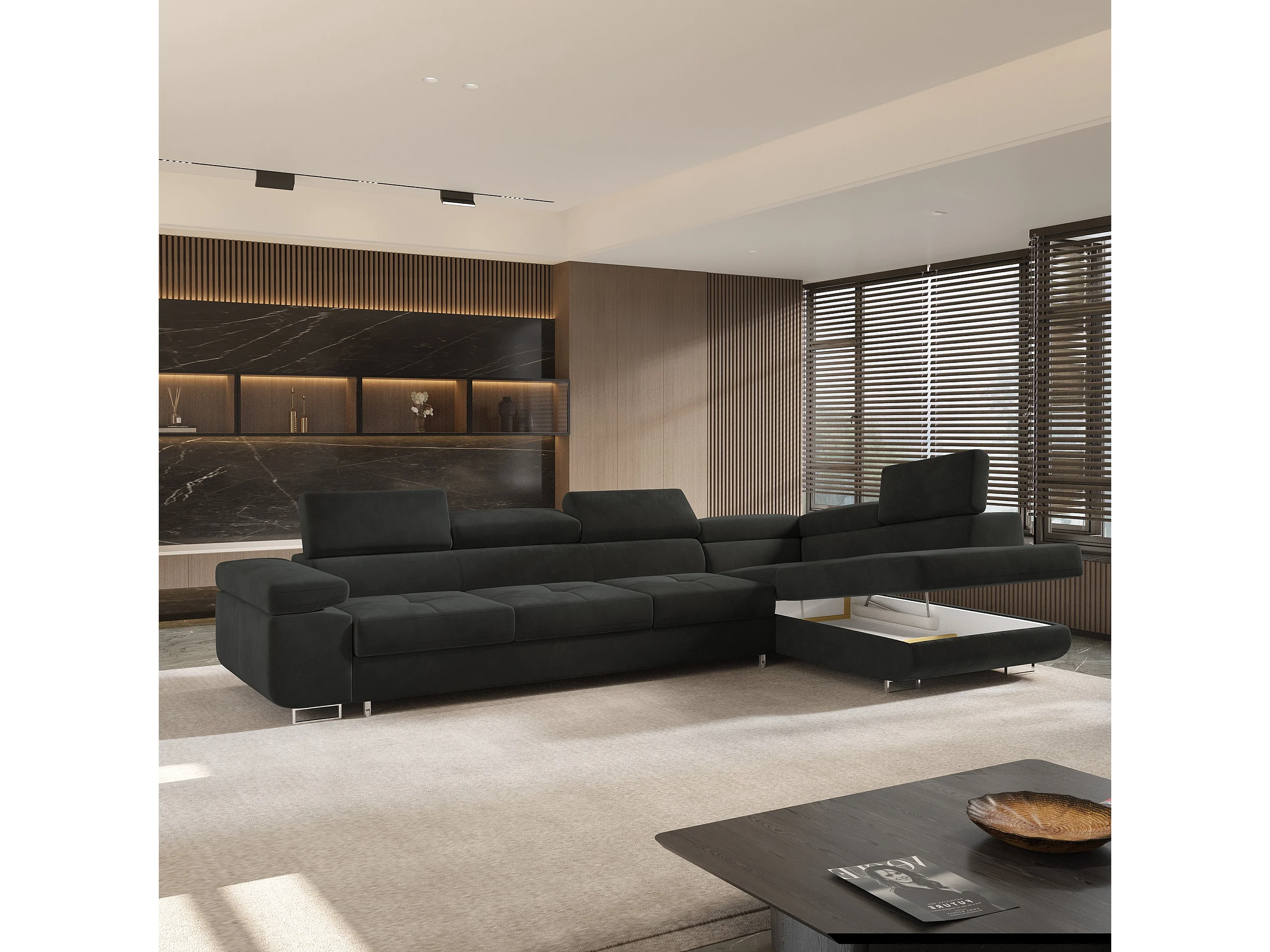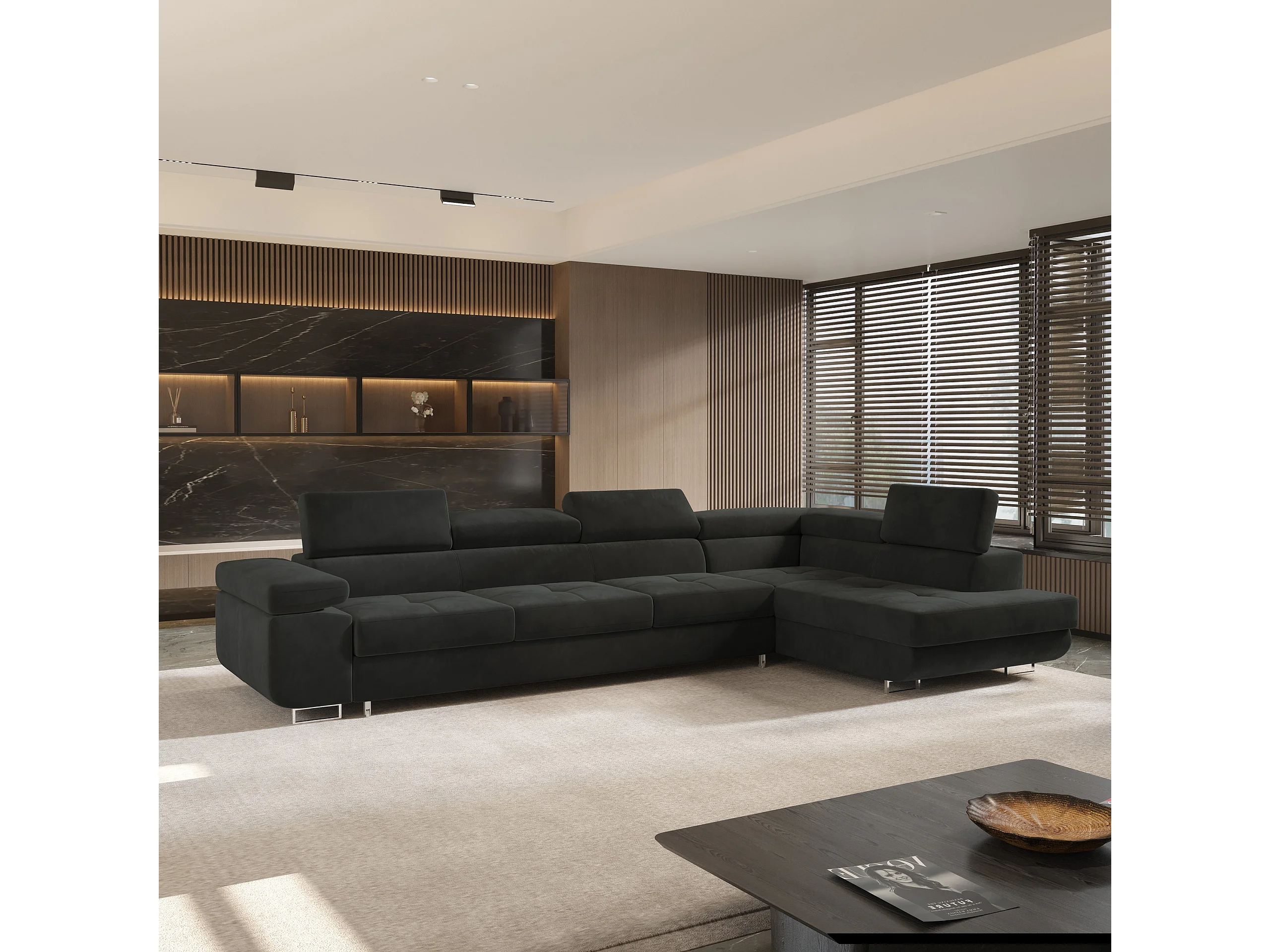 Hoekbank VICENTE van fluweel met slaapfunctie Schwarz
