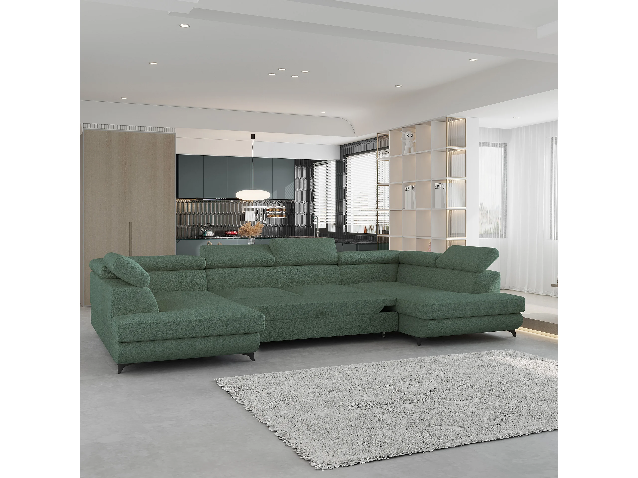 Hoekbank VINTESSA van fluweel met slaapfunctie Grün