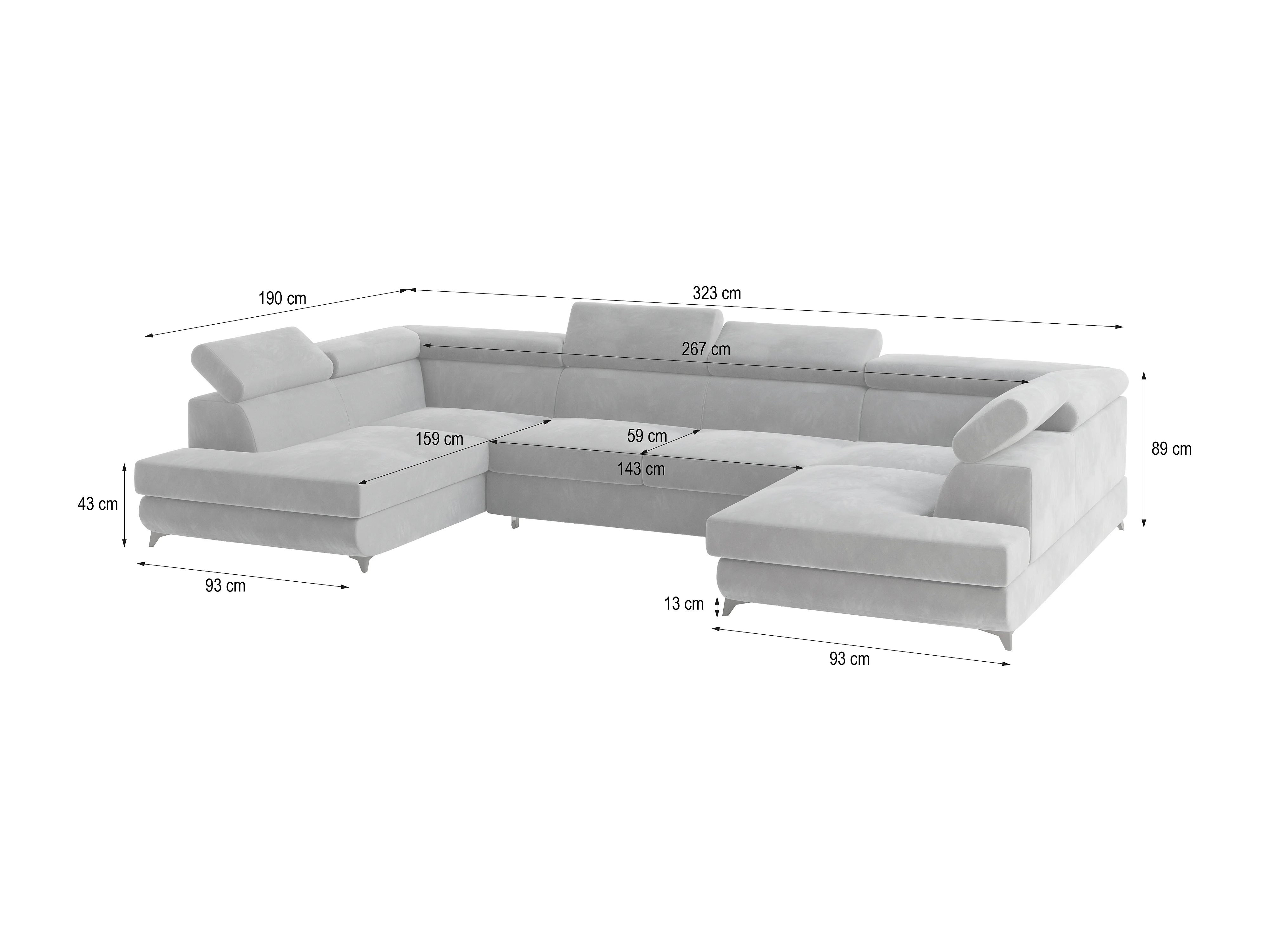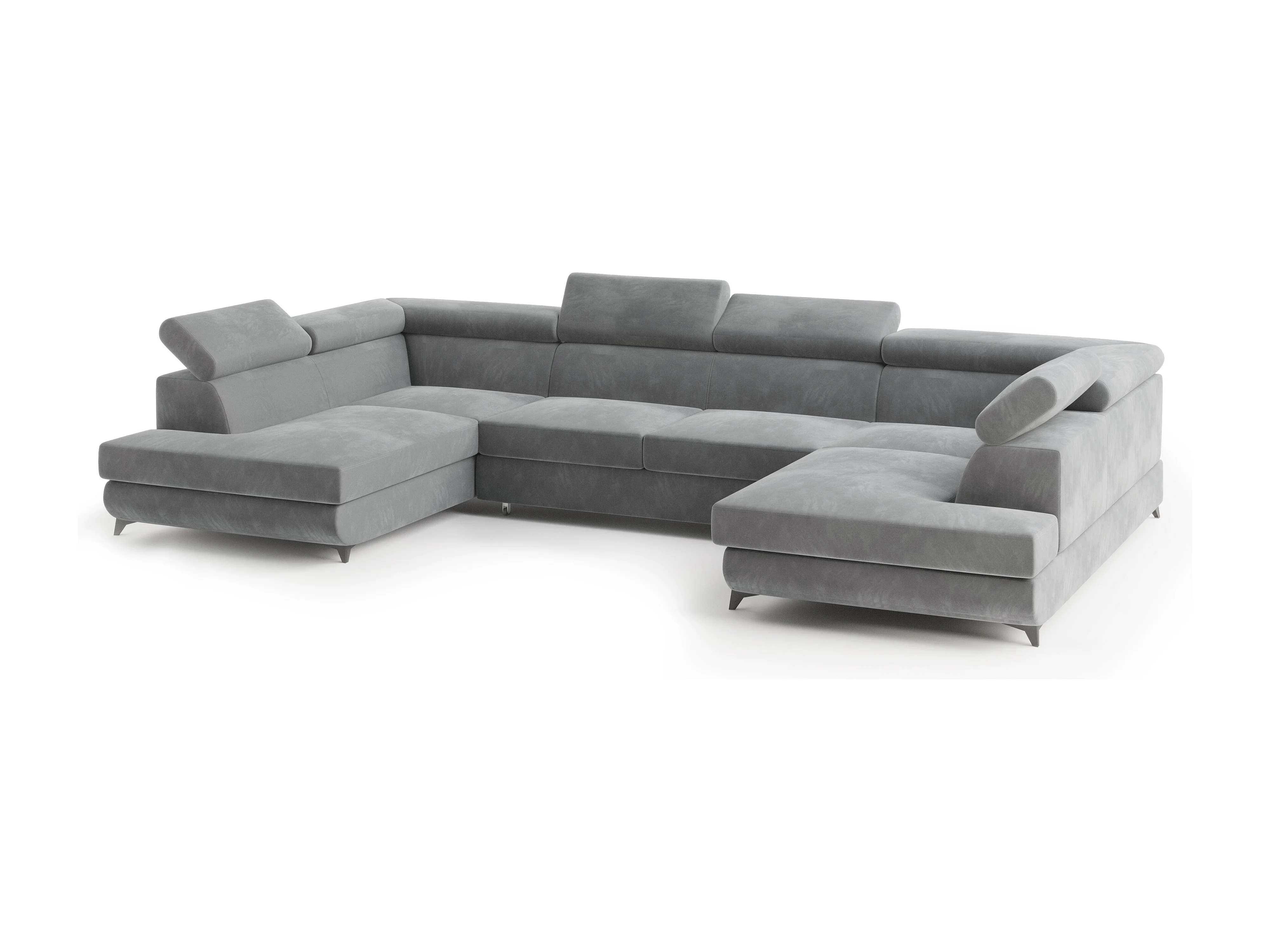 Hoekbank VINTESSA van fluweel met slaapfunctie Hellgrau