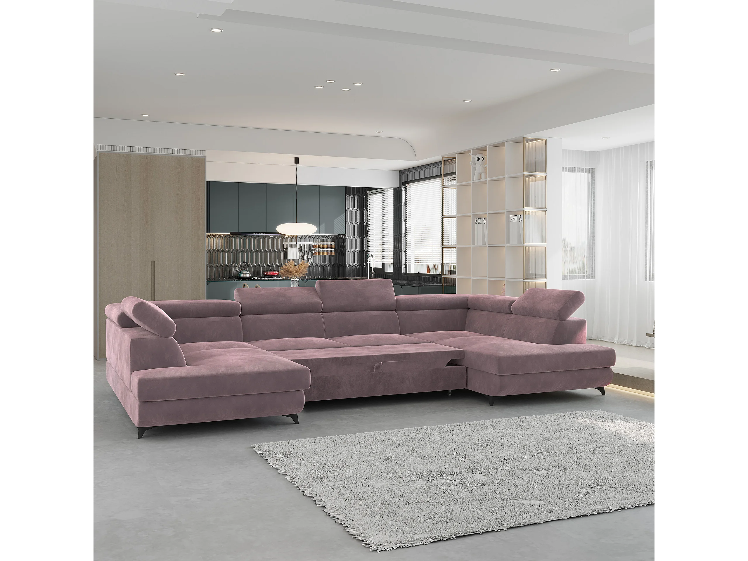Hoekbank VINTESSA van fluweel met slaapfunctie Lila