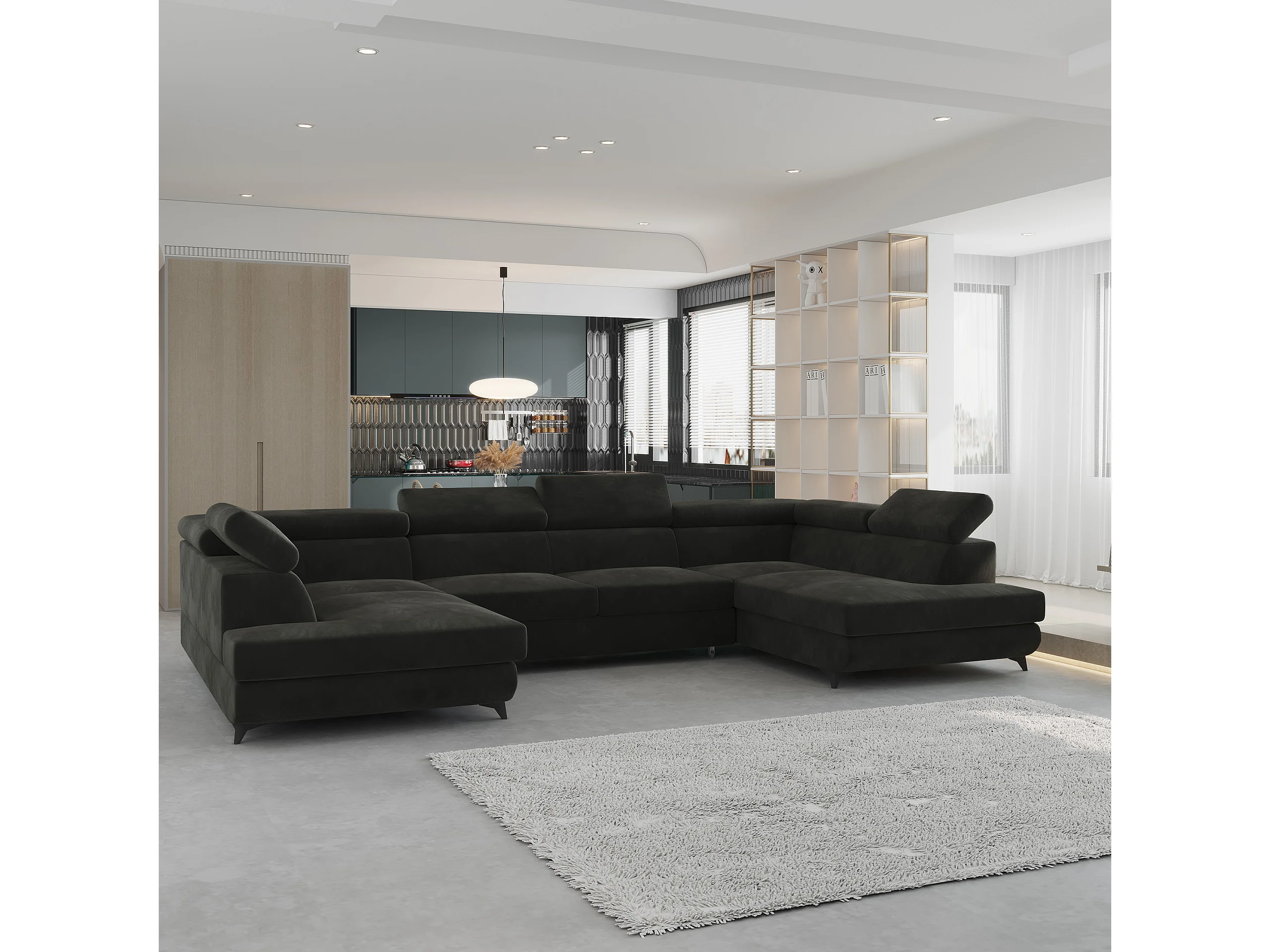 Hoekbank VINTESSA van fluweel met slaapfunctie Schwarz