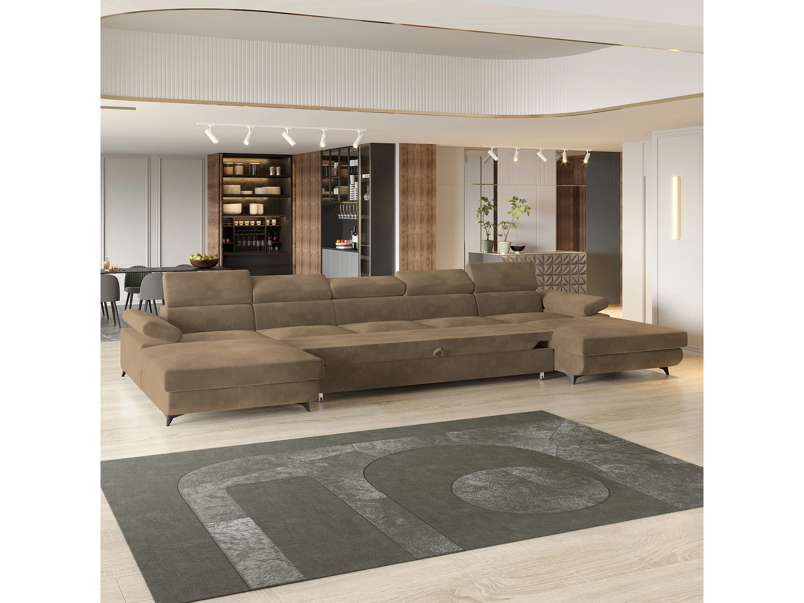 Hoekbank VIVENTE van fluweel met slaapfunctie Beige