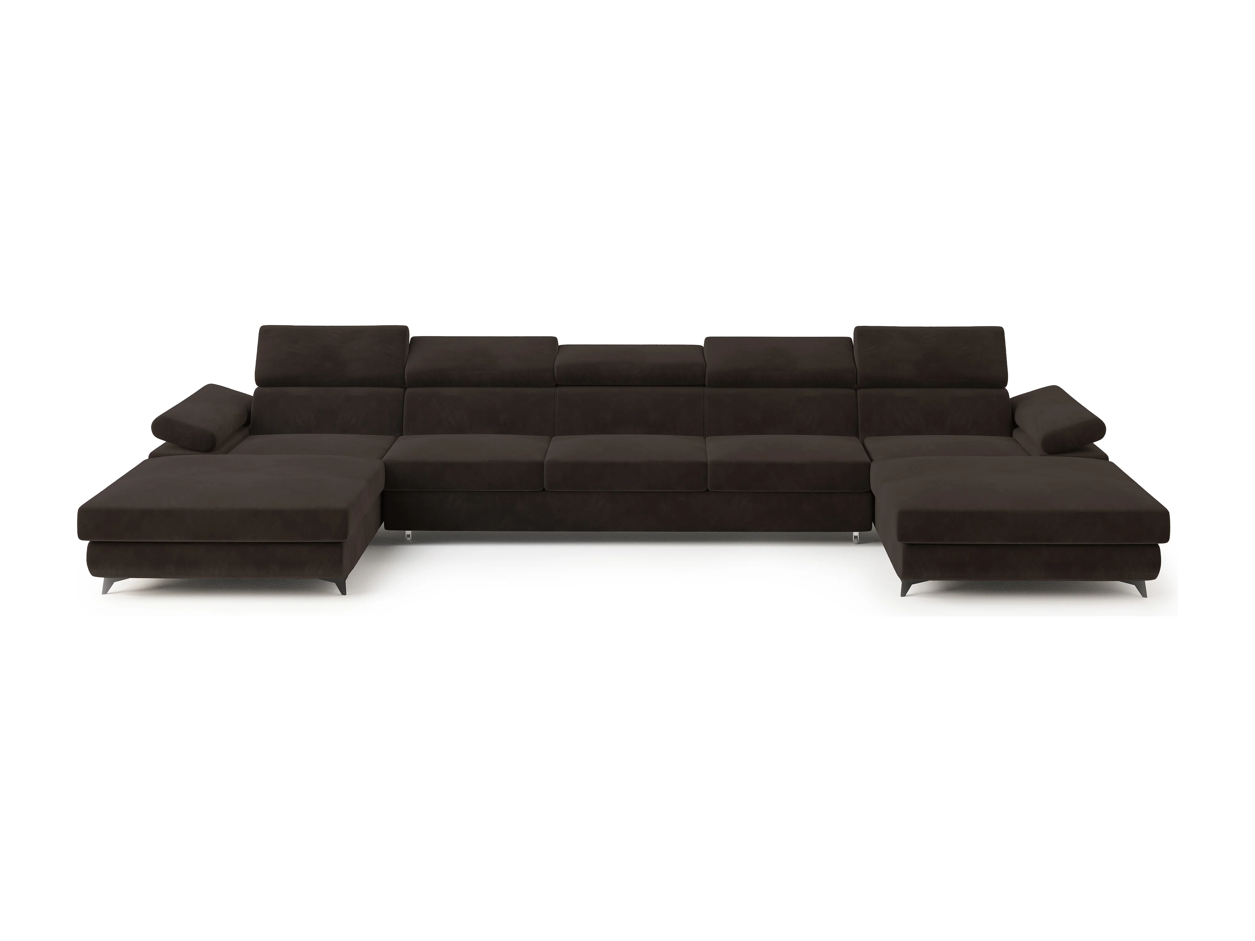 Hoekbank VIVENTE van fluweel met slaapfunctie Braun