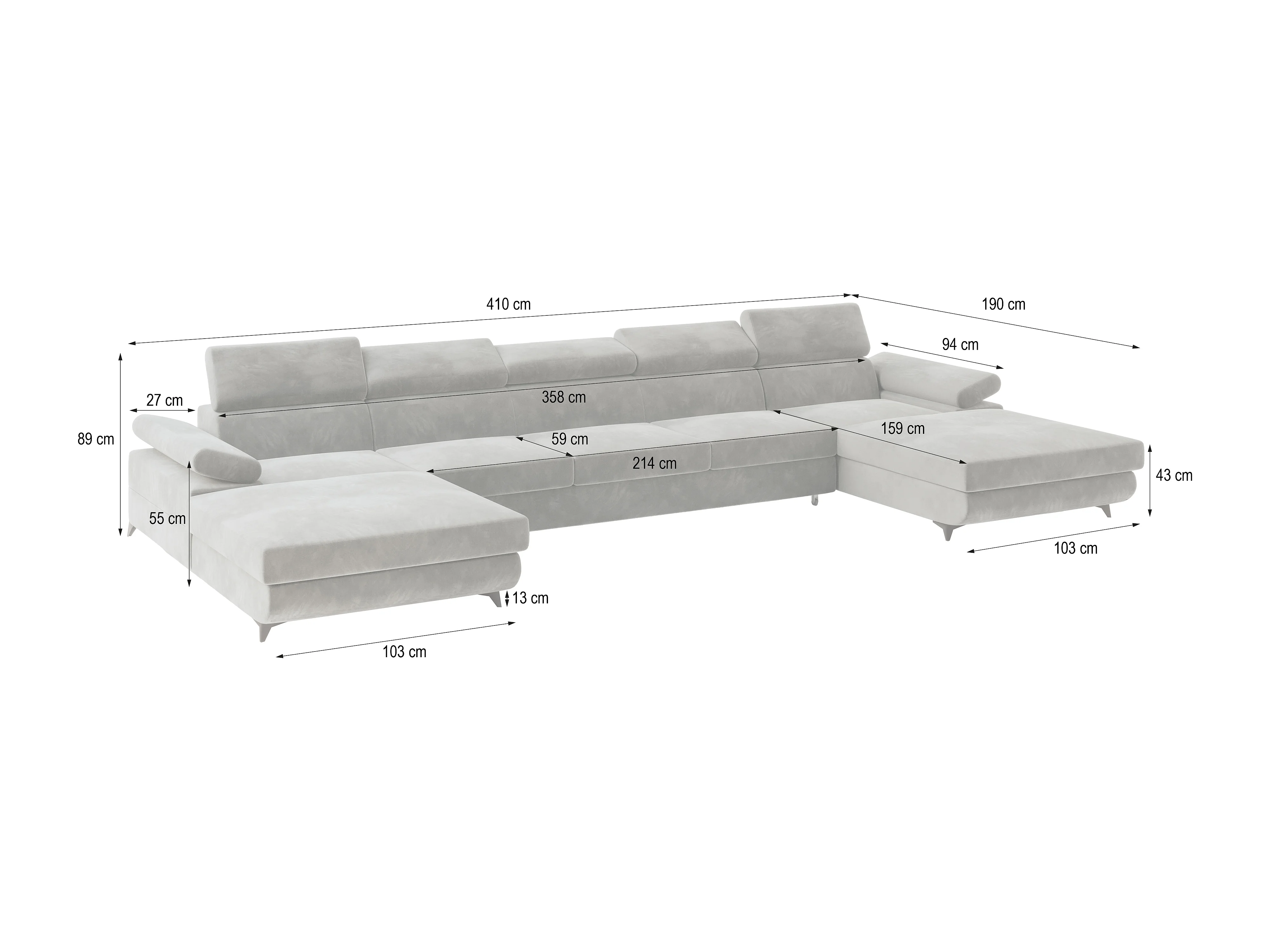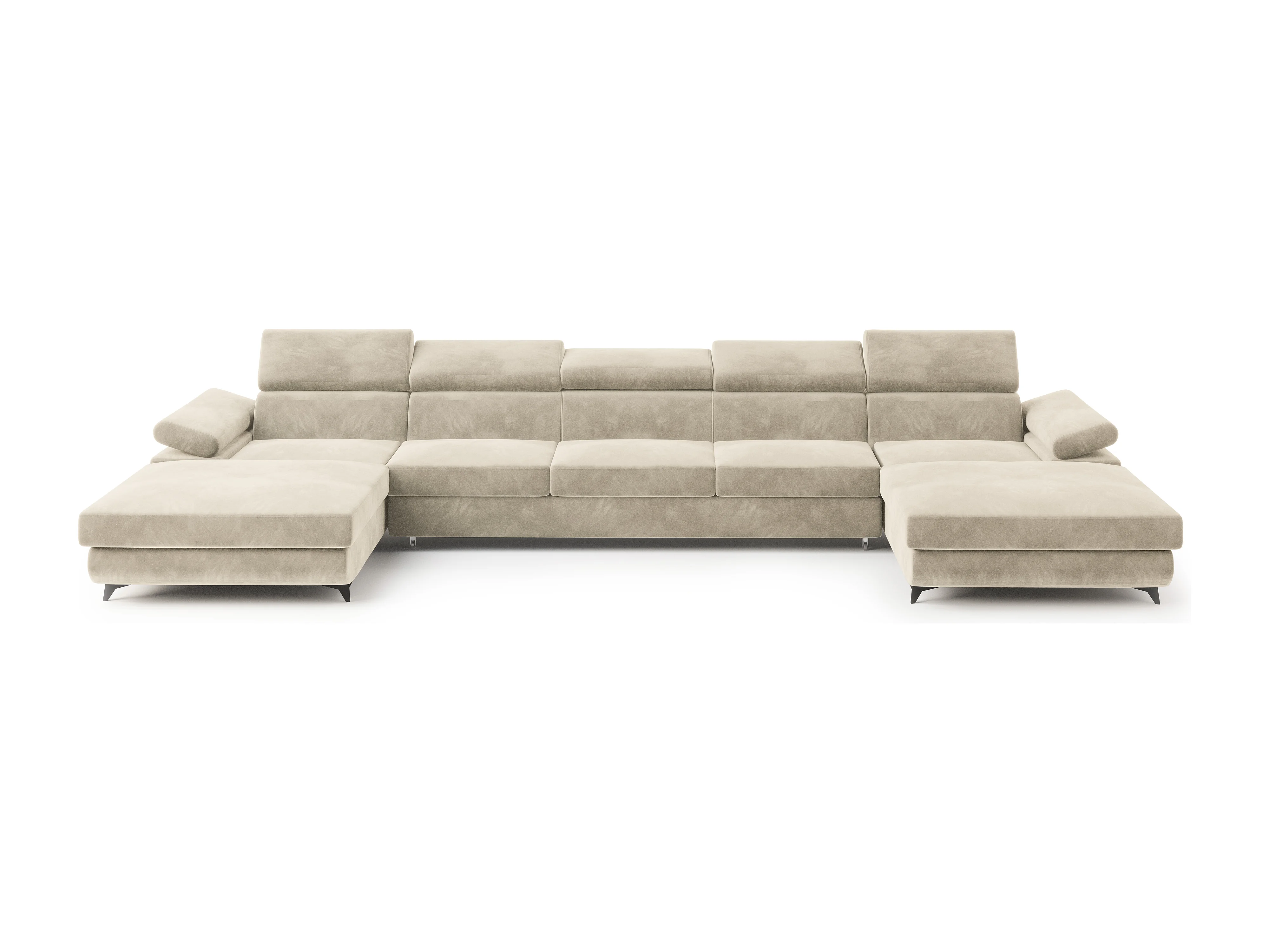 Hoekbank VIVENTE van fluweel met slaapfunctie Creme