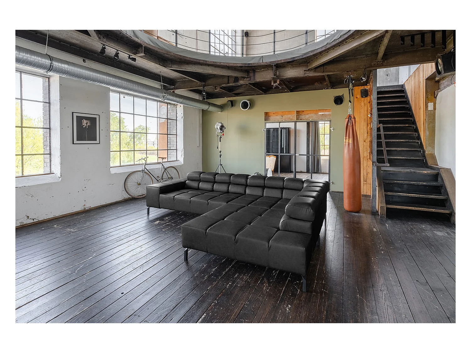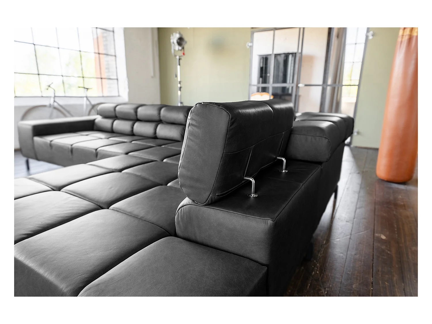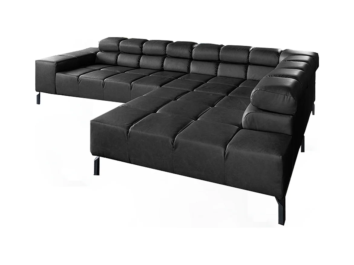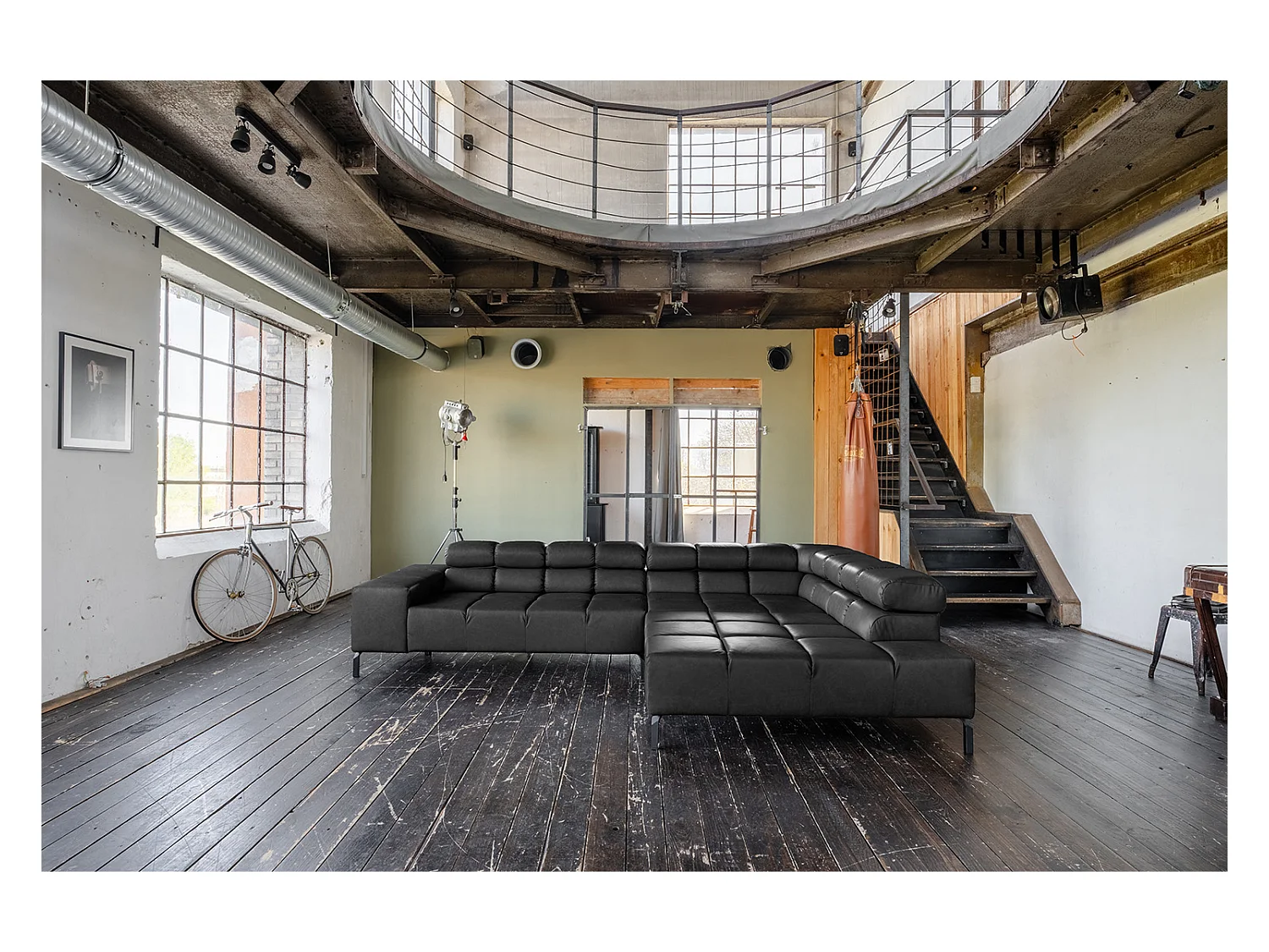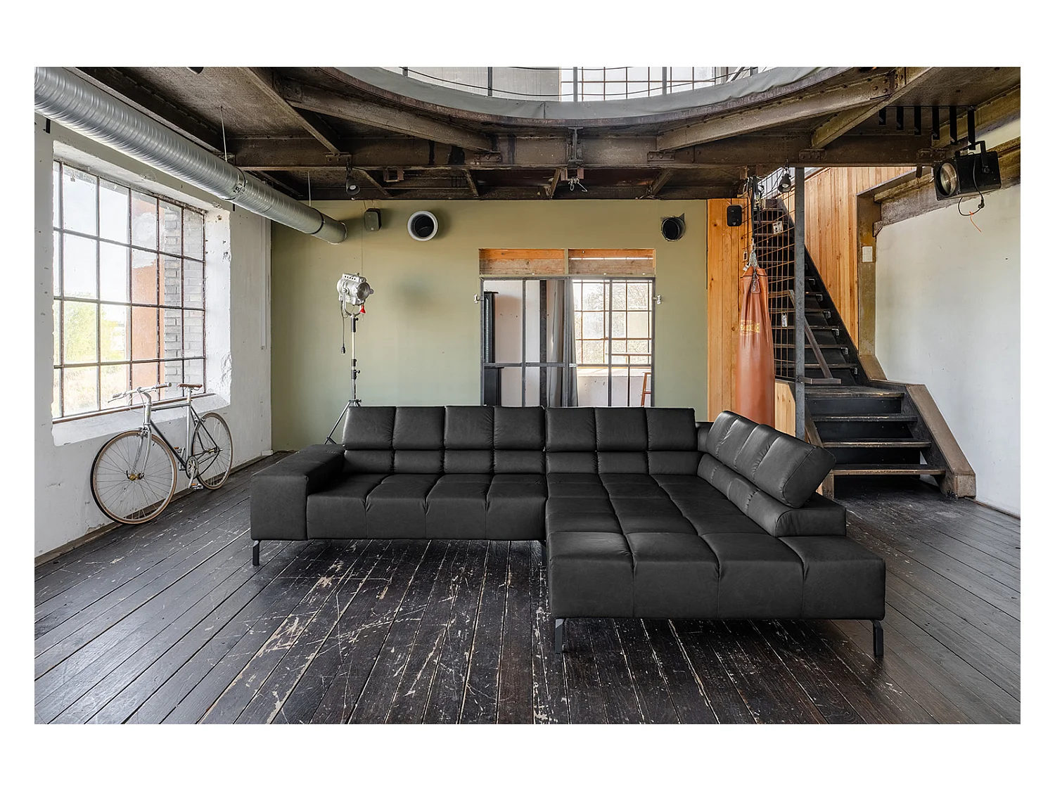 Hoekbank OSLO Leer Zwart 4-zitter Rechterzijde