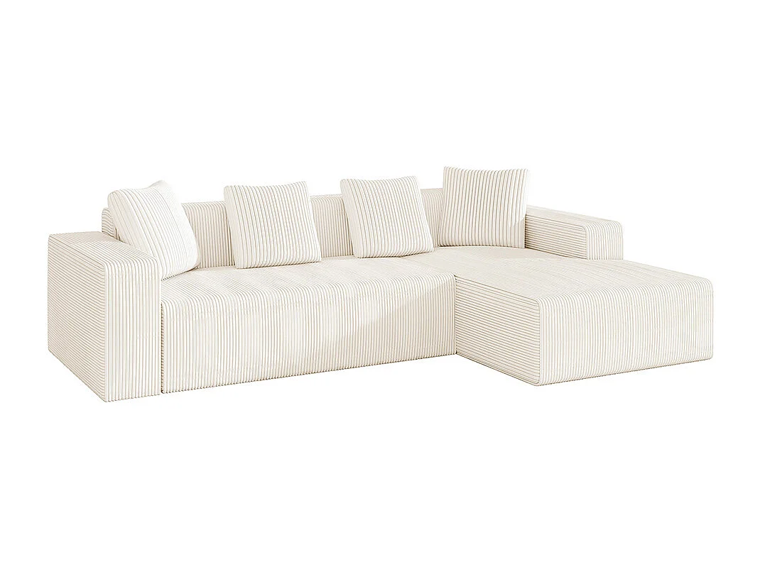 Hoekbankcombinatie Cloud met L-vormige ligstoelen, moderne modulaire bank met diepe zittingen, witte gestoffeerde bank
