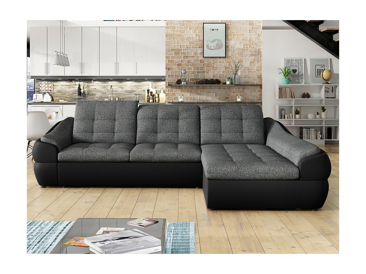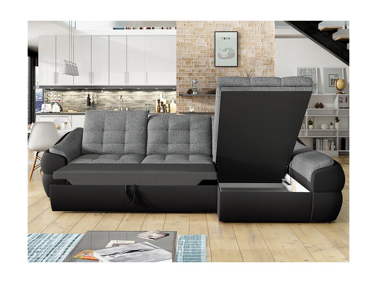 Hoekbedbank van stof en kunstleer FAREZ - Tweekleurig grijs en zwart - Hoek rechts