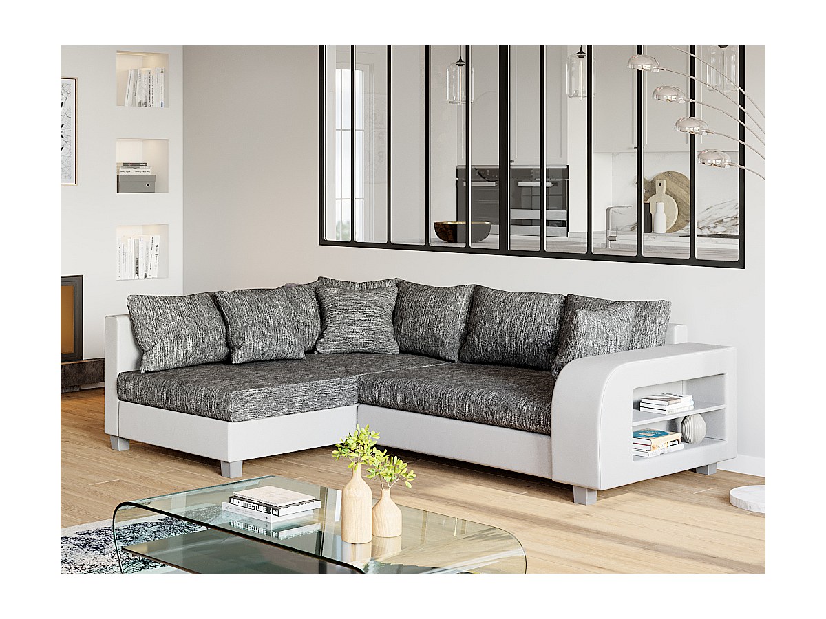 Hoekbedbank van stof en kunstleer KUOPIO - grijs en wit - hoek links