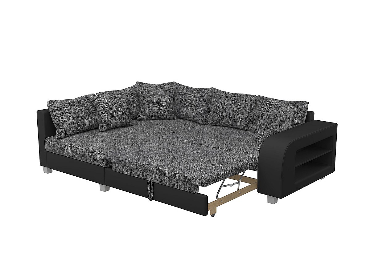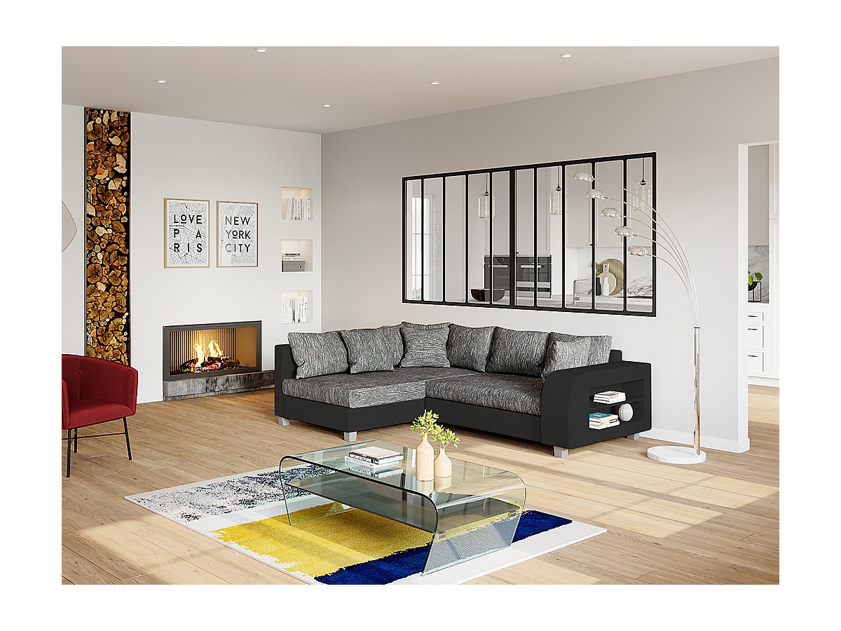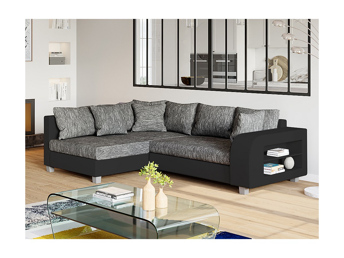 Hoekbedbank van stof en kunstleer KUOPIO - grijs en zwart - hoek links