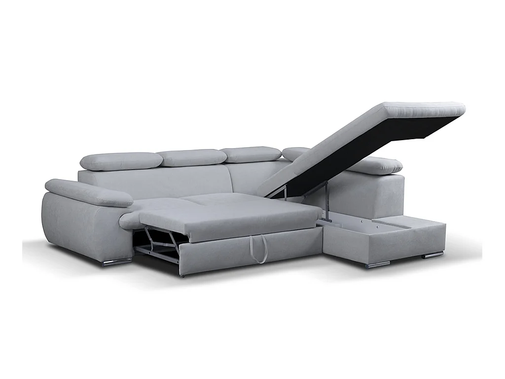Hoekbedbank van stof met opbergruimte FABIEN - Licht grijs - Hoek rechts