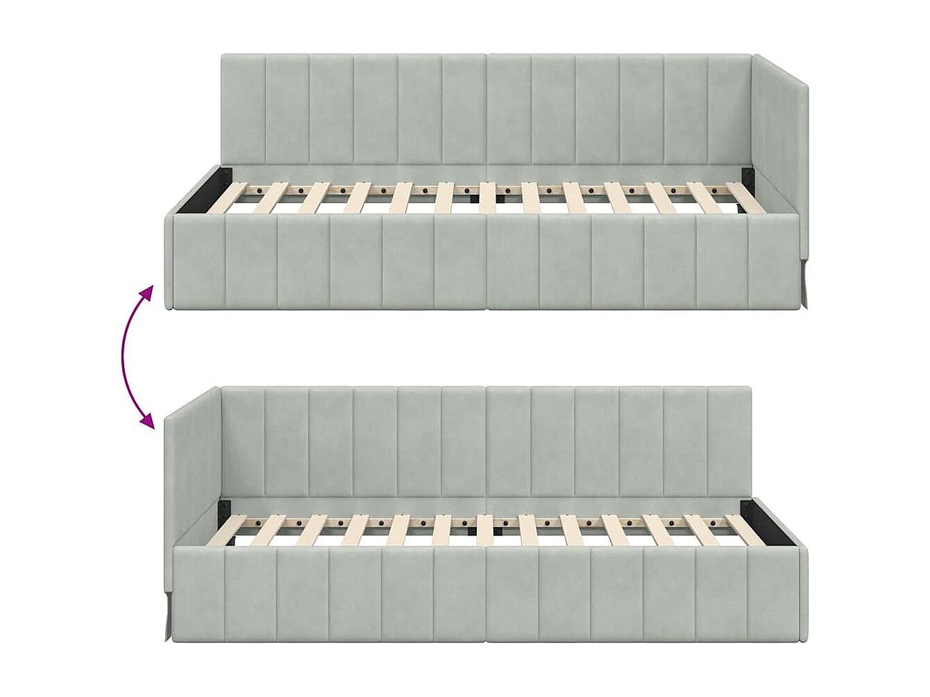 Hoekbedframe Lichtgrijs 100 x 200 cm Fluweel