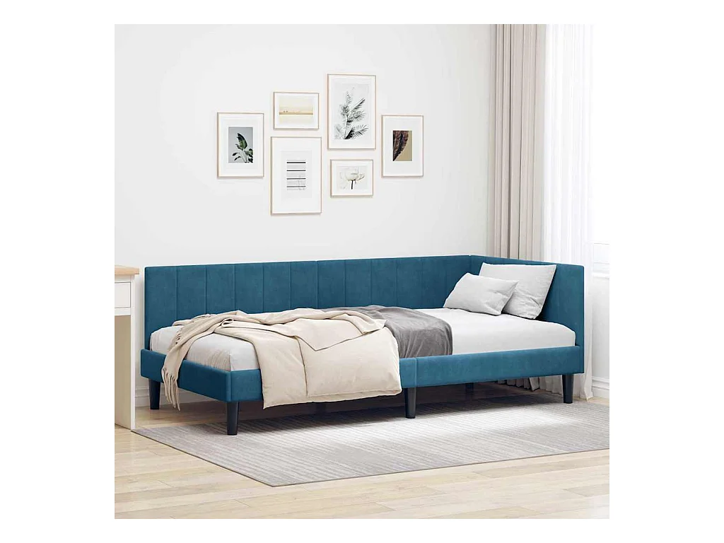 Hoekbedframe met hoofdbord Blauw 100 x 200 cm Fluweel
