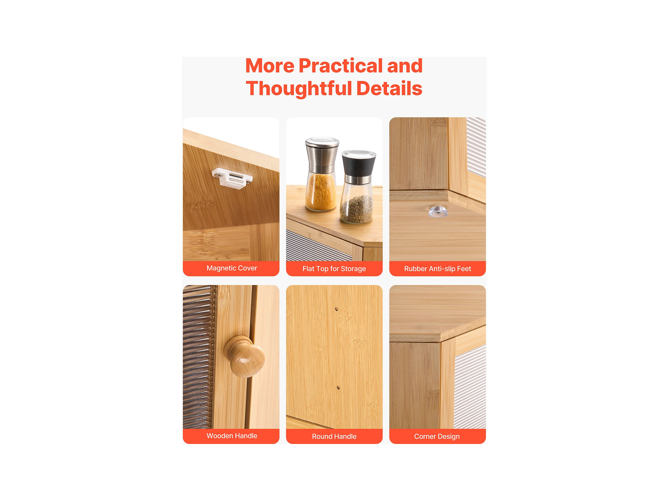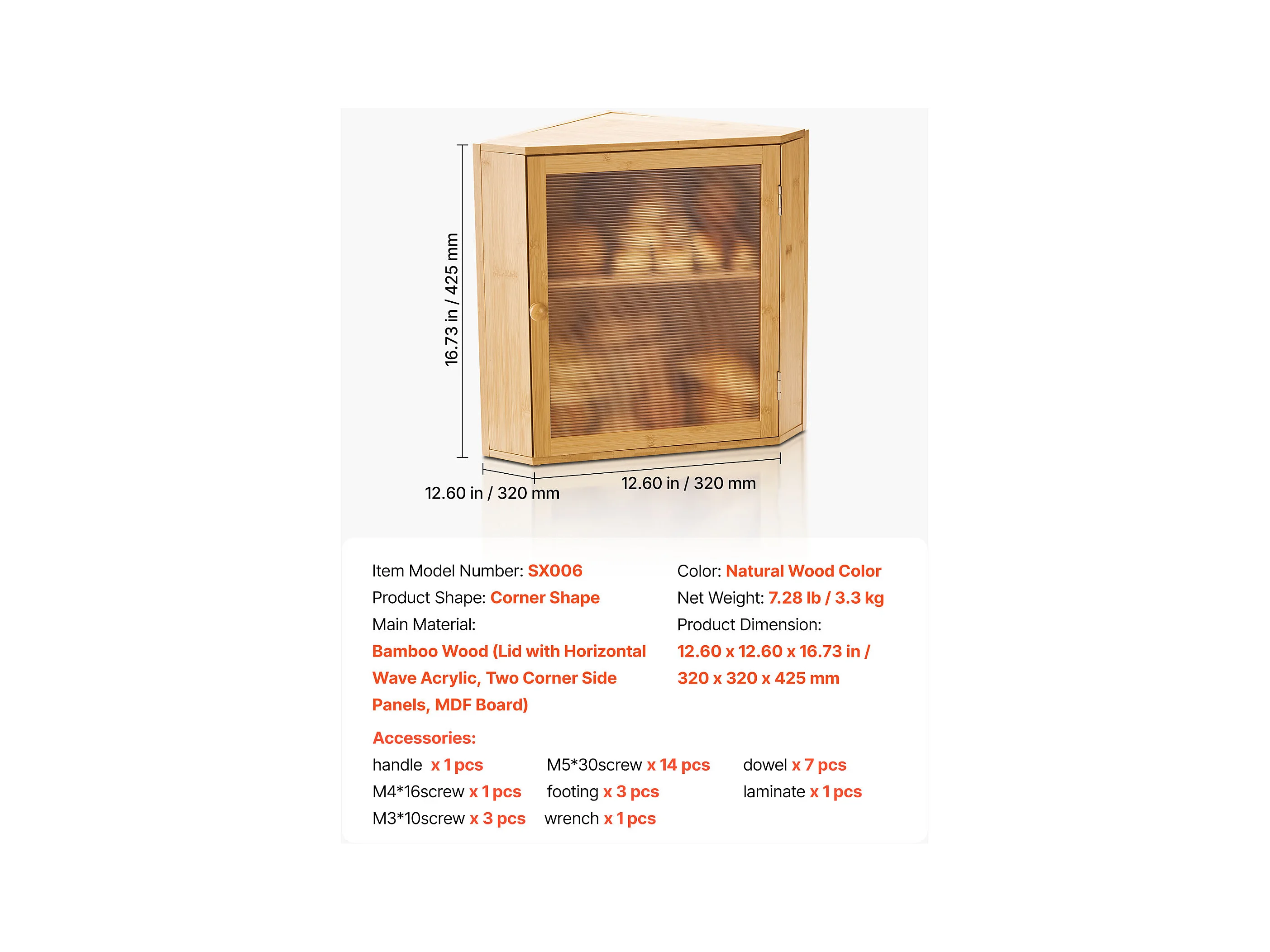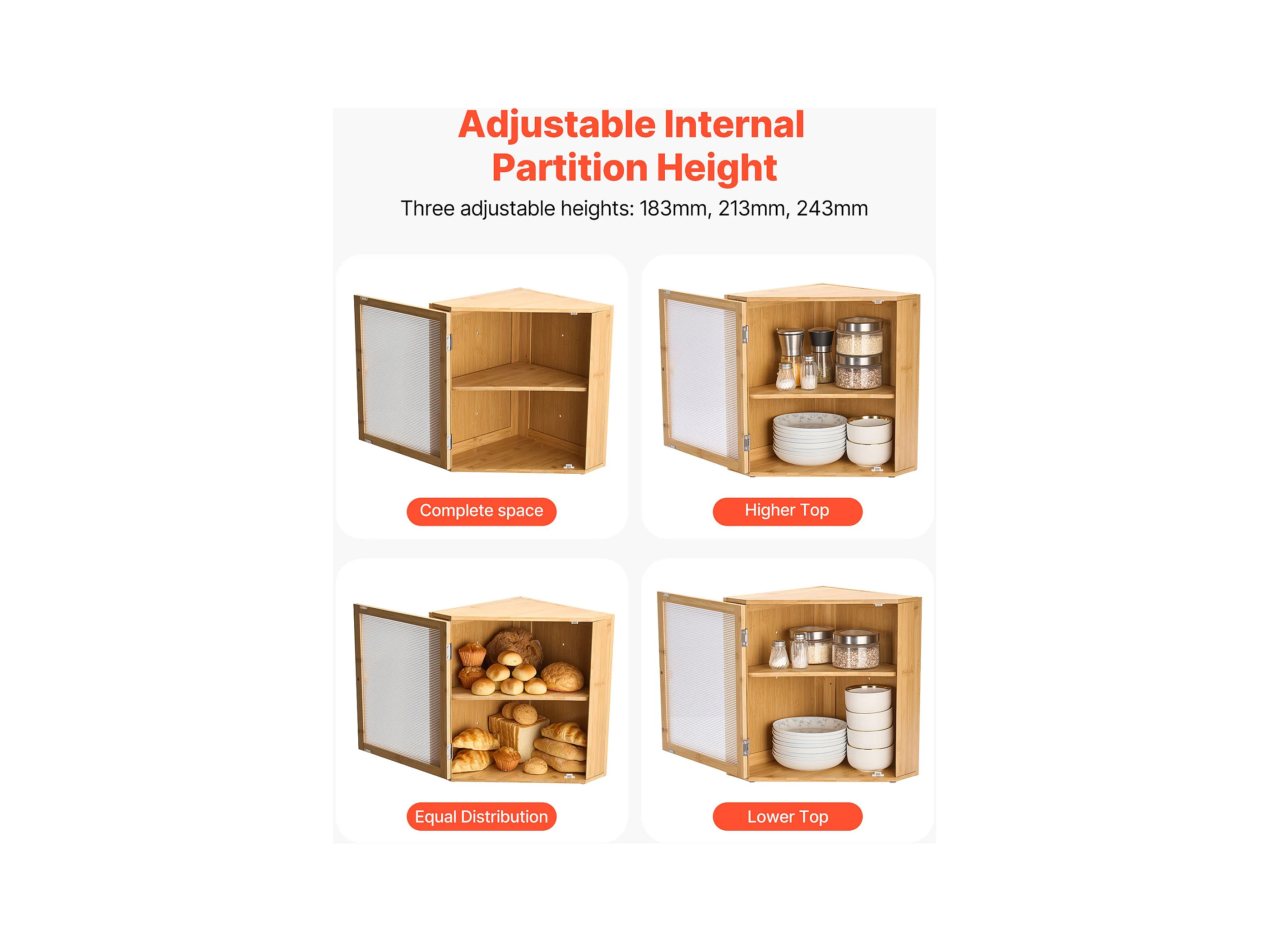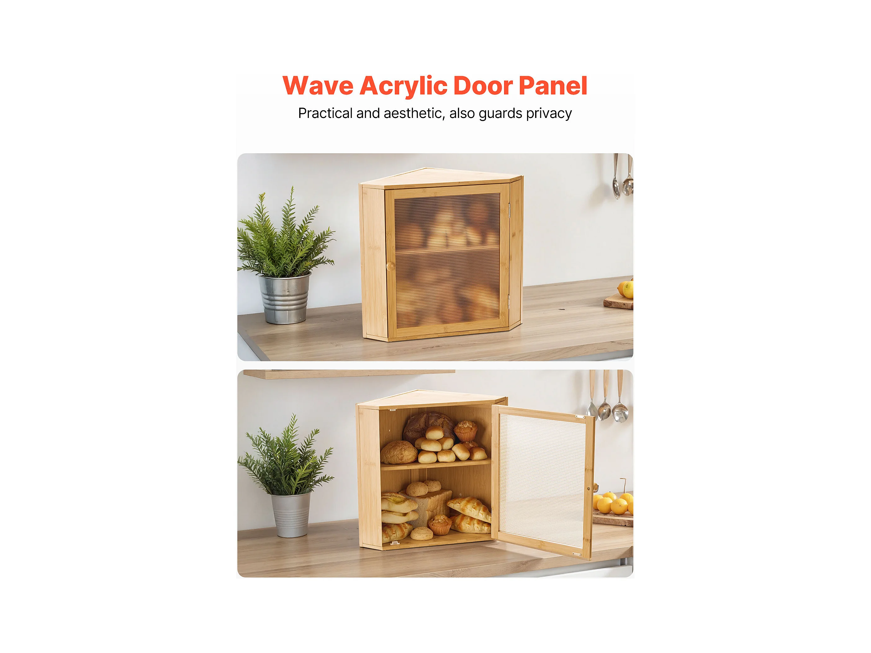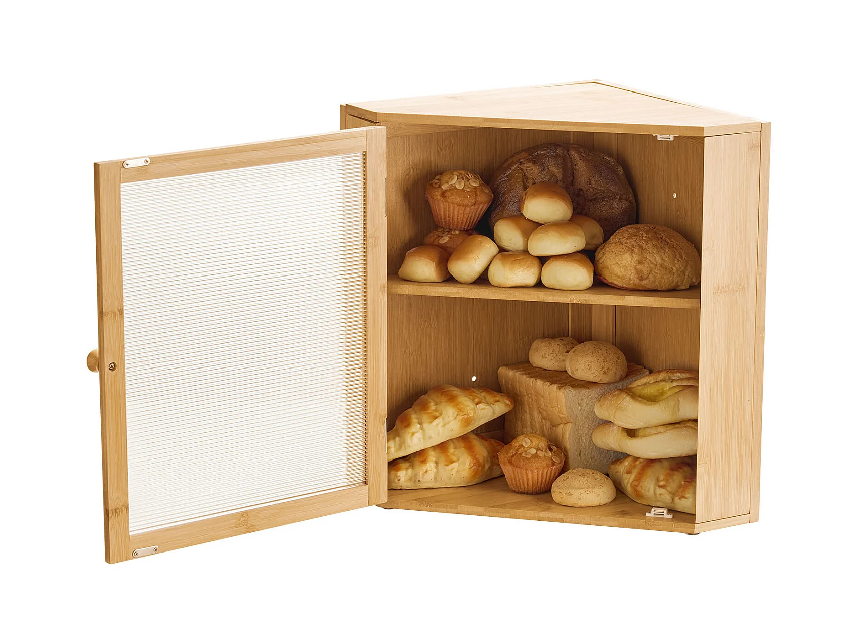 Hoekbroodbak SucceBuy Keukenblad 2 Laags, Opslagcontainer voor Brood in Rustieke Stijl, Grote Capaciteit, Voedselopslag