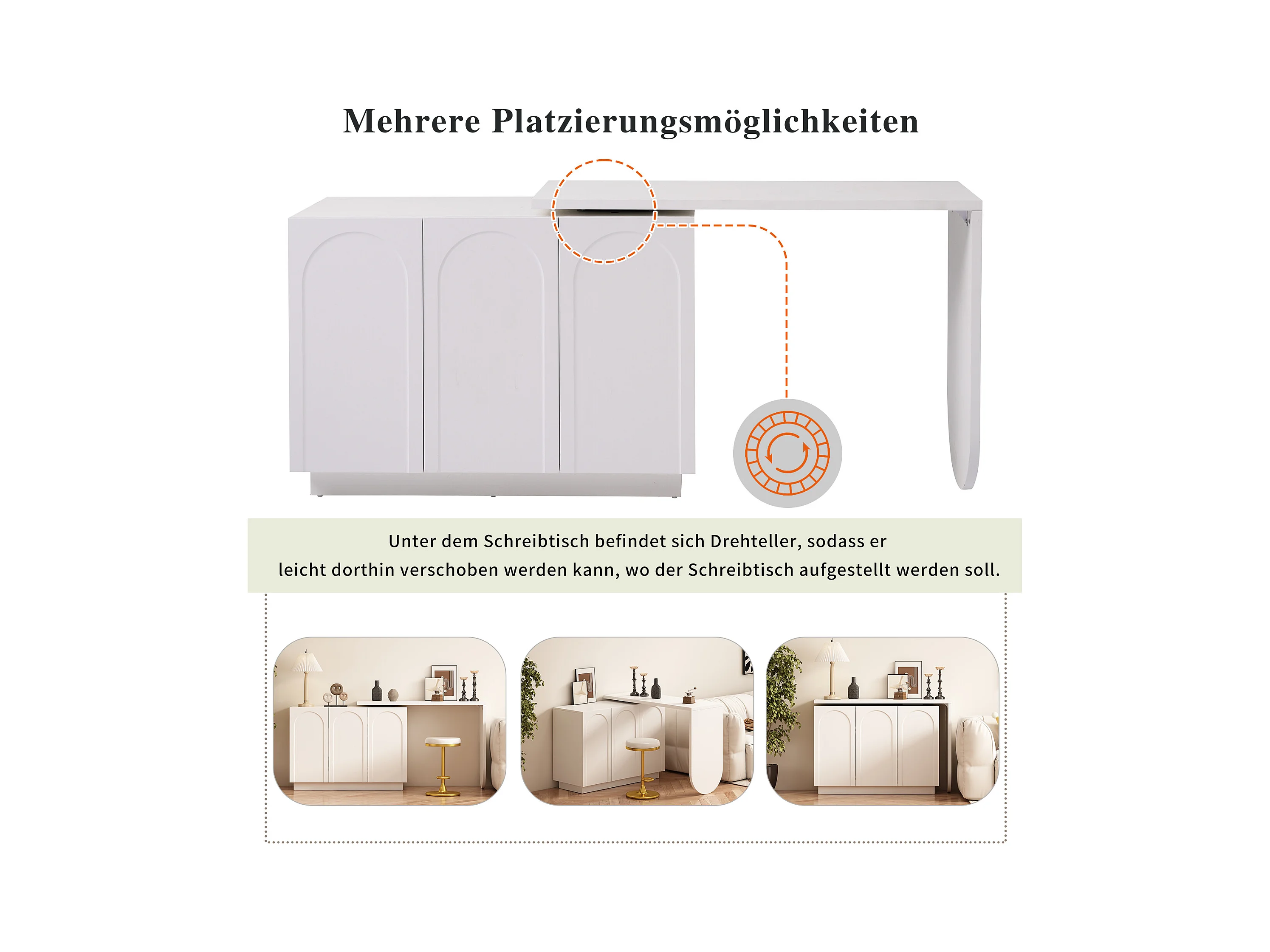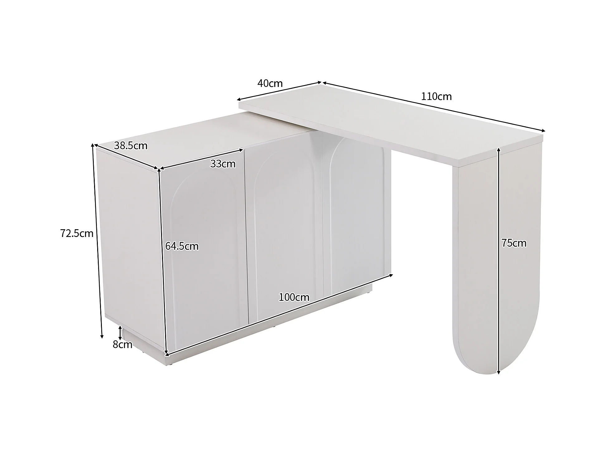 Hoekbureau met 3 lades en 2 rotan deuren - 126 x 40 x 75 cm - MDF - Wit