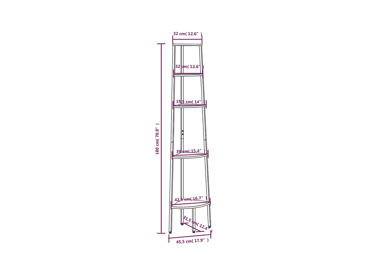 Hoekkastje met 5 schappen 45,5x31,5x180 cm zwart