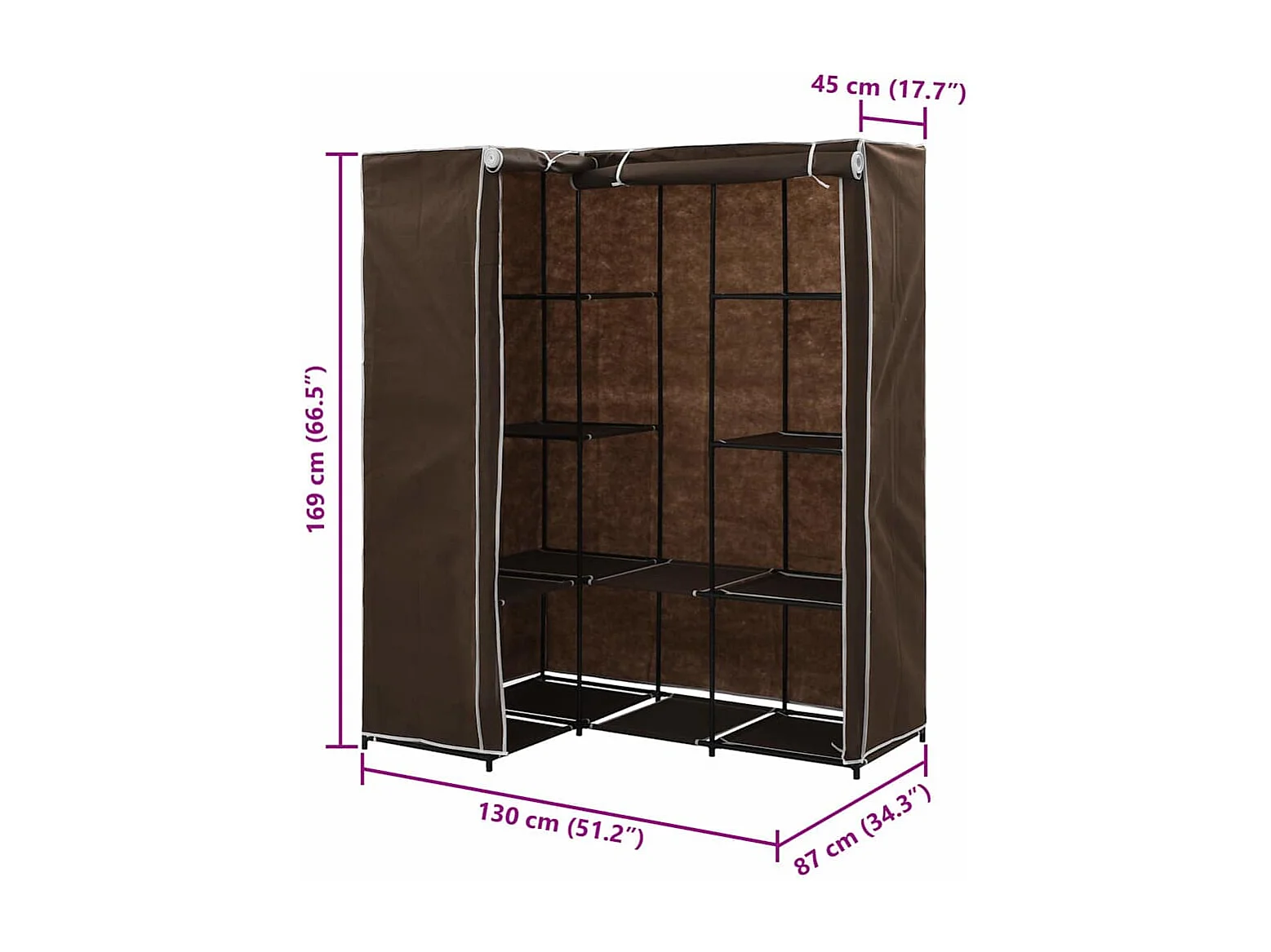 Hoekkledingkast 130x87x169 cm bruin