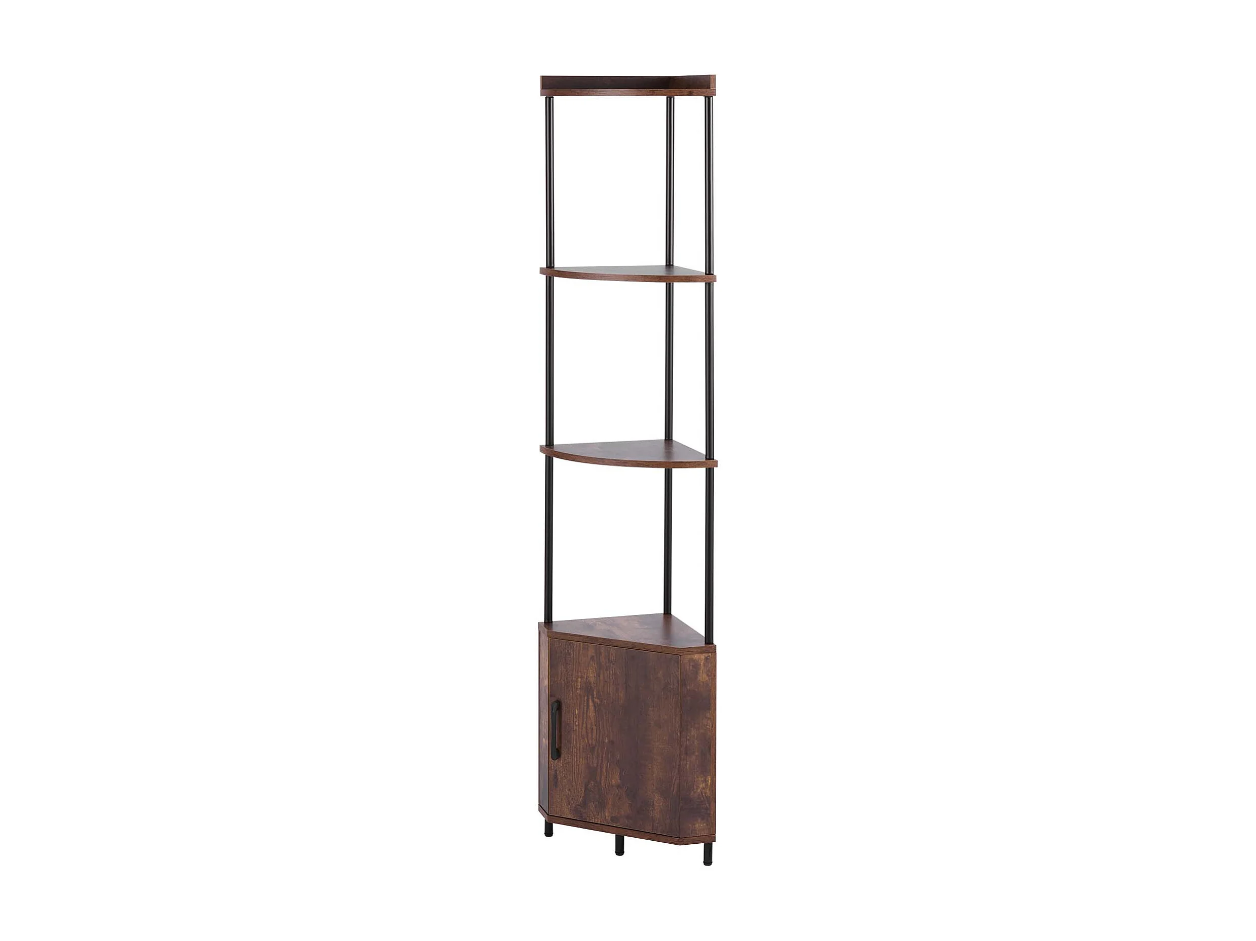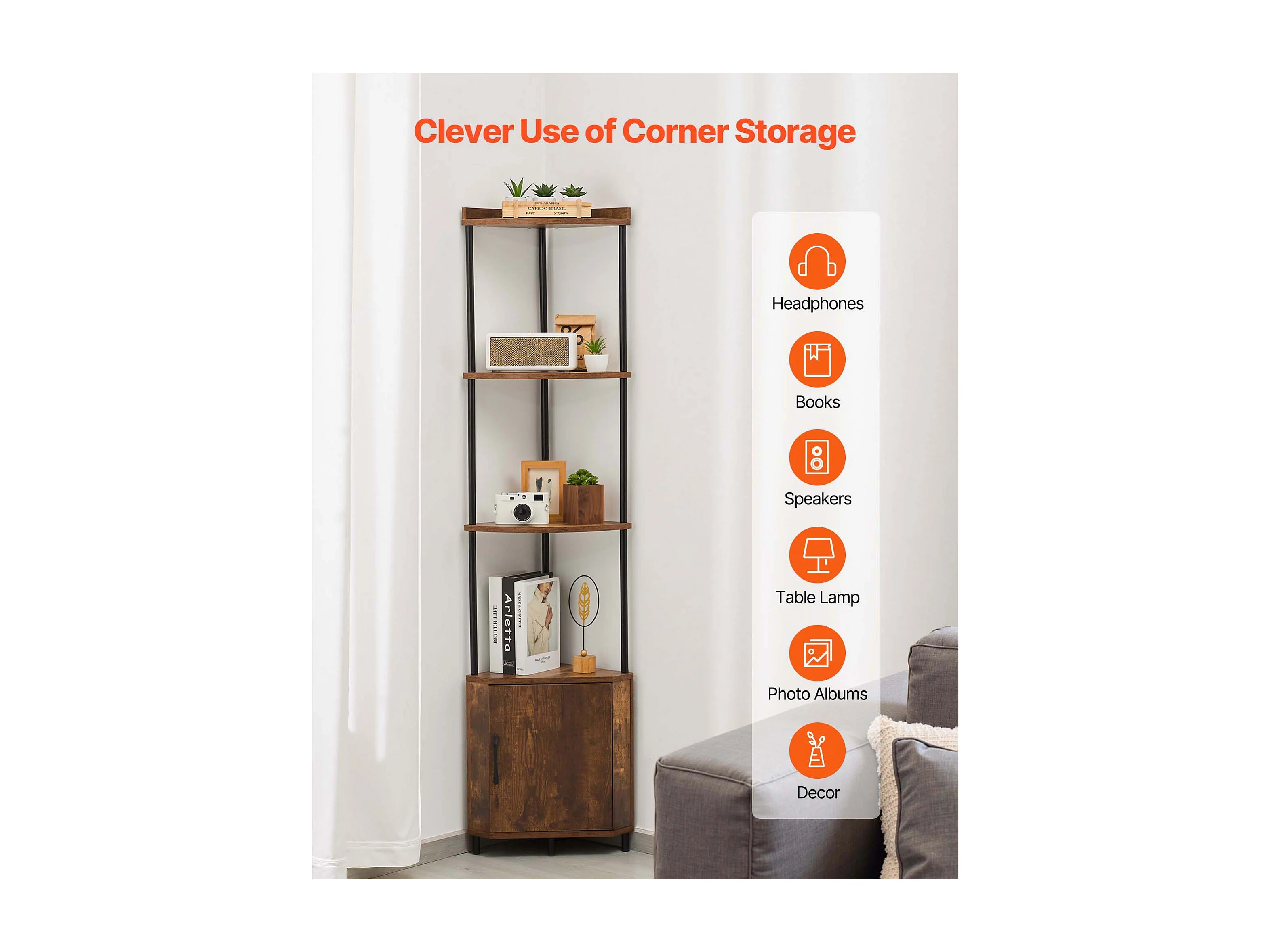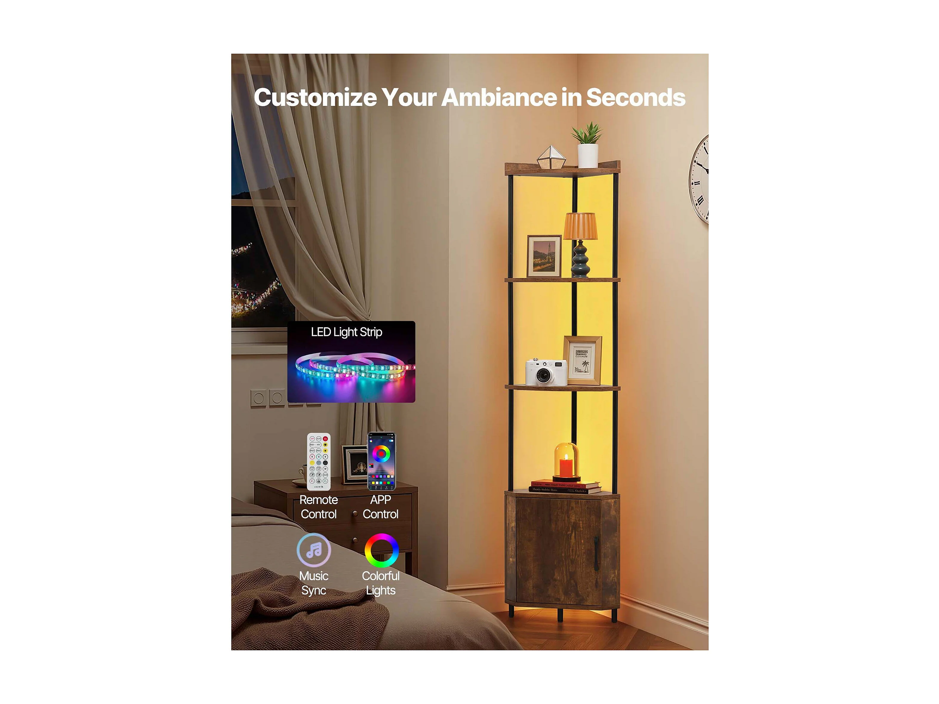 Hoekplank SucceBuy 5-Laags Hoekboekenkast met LEDverlichting en Deuren, Compacte Boekenkast met Metalen Frame en Houten Planken, Ideaal voor Thuis of op Kantoor