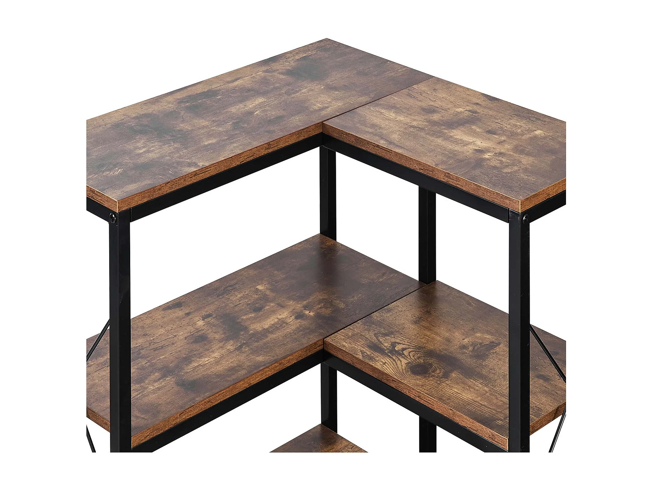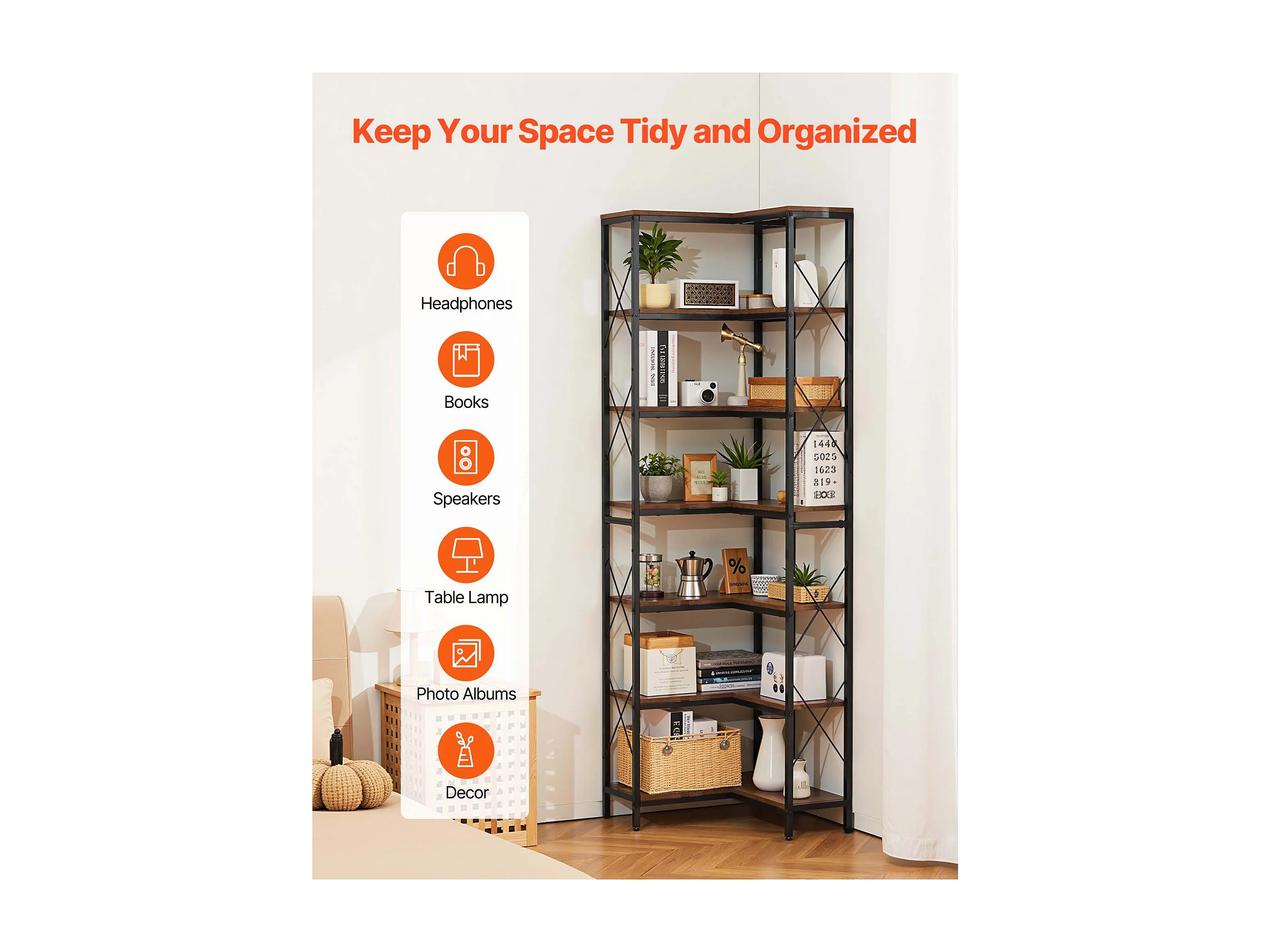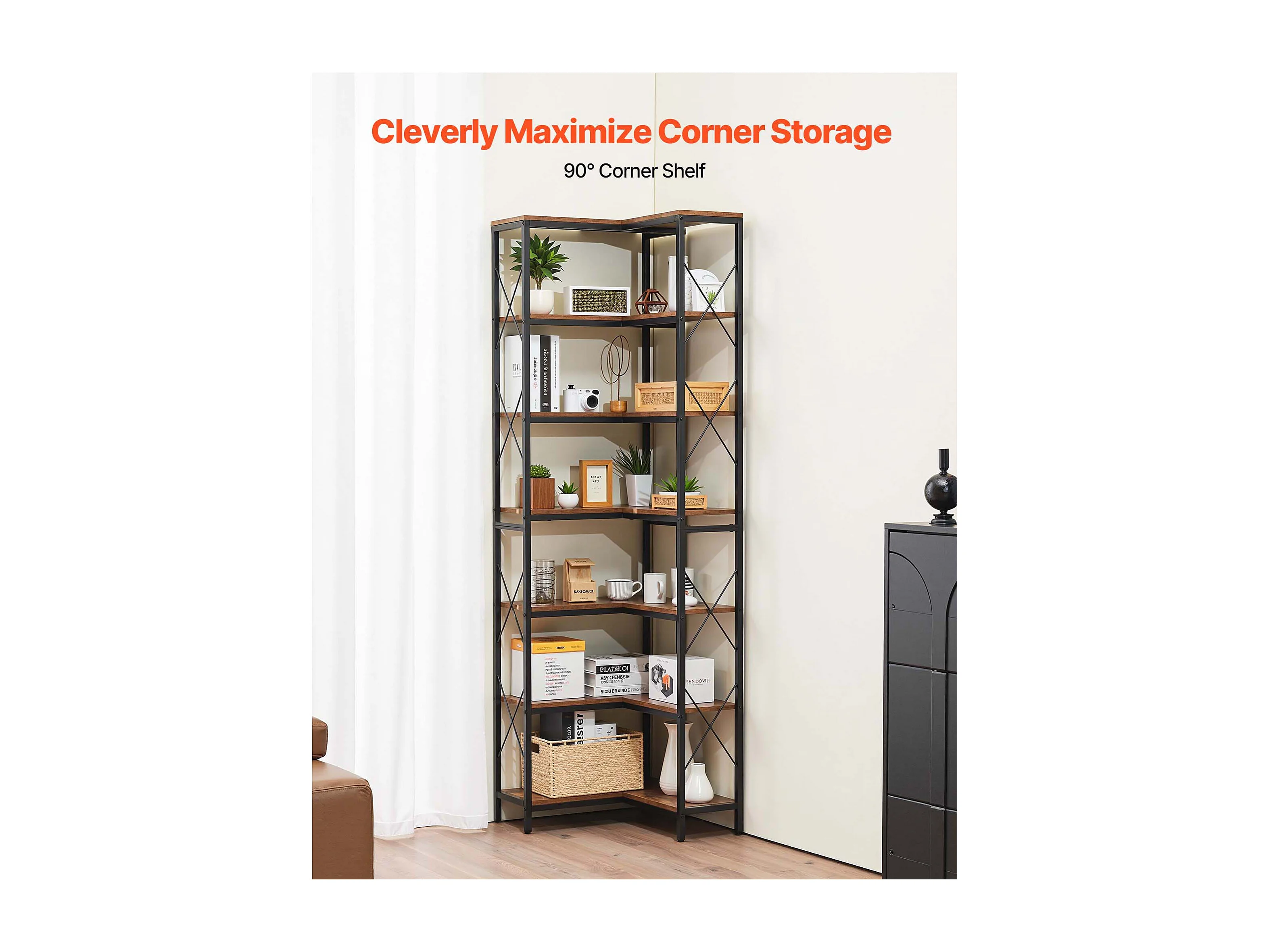 Hoekschap SucceBuy met 7 Niveaus, Hoogte 200 cm, Grote L-vormige Hoekboekenkast met Metalen Frame en Schappen, Omkeerbare Opbergmeubel