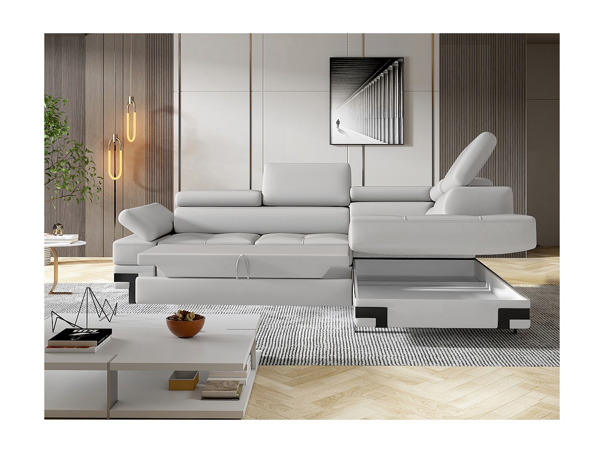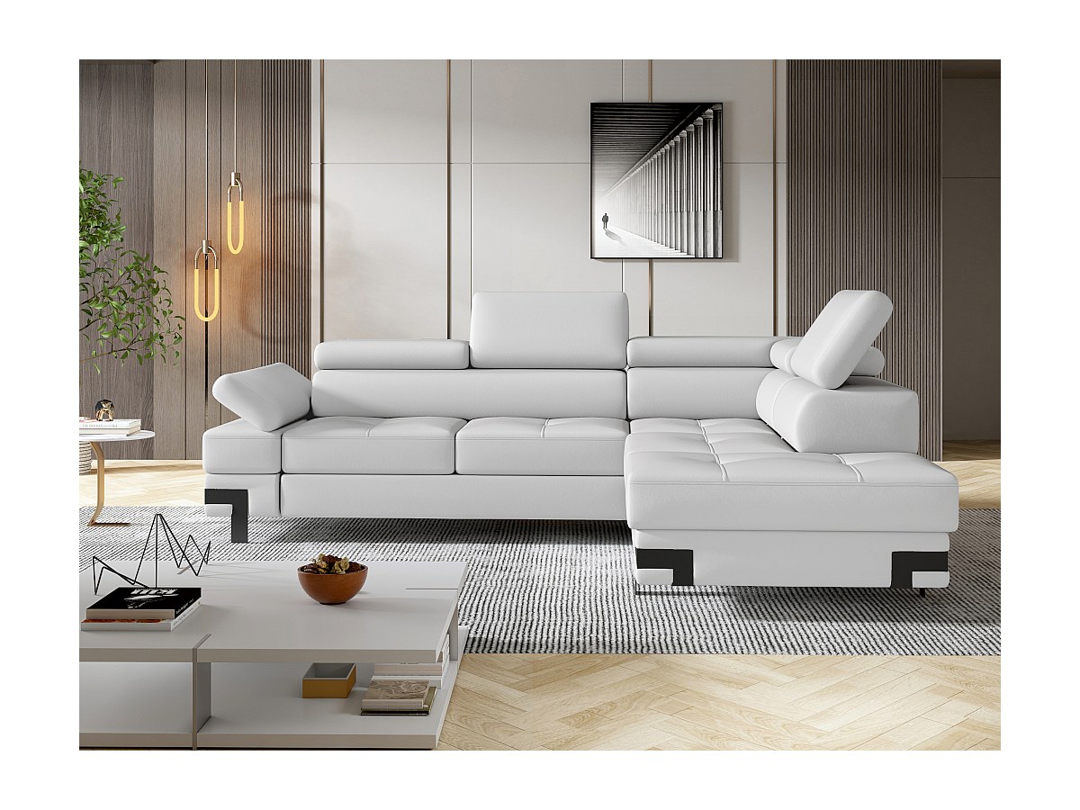 Hoekslaapbank in kunstleer DAMIEN II - Wit - Hoek rechts
