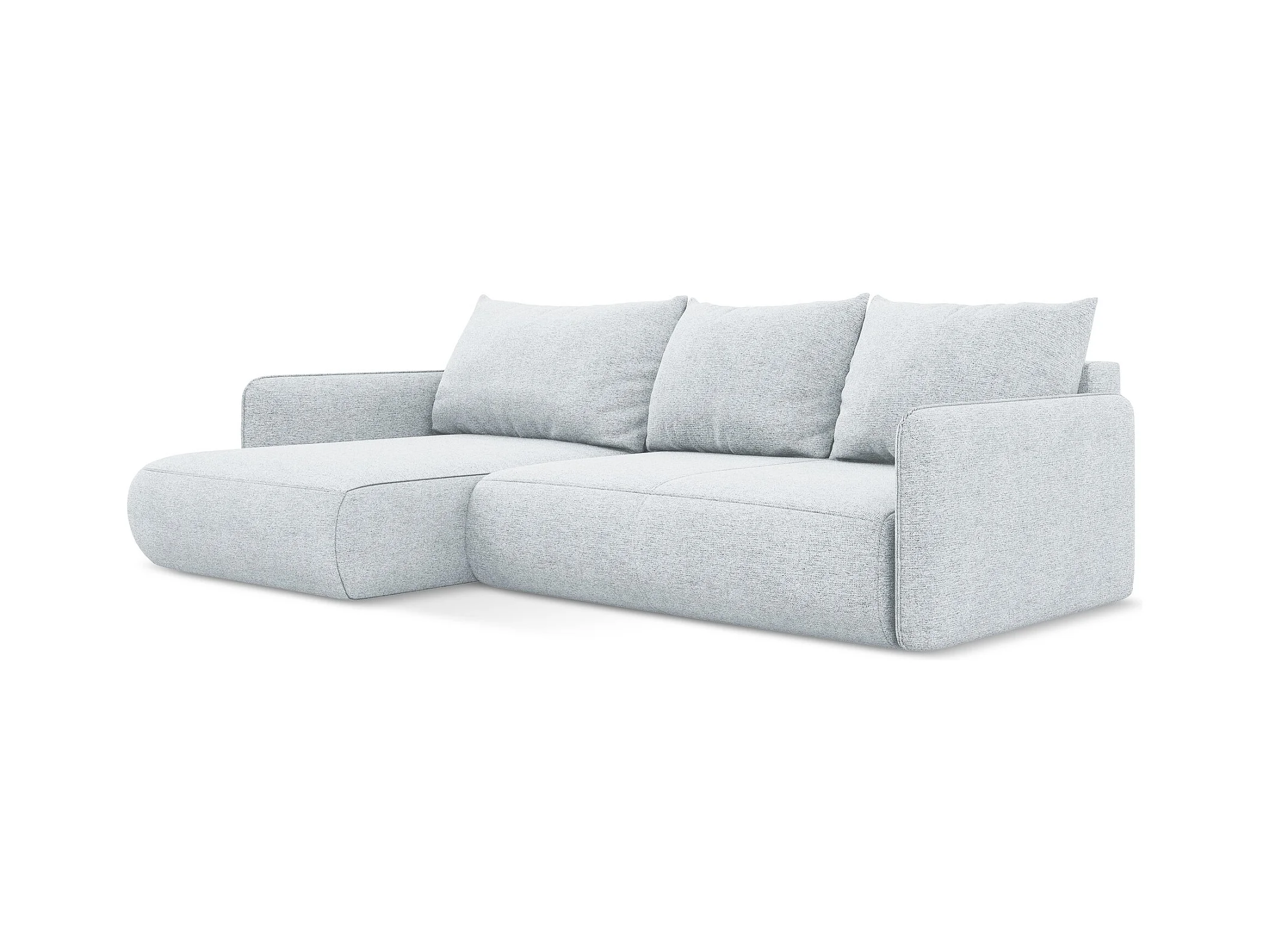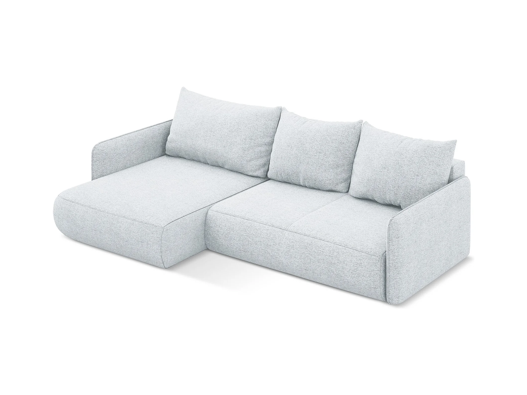 Hoekslaapbank links van lichtblauw chenille stof - NANEA