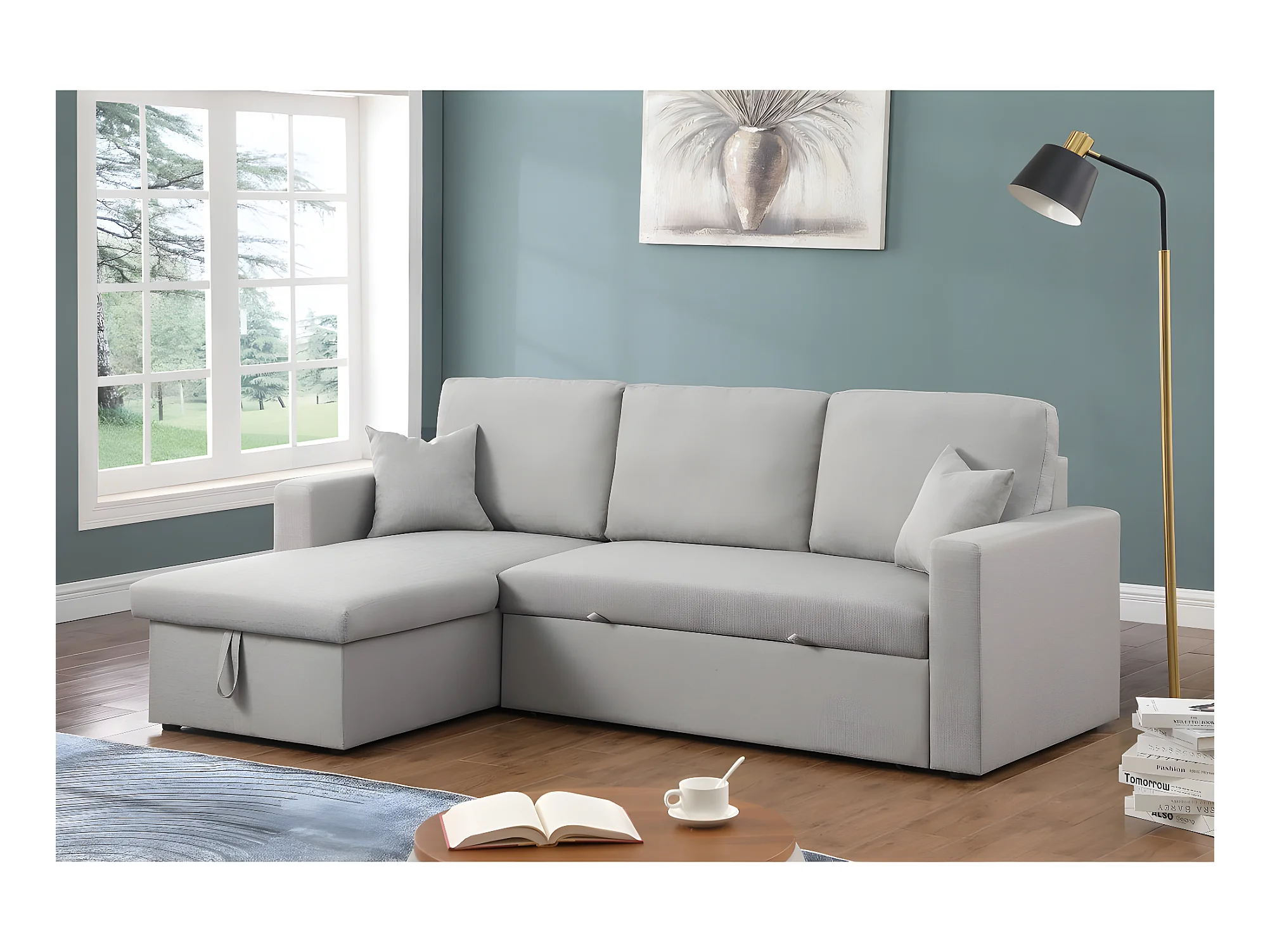 Hoekslaapbank met opbergruimte "Alain" - 3 plaatsen - Lichtgrijs