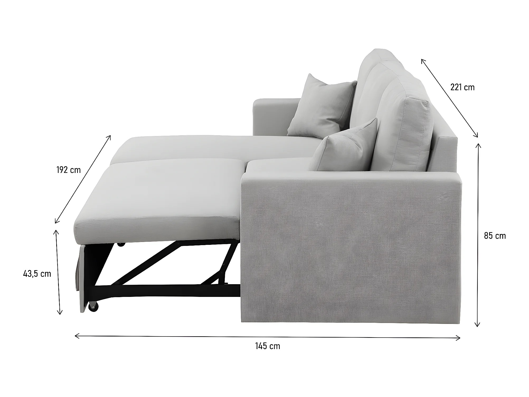 Carlos L-vormige slaapbank, hoekbank met bedstee en slaapfunctie, stof Salvador Left Grey
